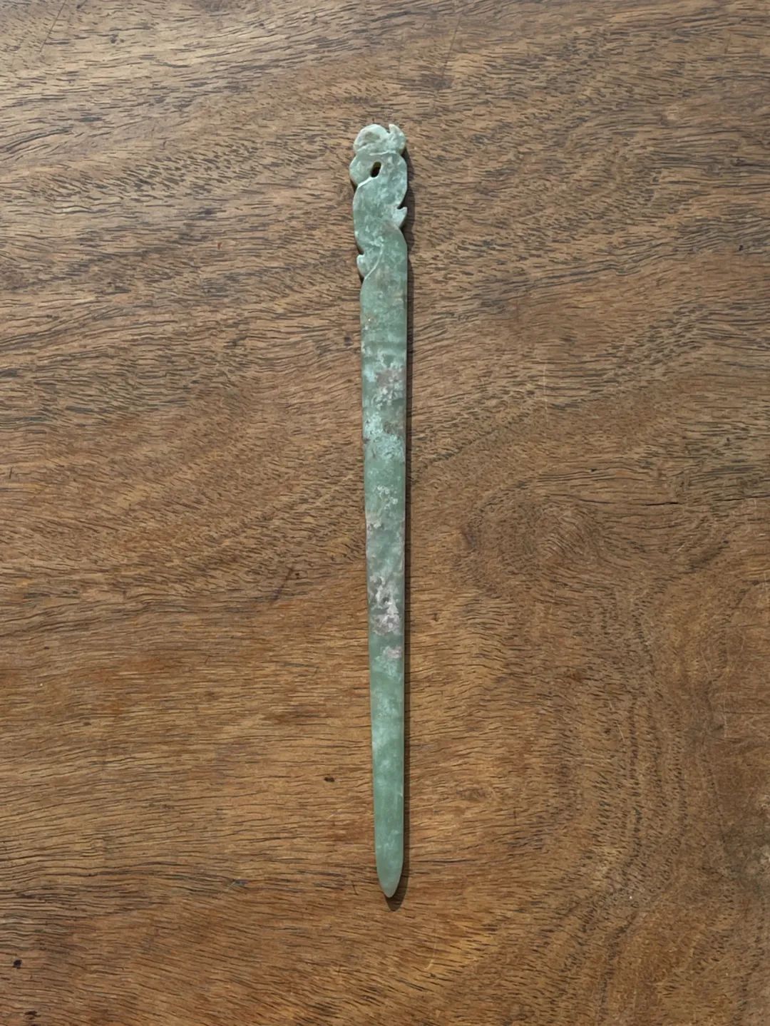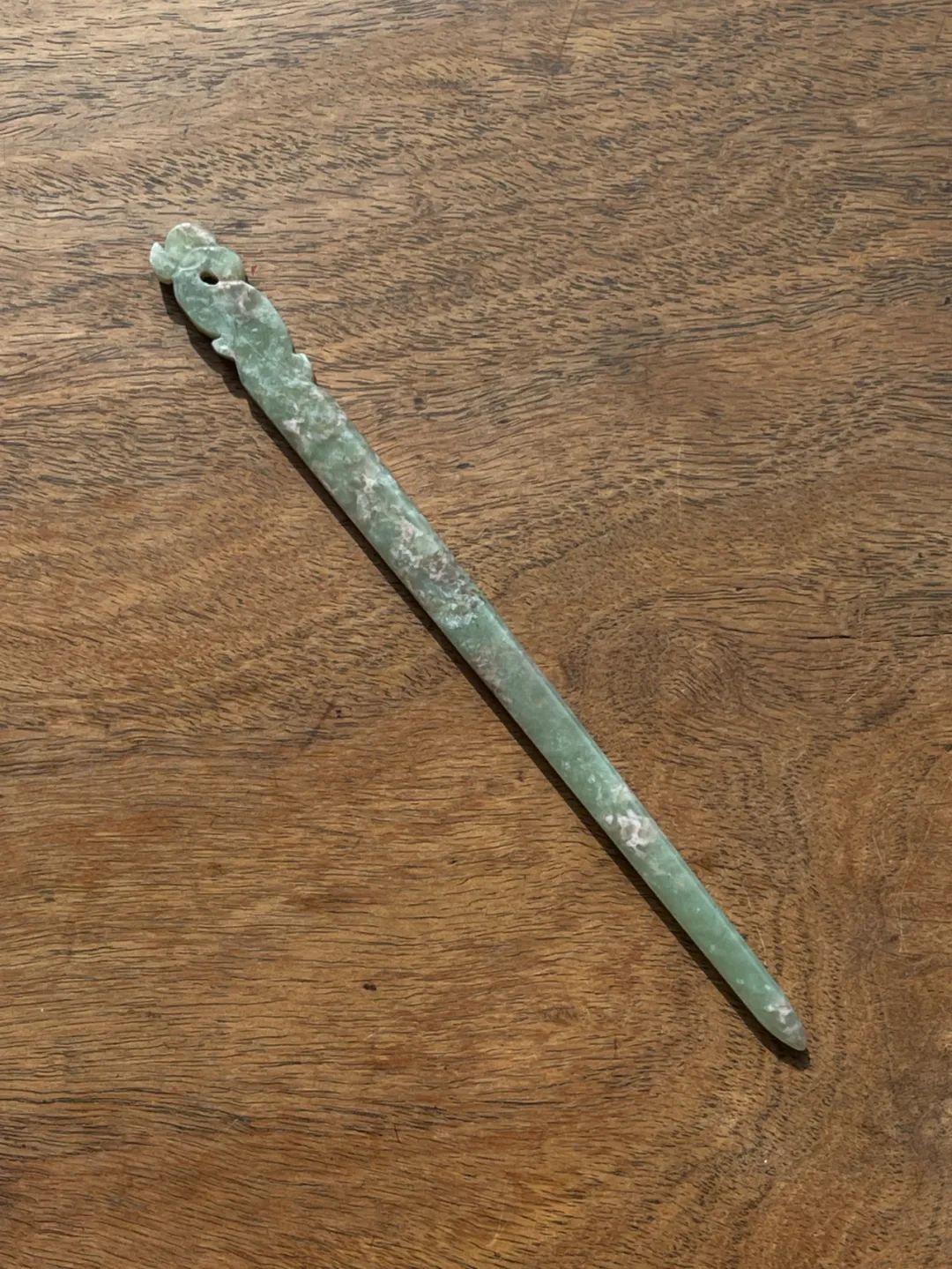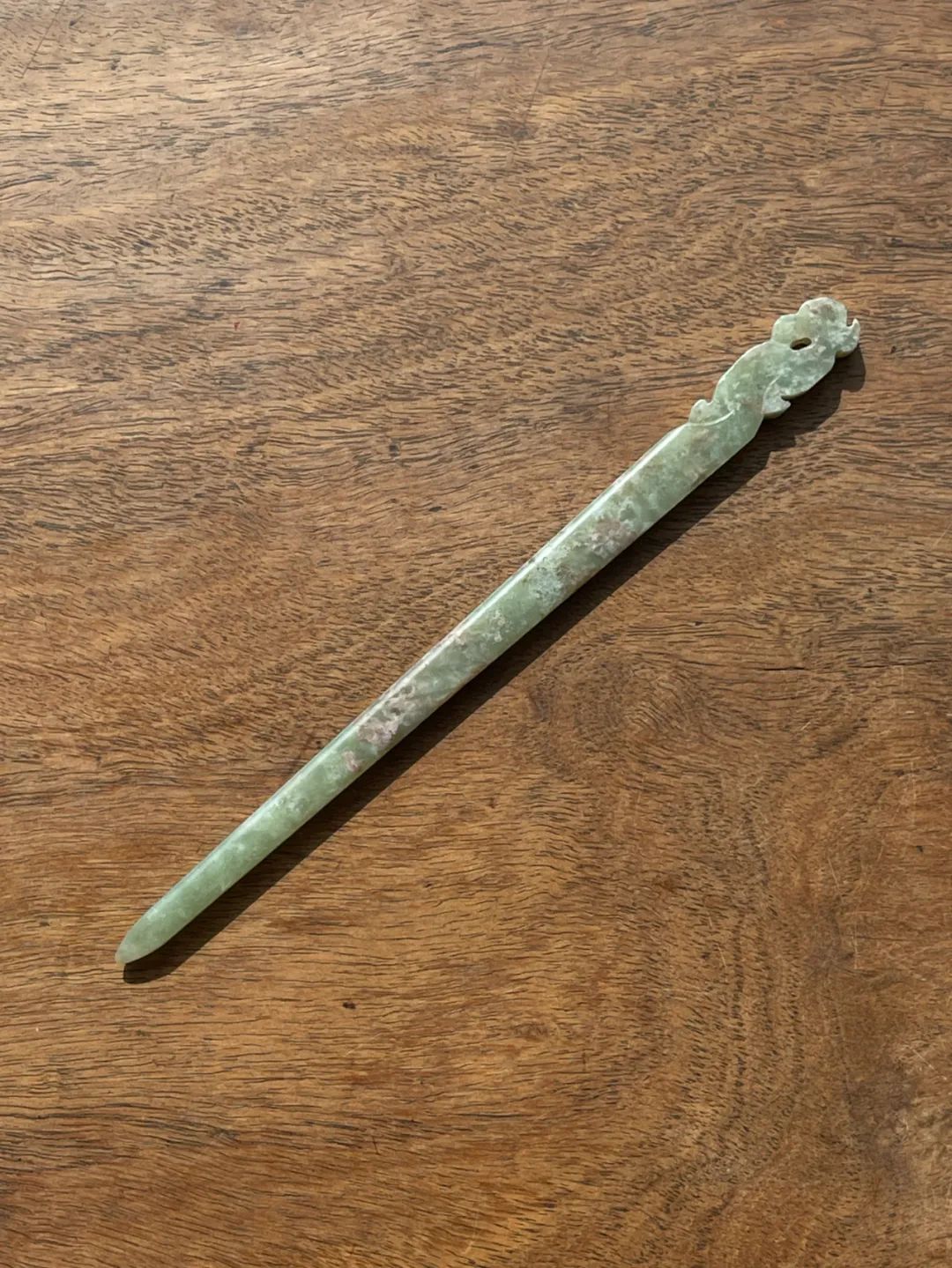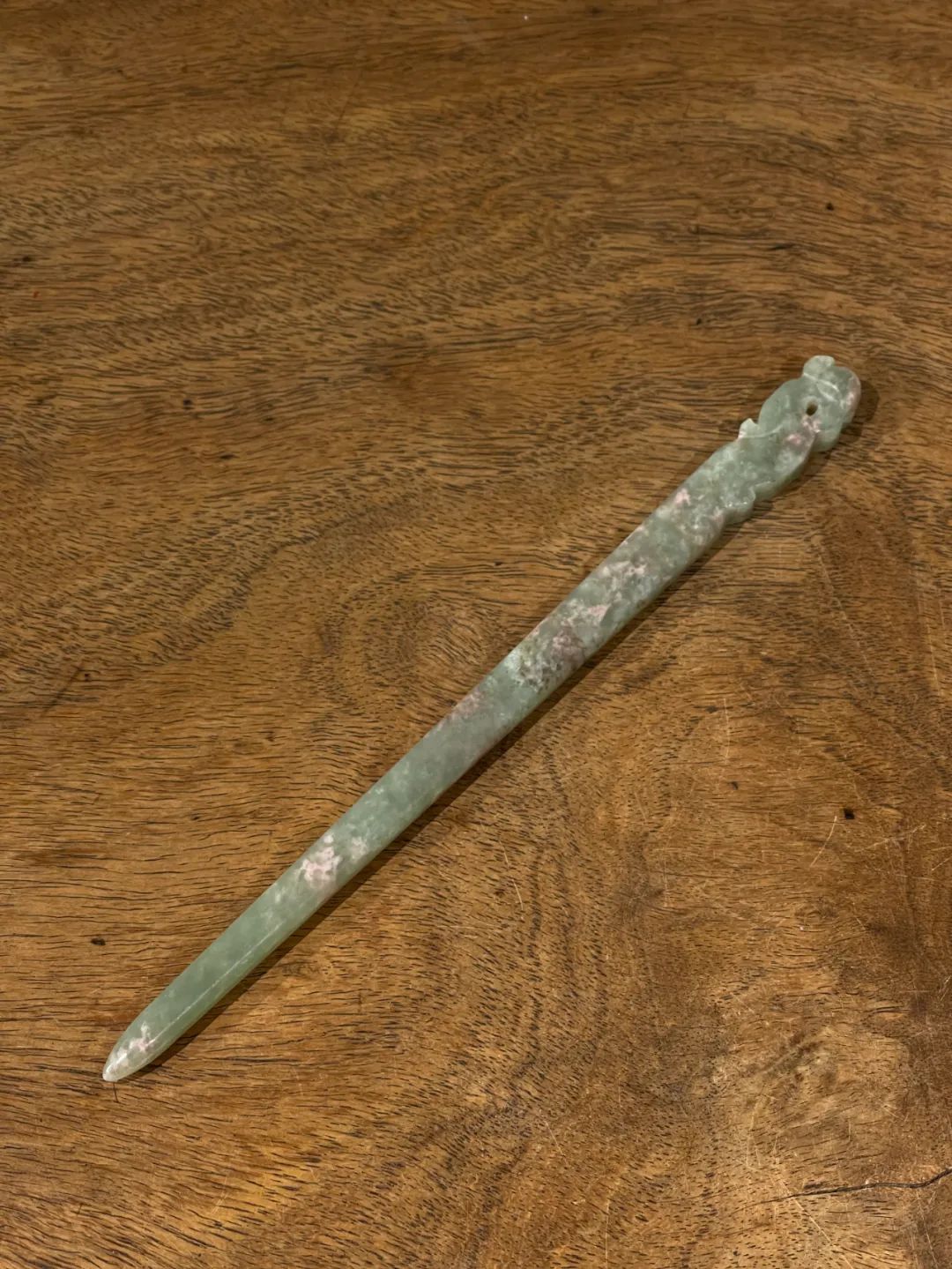 此件选材上乘、造型貴气典雅且工艺精湛的和田碧玉花卉钮发簪,入手即可当发簪,风格极简贵气,绝对不落俗套,可突显当代女性之高尚品味。 此和田青白玉凤鸟钮发簪,保存完好无损。