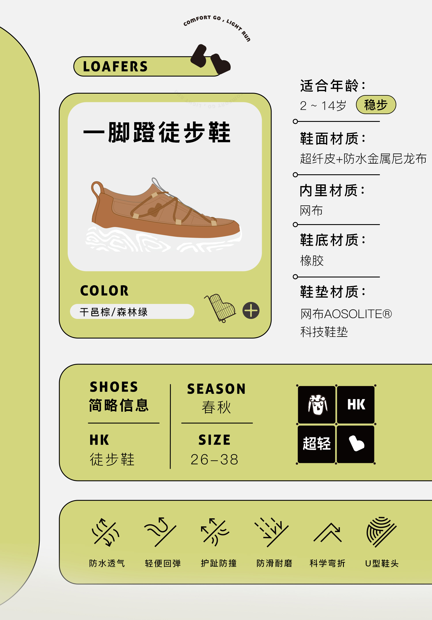 小蓝羊 【户外徒步鞋】亲子26-38码男女童防滑防溅水户外鞋-一脚蹬徒步鞋