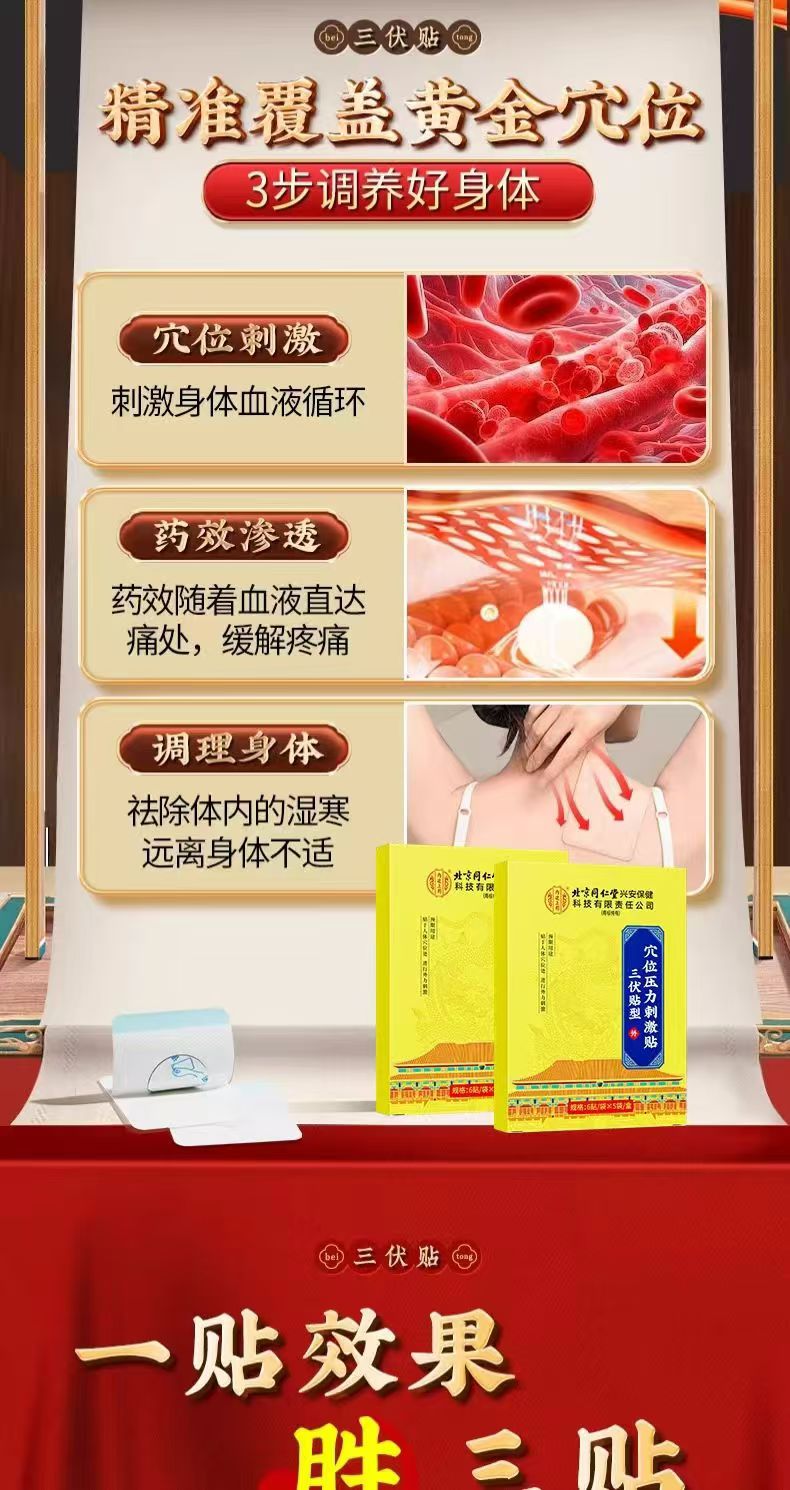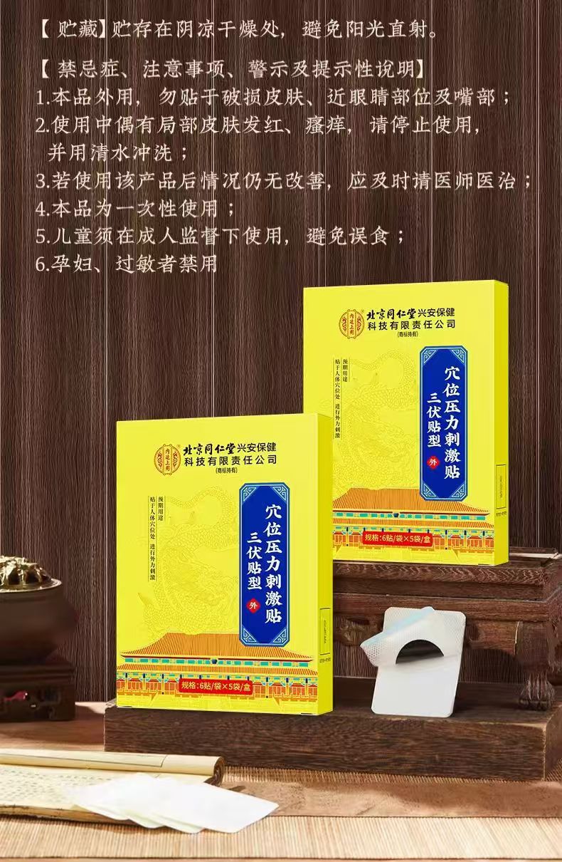 【北京同仁堂 冬病夏灸】内廷上用三伏贴 入伏必贴 特选医用磁珠定穴 夏养三伏穴位压力刺激贴 成人儿童 自用送礼皆宜 30贴/盒