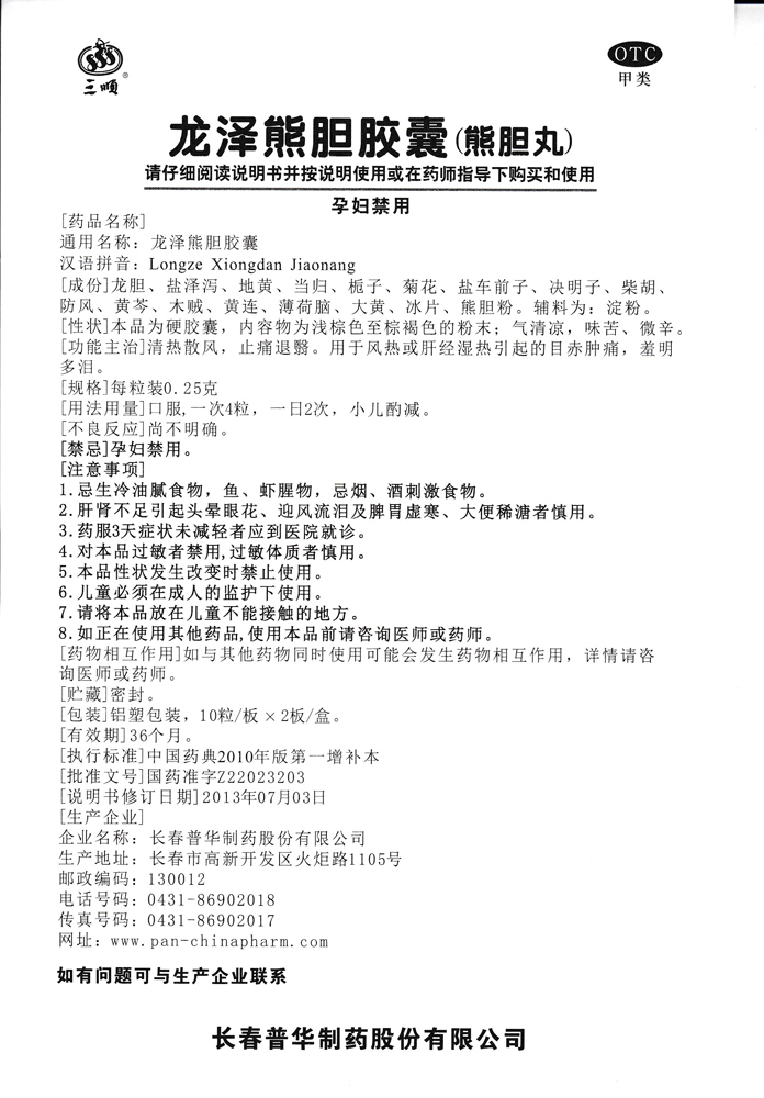 三顺龙泽熊胆胶囊0.25g*20粒/盒目赤肿痛 羞明多泪 清热散风