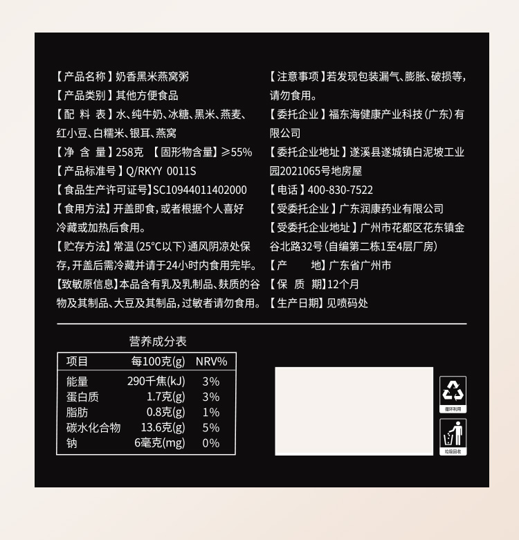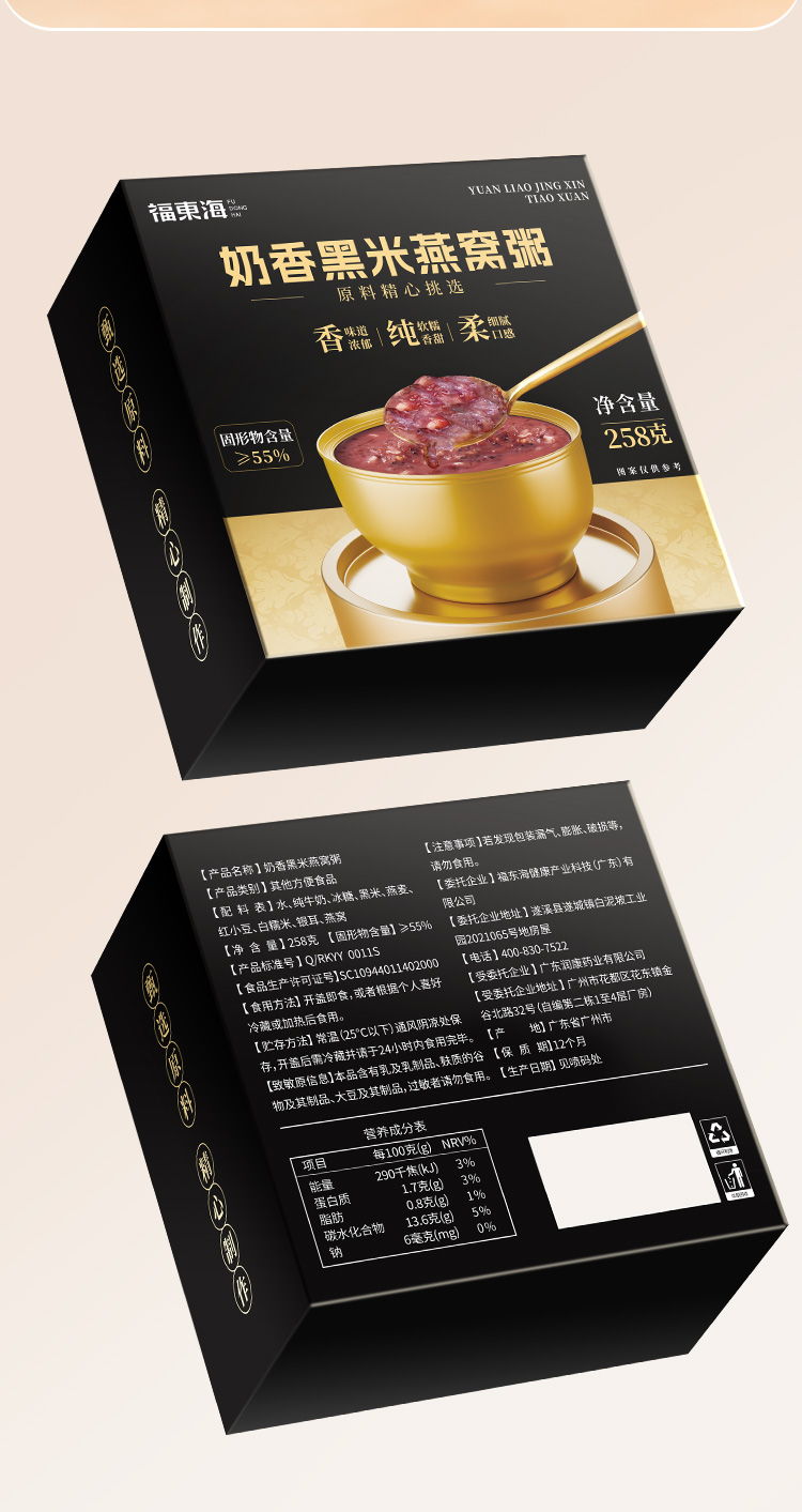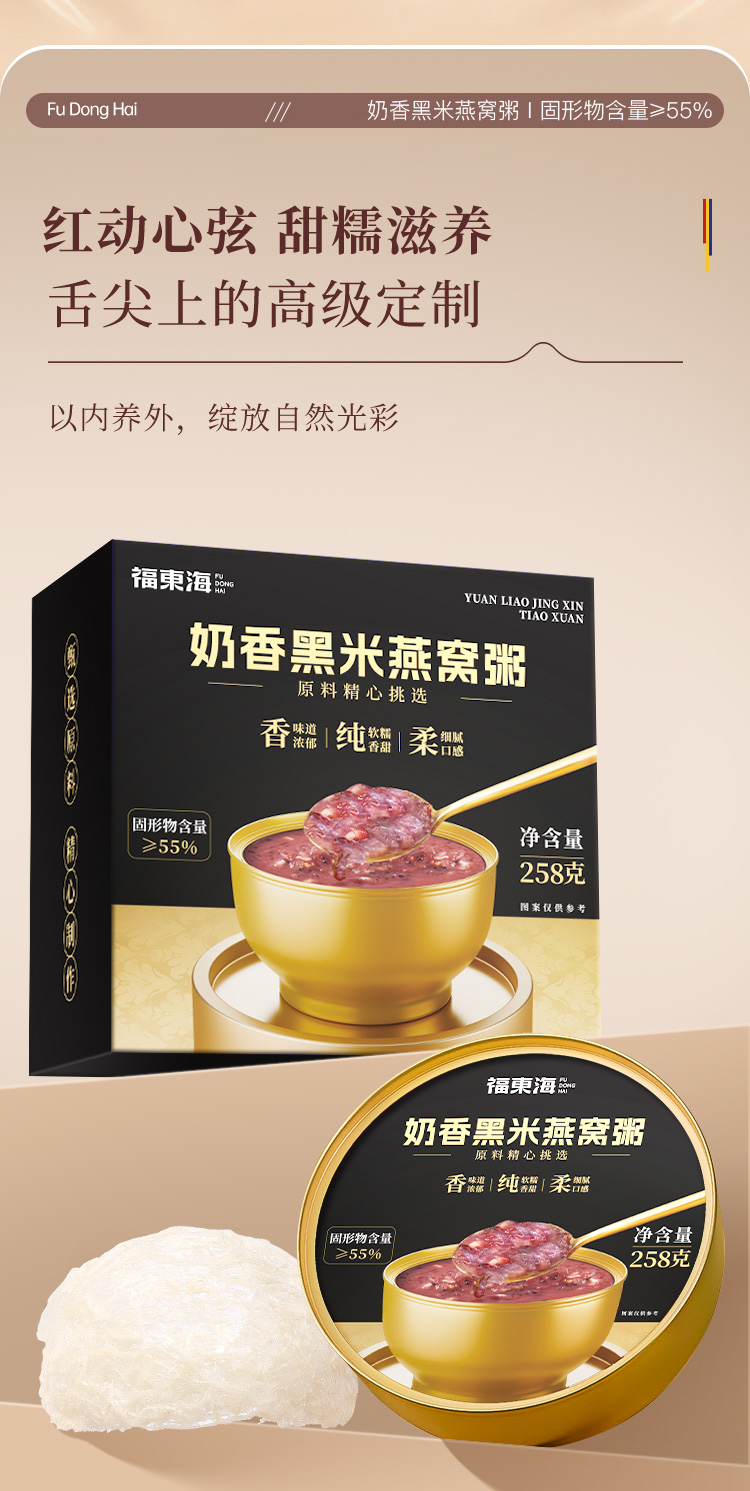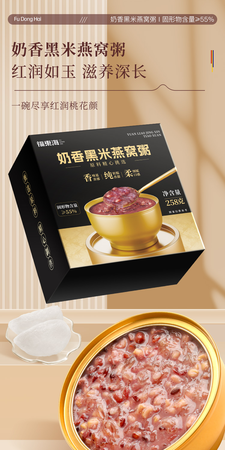 福东海 奶香黑米燕窝粥258克 女人滋补代餐早餐速食粥 【节日礼物】即食燕窝礼盒佳品送礼