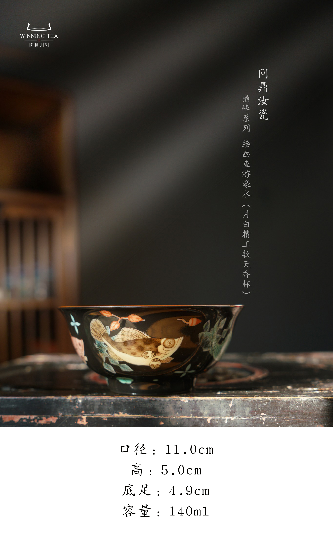 问鼎汝瓷鼎峰系列月白精工款天香杯(绘画鱼游濠水)