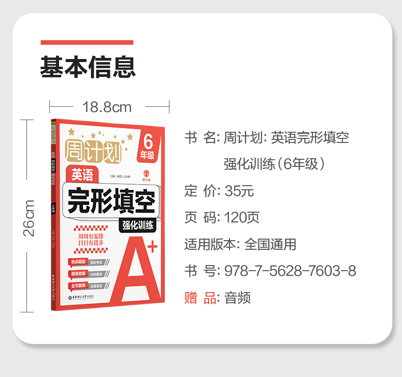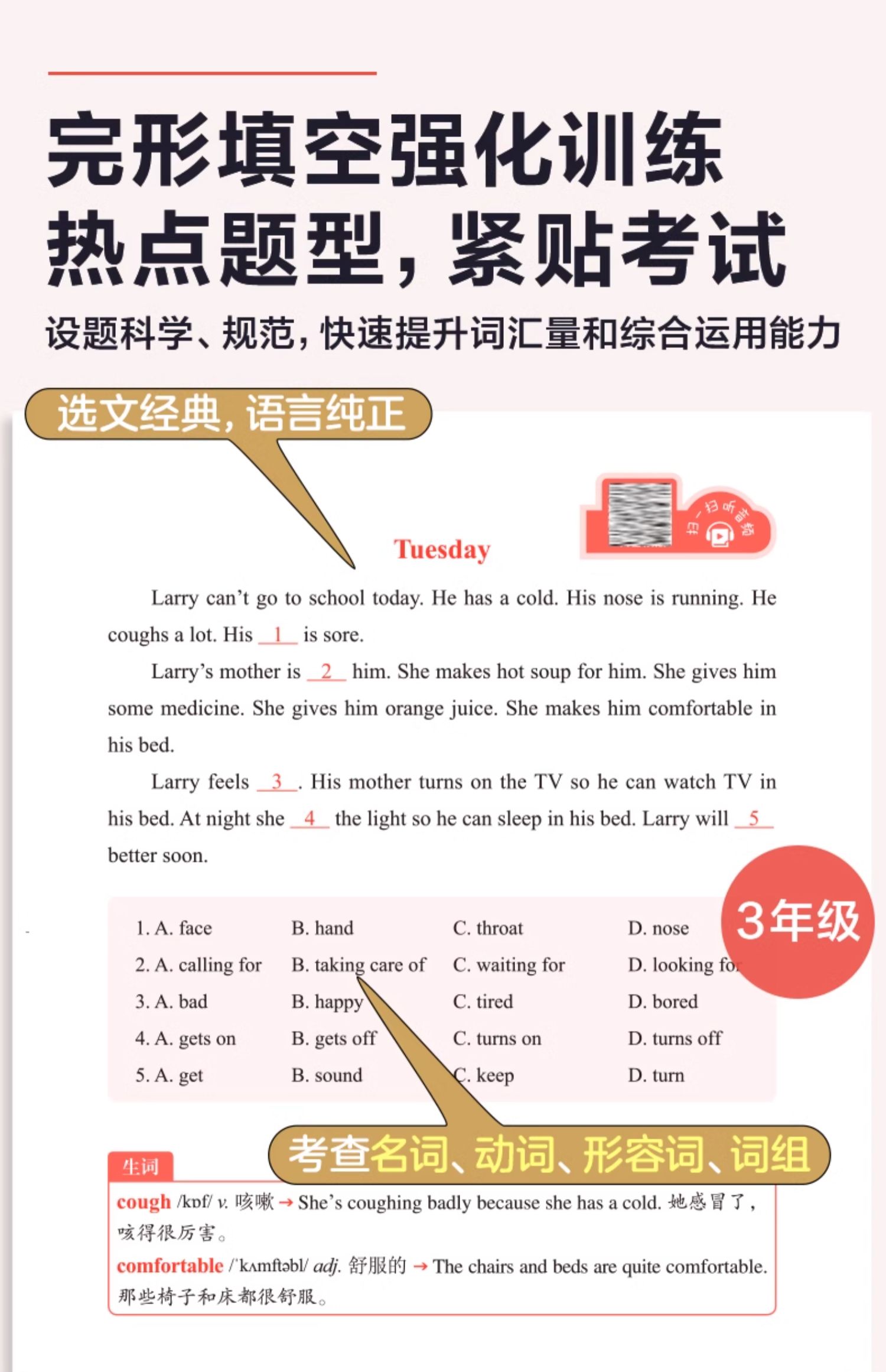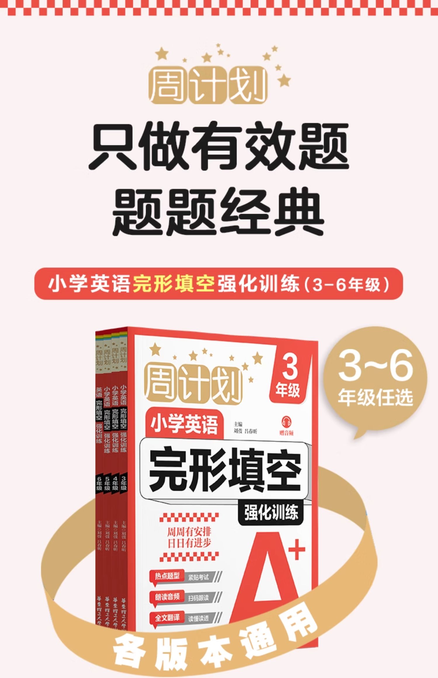 任选华理社周计划小学英语完形填空强化训练+语文古诗词诵背+语文基础知识强化训练+语文阅读+英语阅读123456年级小荷妈同款