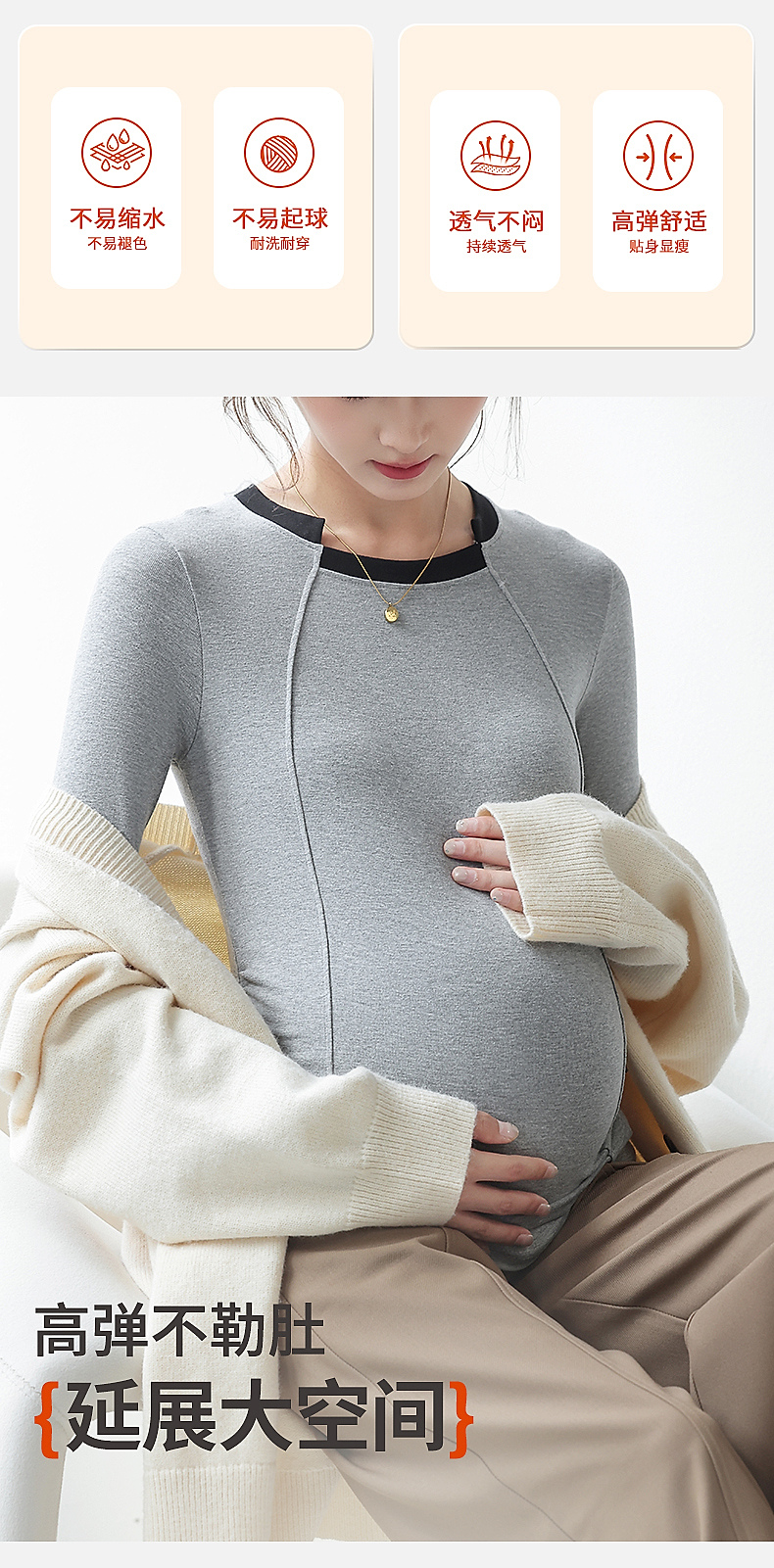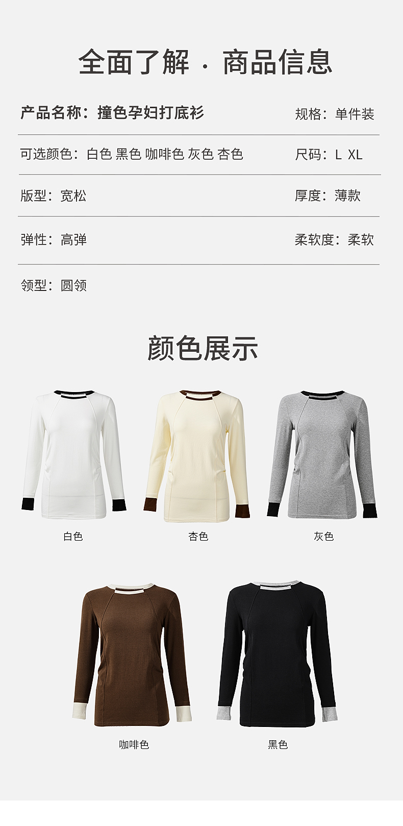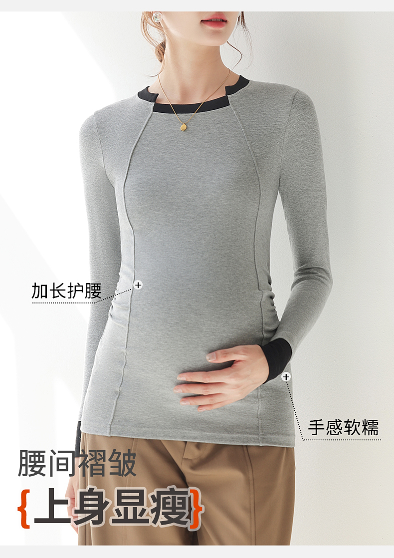 雅黛俪孕妇打底衫10A抗菌高弹舒适时尚撞色女士上衣内搭外穿