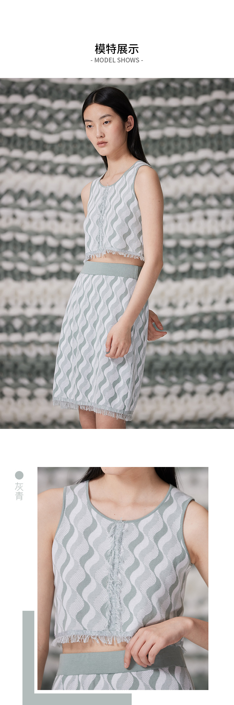 春夏 圆领波纹针织短款女背心 SJS93W053N
