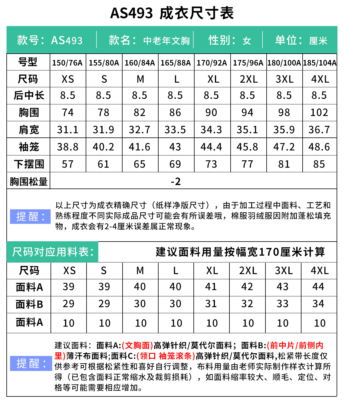 裁缝学苑AS493中老年妈妈文胸纸样防凸点内衣服装样板图纸
