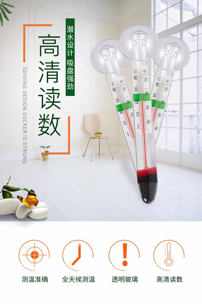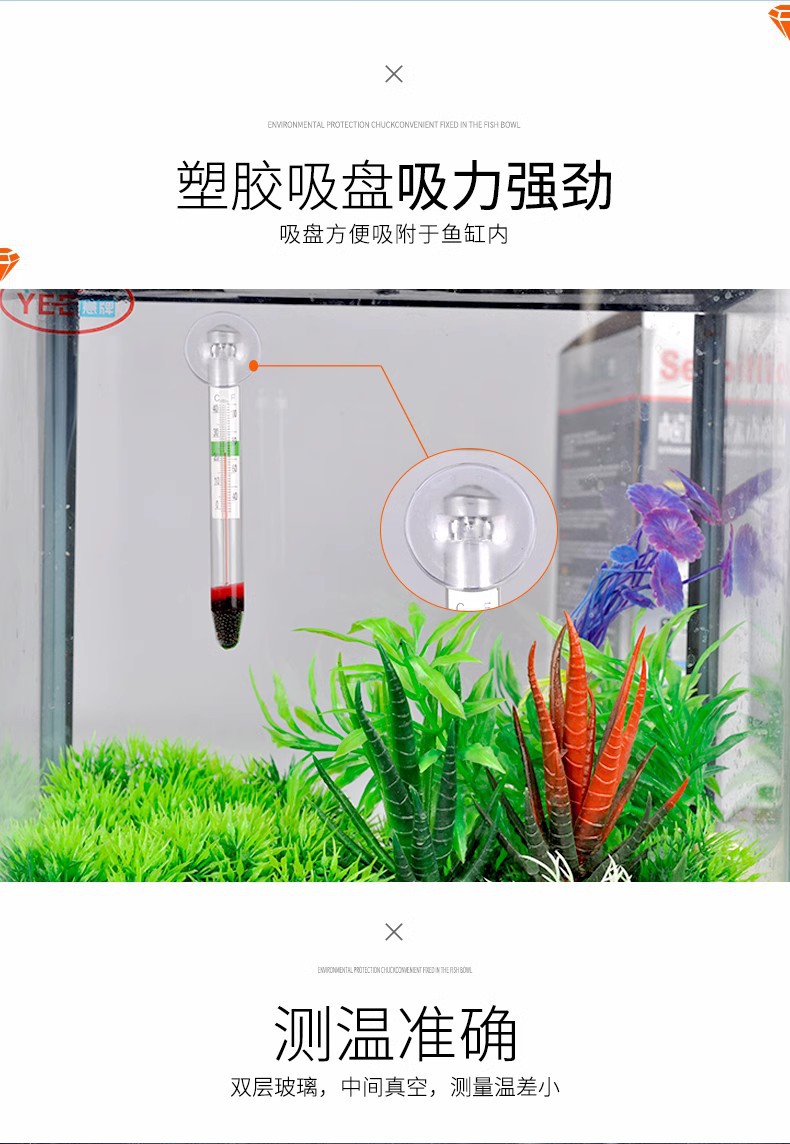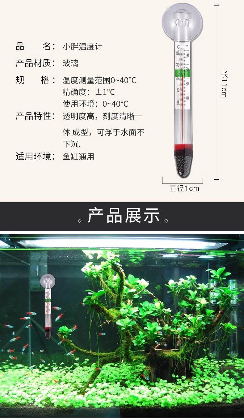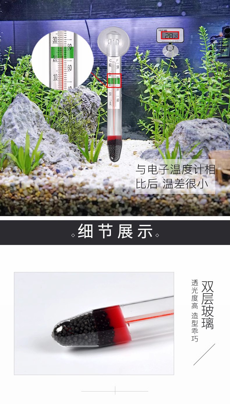 严选【悬浮设计精准测温】鱼缸温度计高精度水族潜水玻璃鱼缸专用挂钩水温计1个