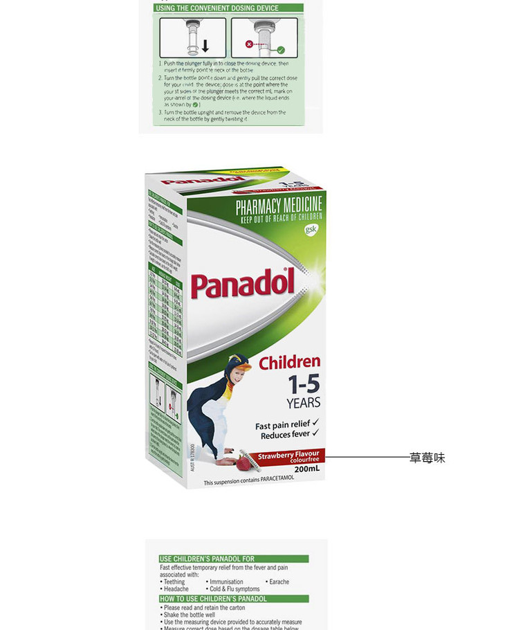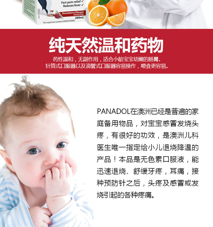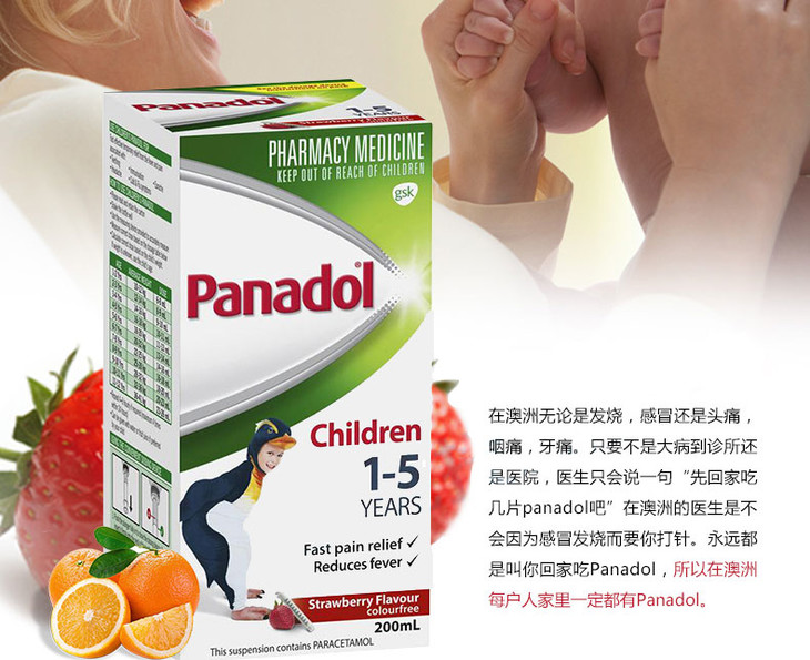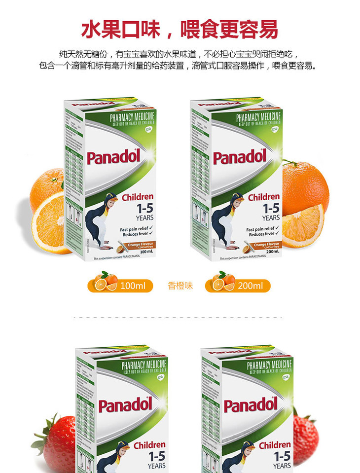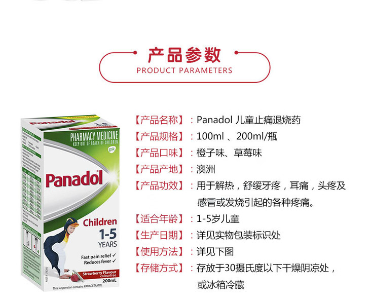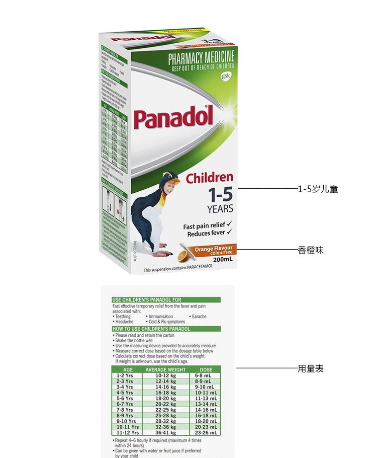 (永久下架)澳洲Panadol 5-12歲 橘子味 200ml 退烧灵