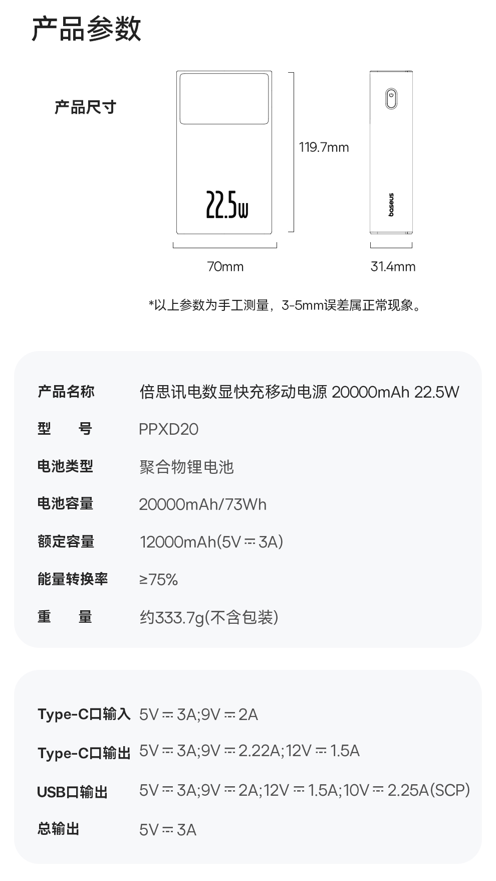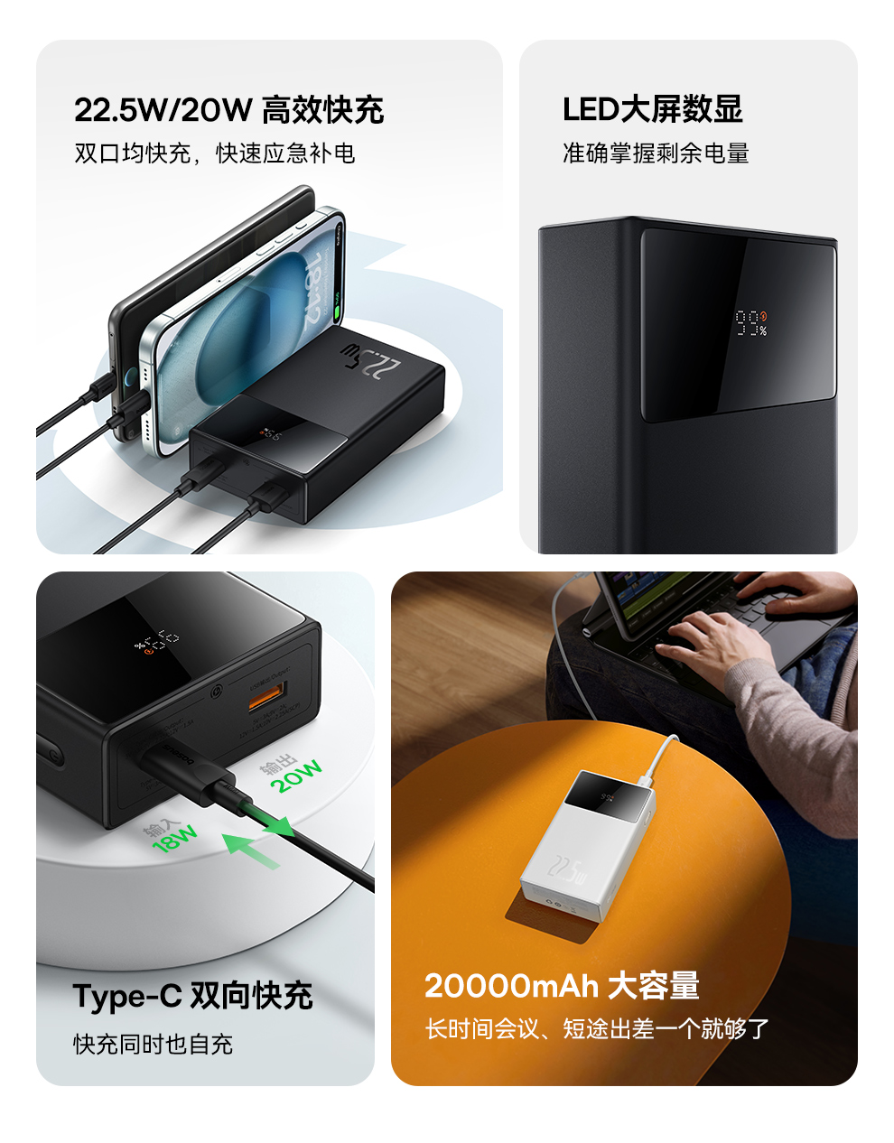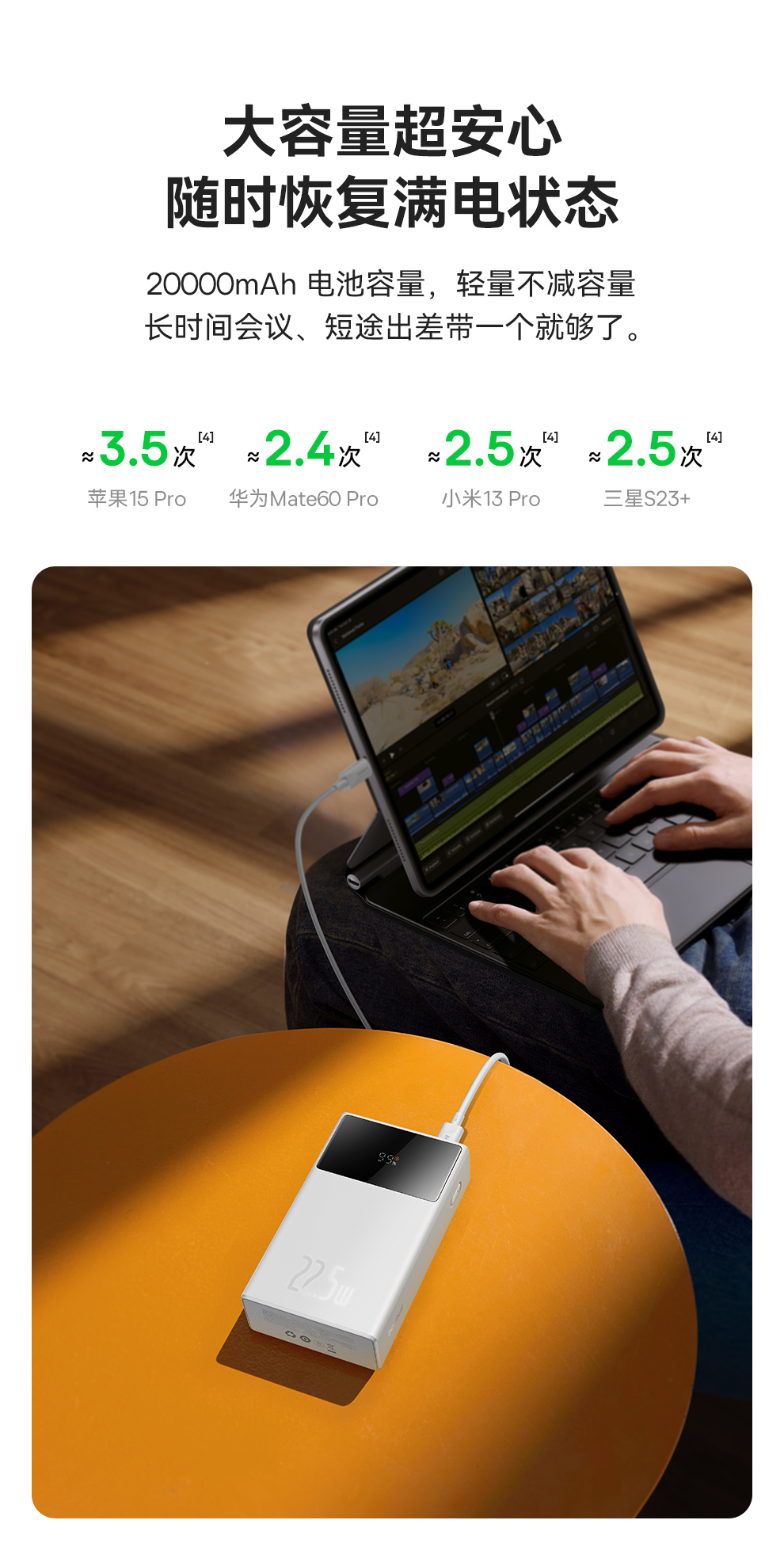 倍思 讯电 数显快充移动电源 20000mAh 22.5W