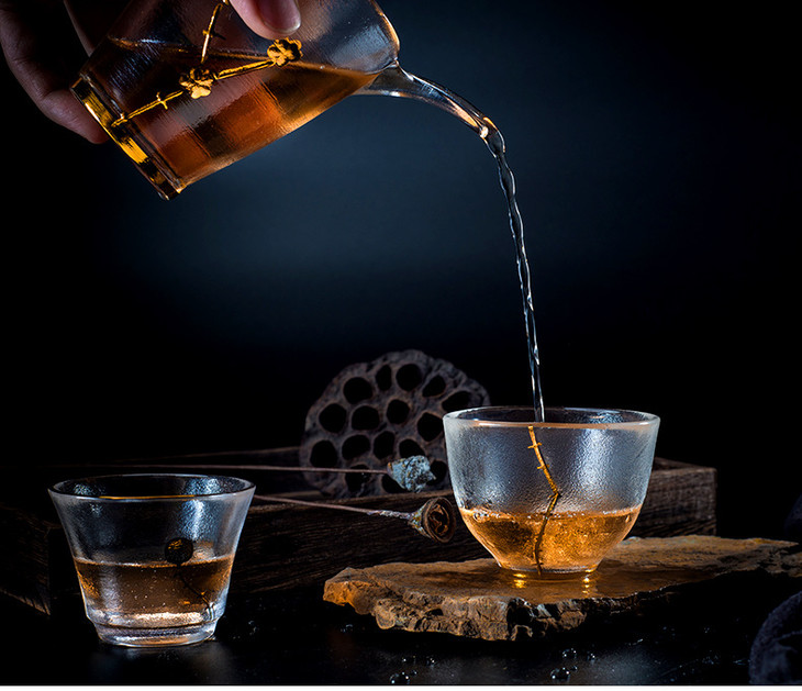 「蓝蜜蜂·茶器」手作锤纹描金玻璃系列