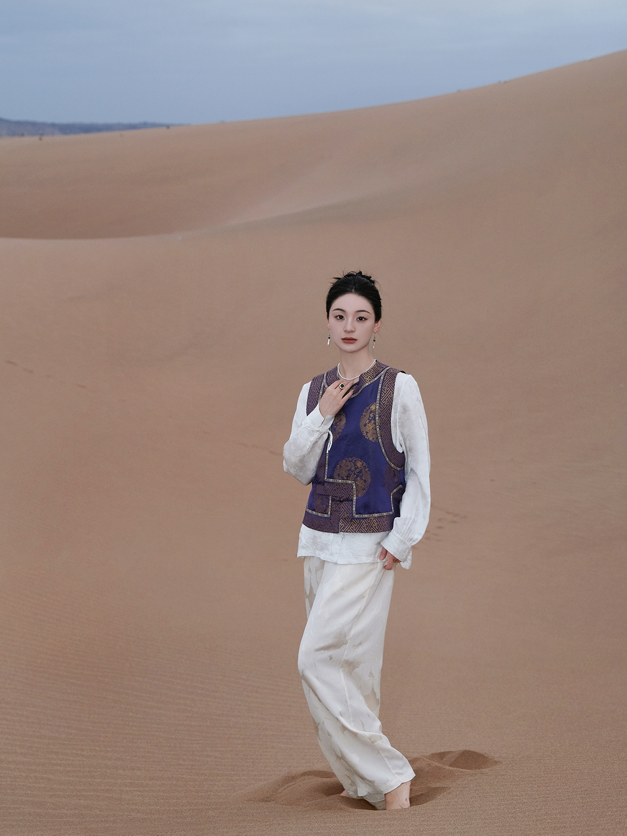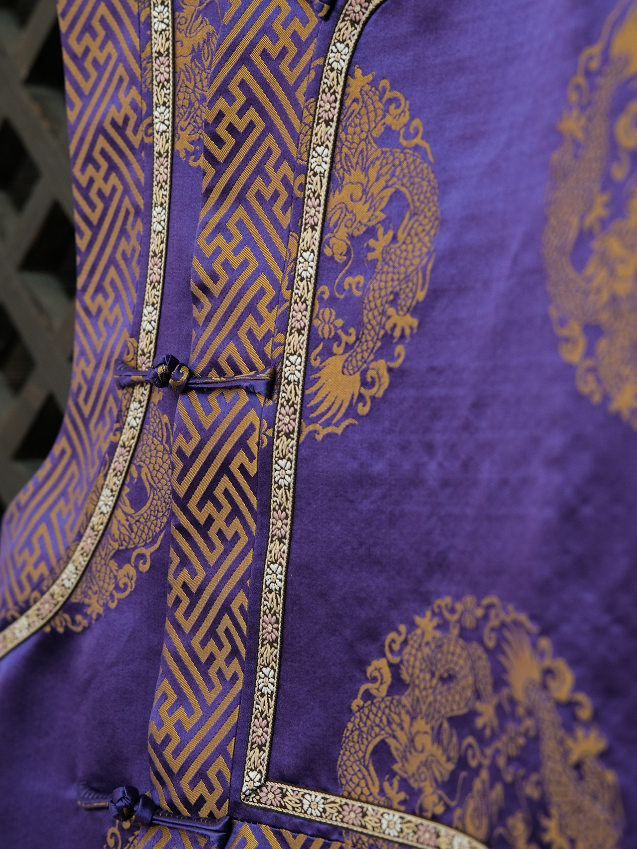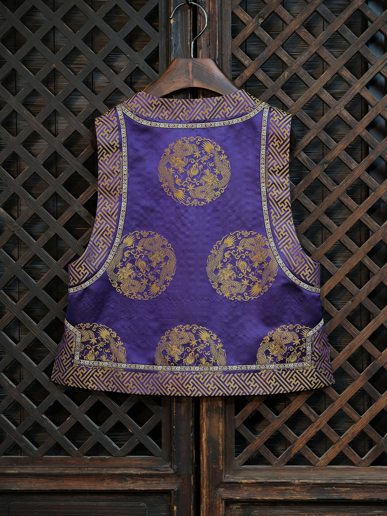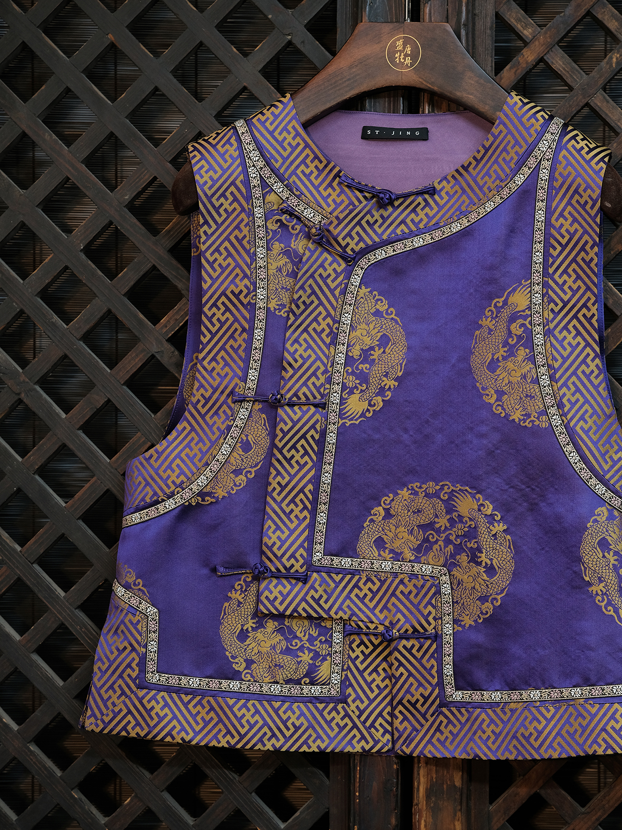 盛唐婧 |中式国风万字纹库缎琵琶襟马甲-紫色