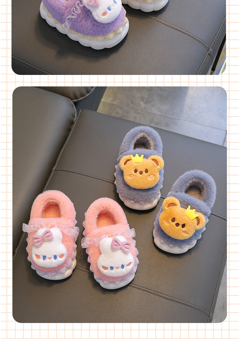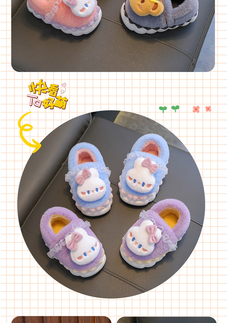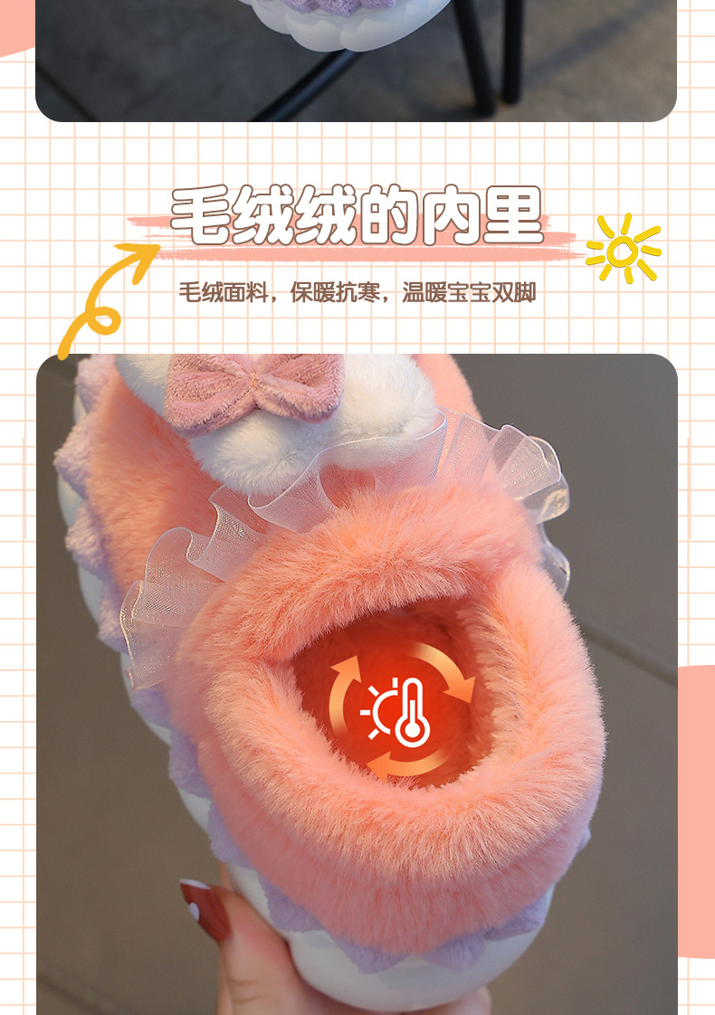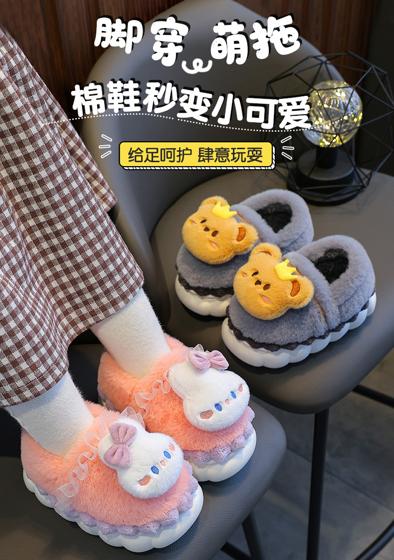 【立体卡通棉拖从里暖倒外】冬季毛茸茸儿童棉拖鞋,防滑鞋底保暖锁温牢固缝线,包跟防滑保暖婴幼儿宝宝居家小孩棉鞋QQ
