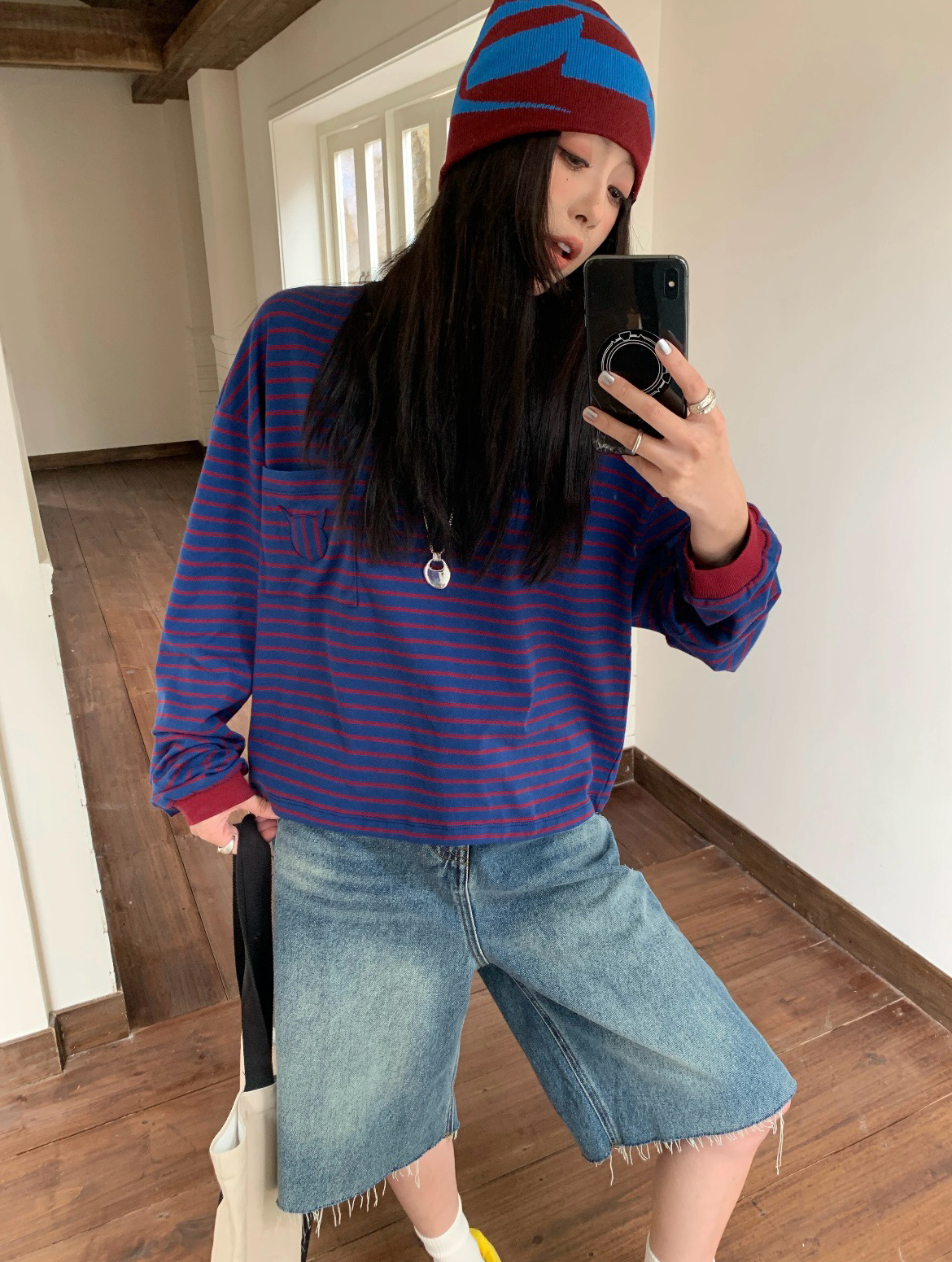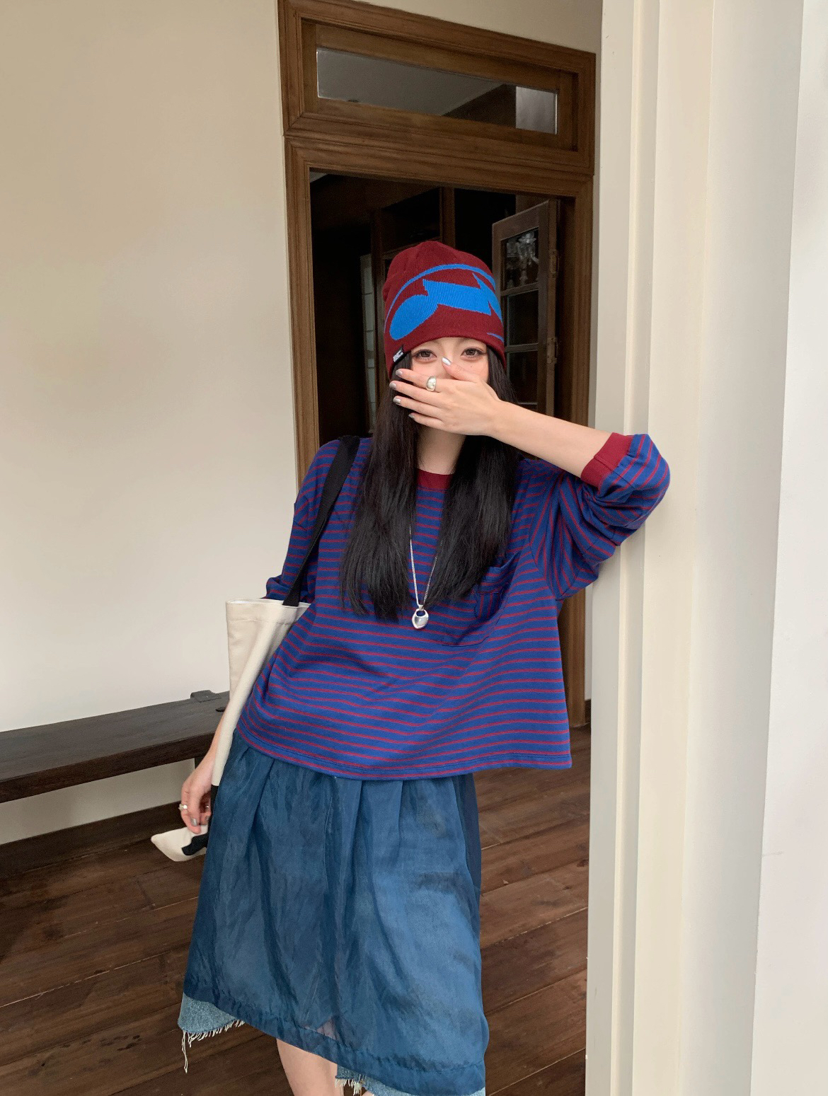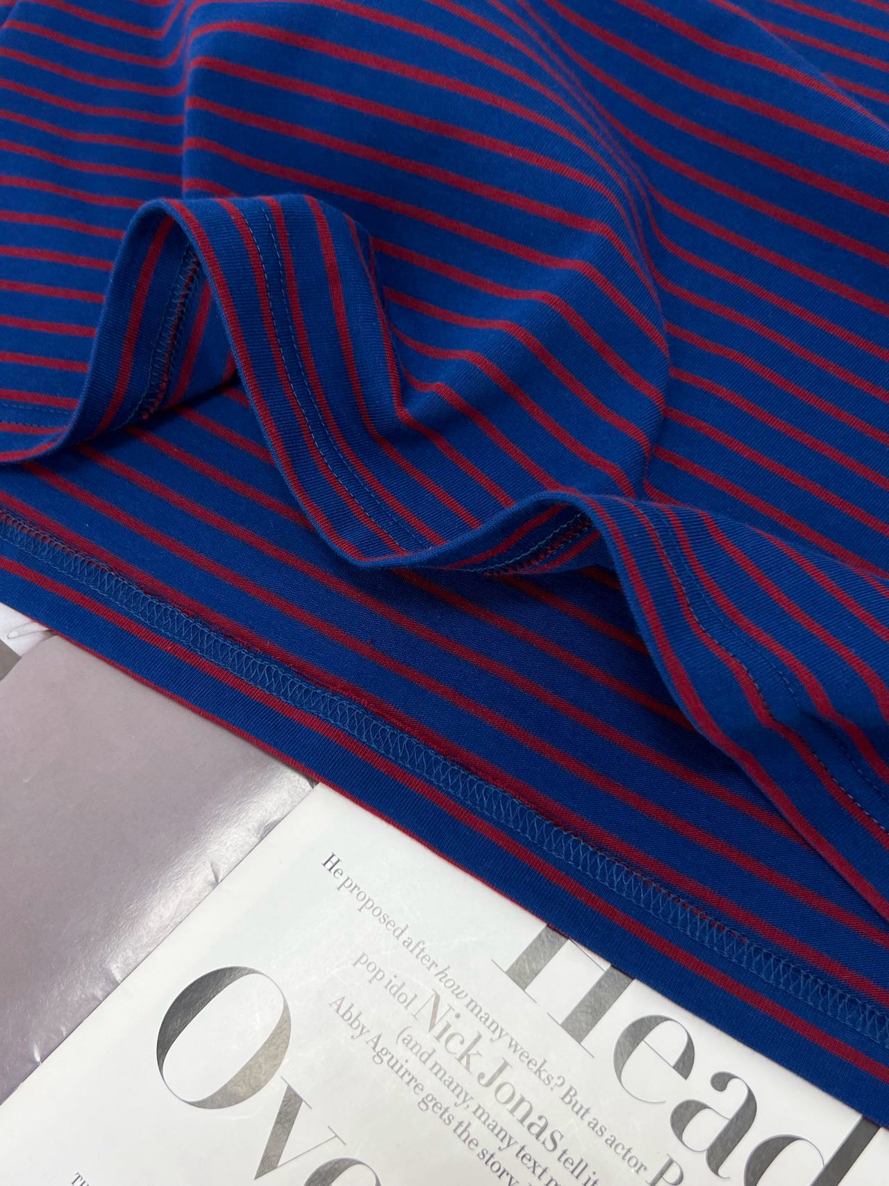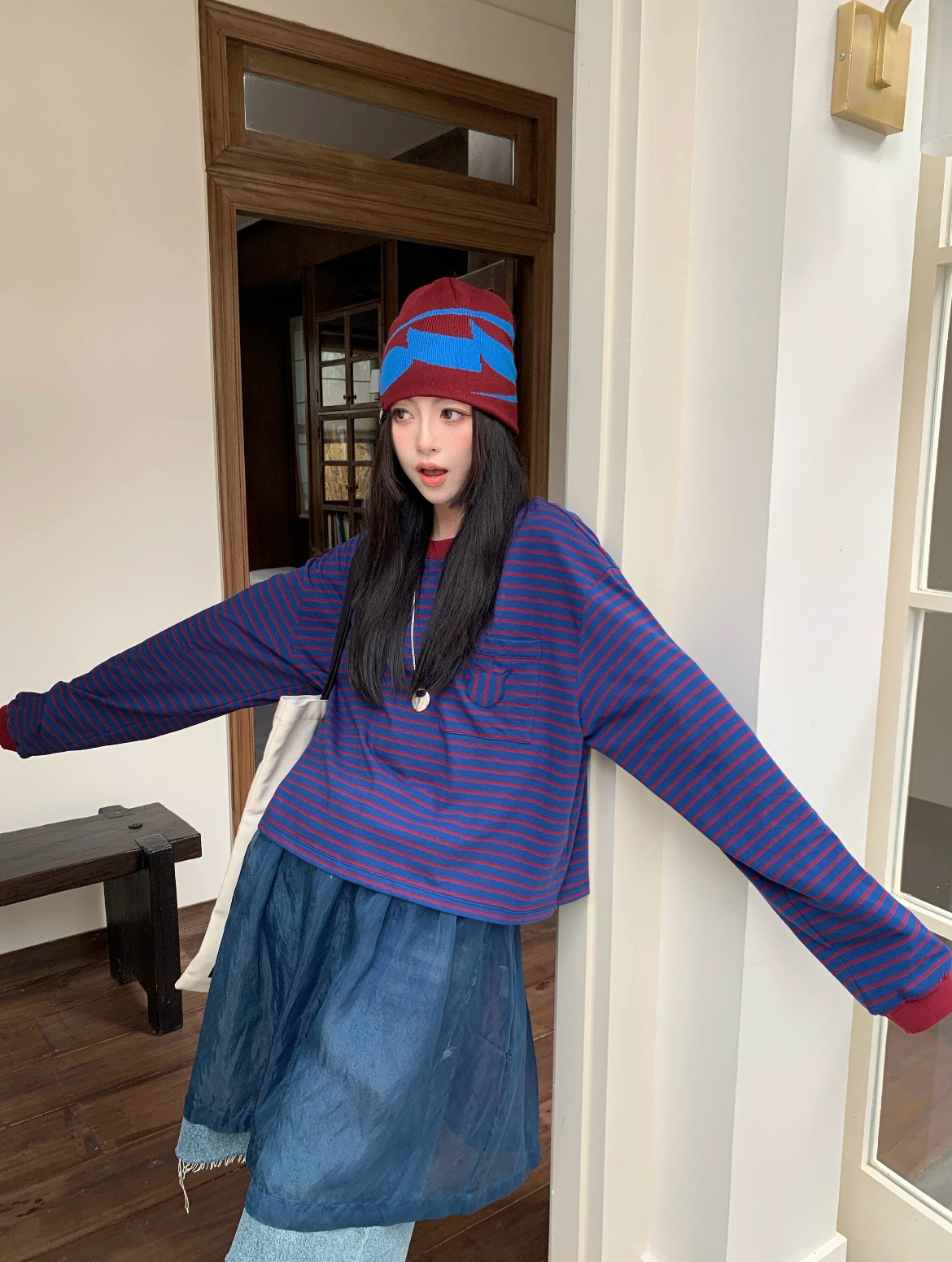 蓝色+红条 撞色没想到会这么好看