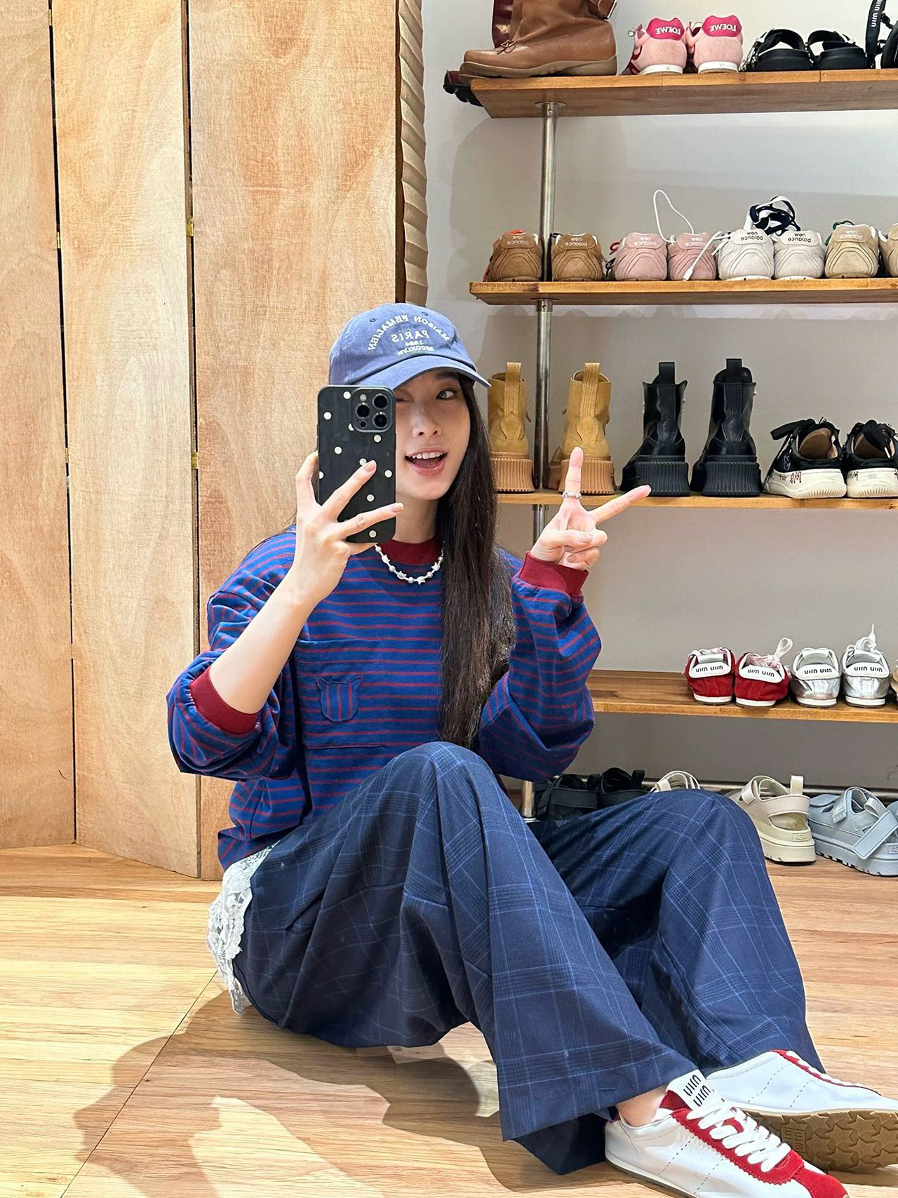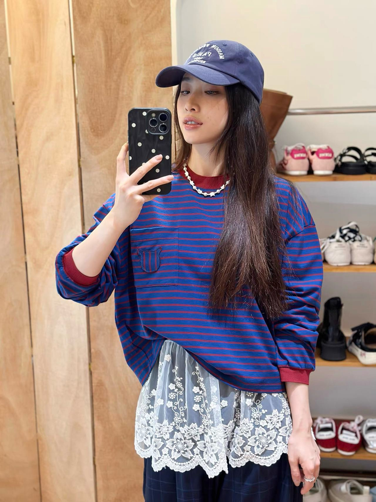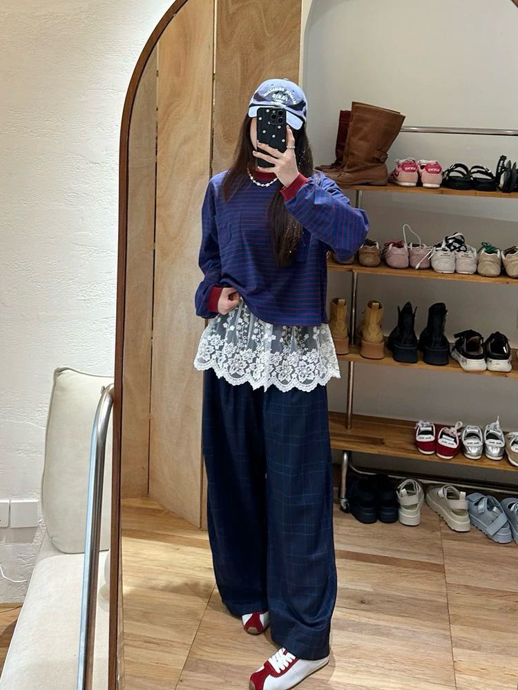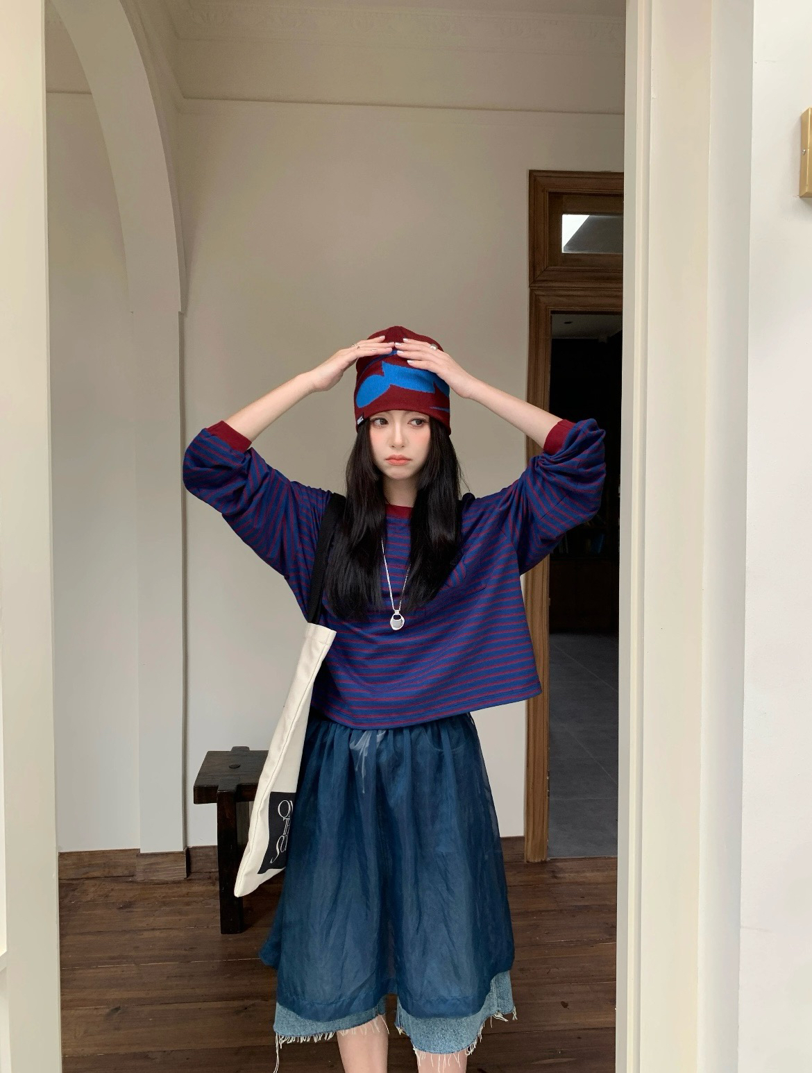 蓝色+红条 撞色没想到会这么好看