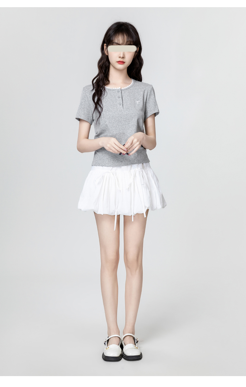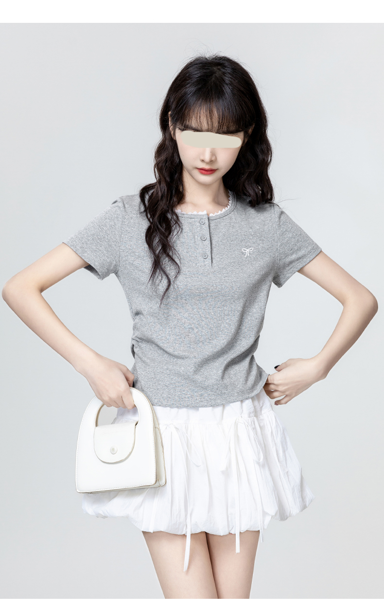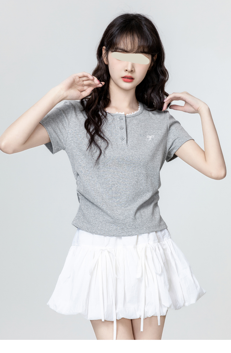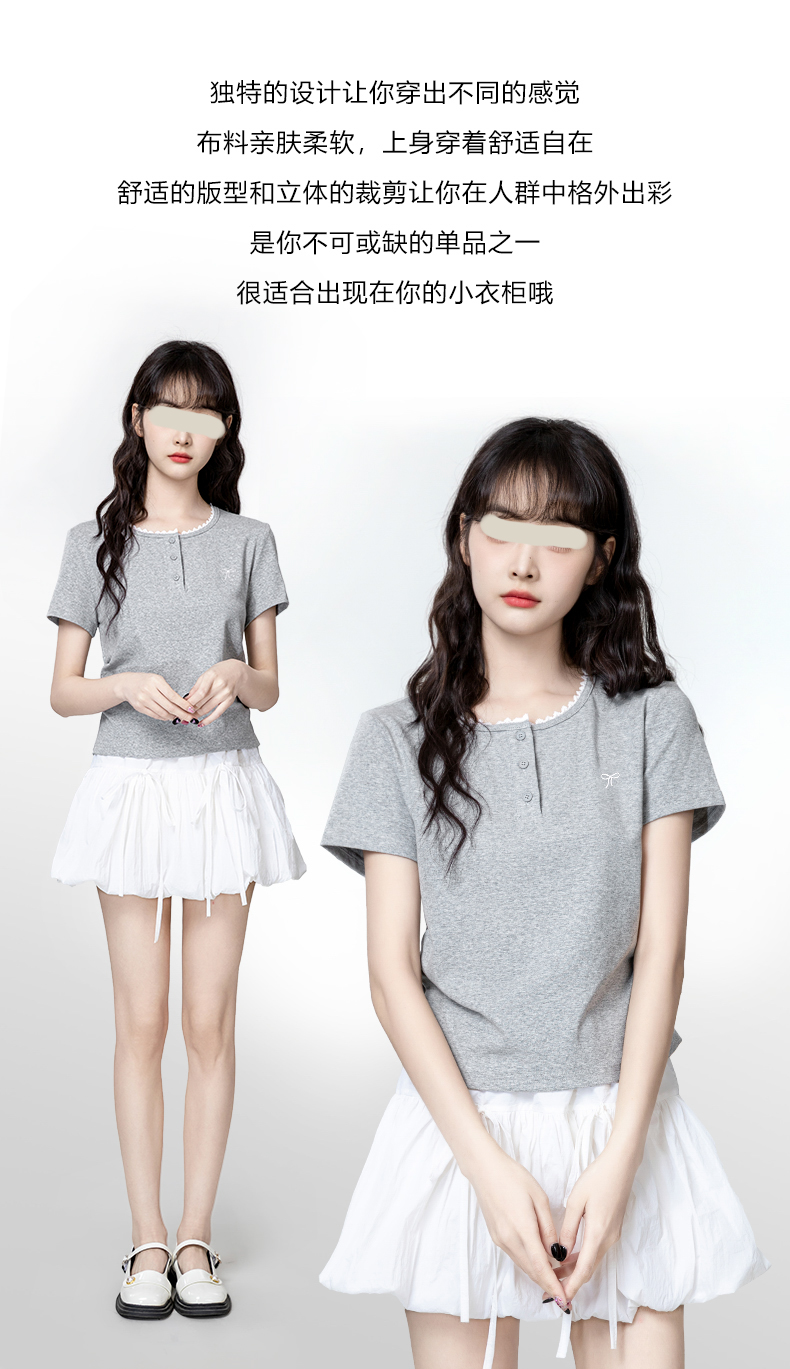 裁缝学苑AH29新款褶皱收腰短袖T恤纸样女装半开圆领正肩体恤