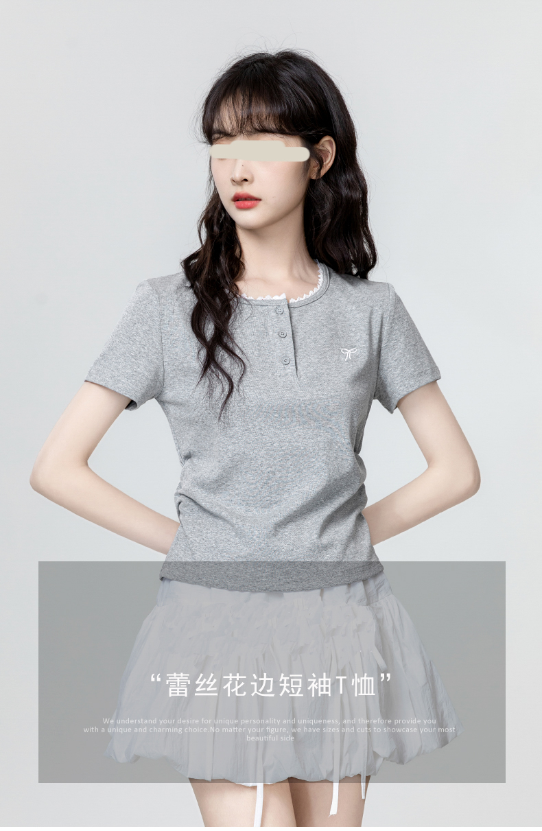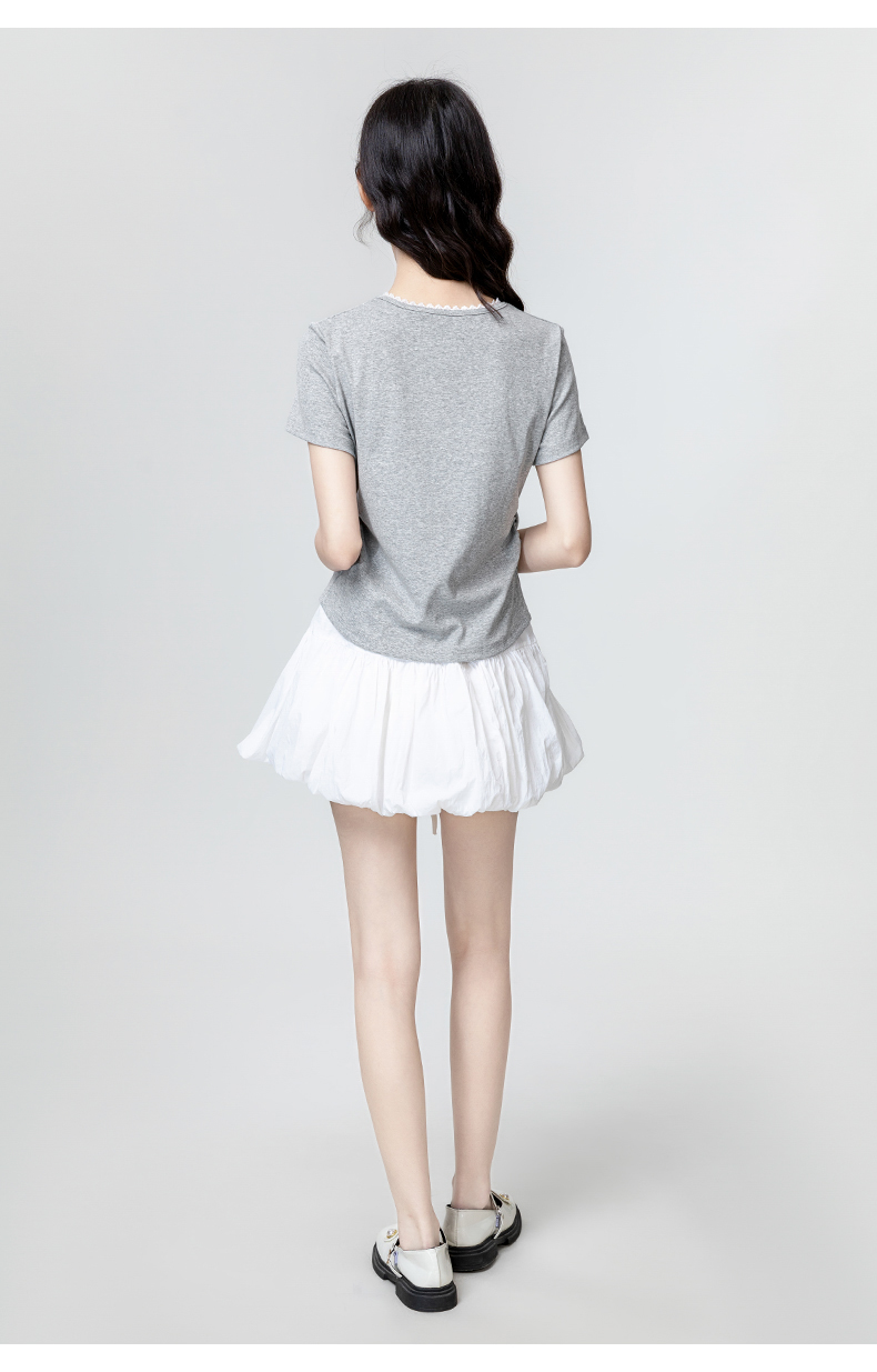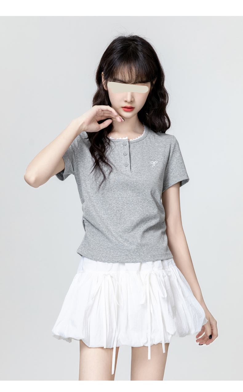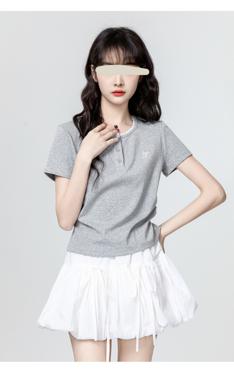 裁缝学苑AH29新款褶皱收腰短袖T恤纸样女装半开圆领正肩体恤
