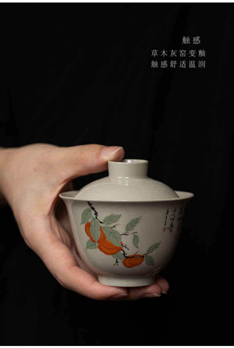 永利汇复古草木灰色釉陶瓷手抓盖碗茶杯单个家用功夫茶具泡茶碗