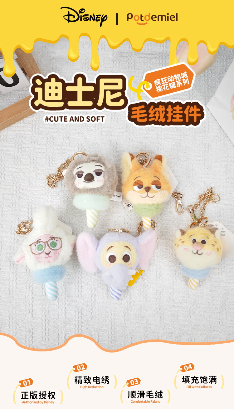 potdemiel蜂蜜罐 疯狂动物城 棉花糖系列 毛绒挂件