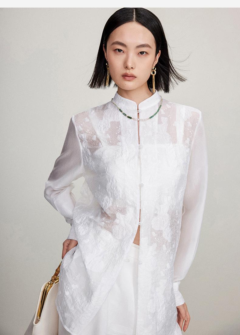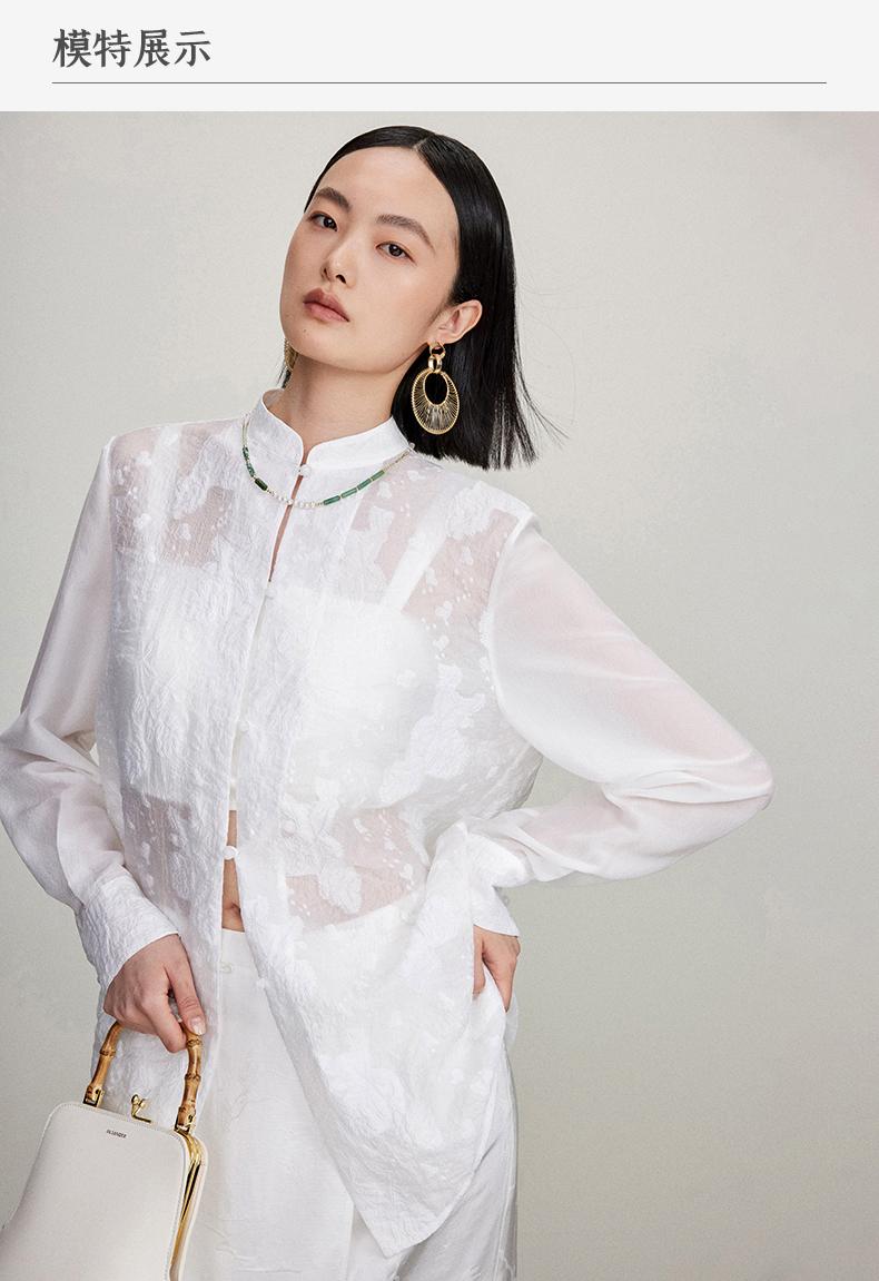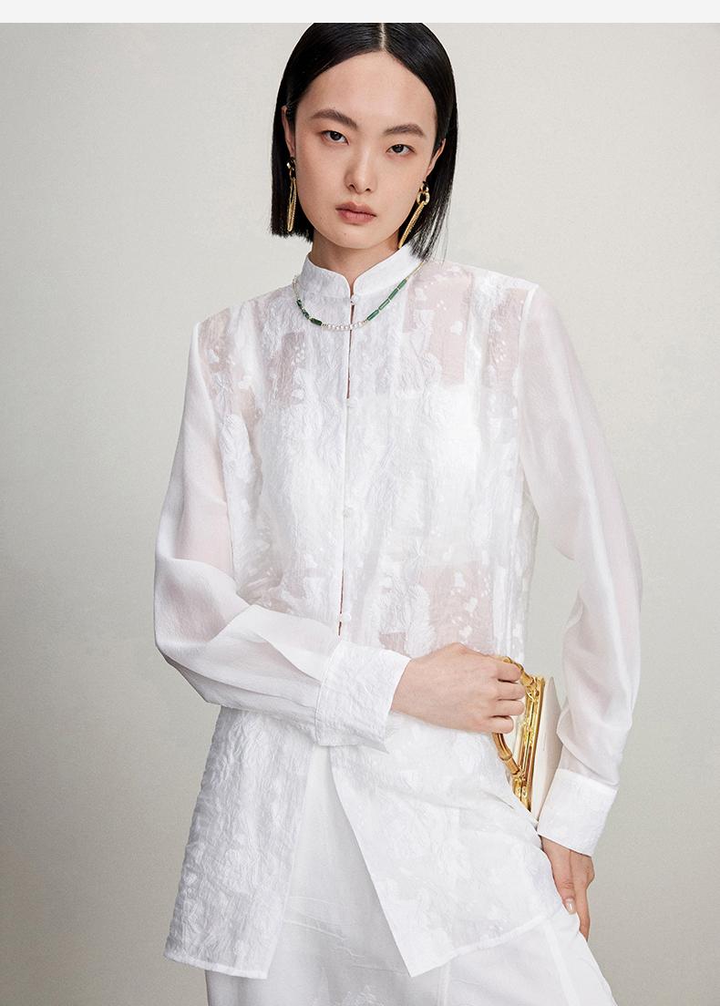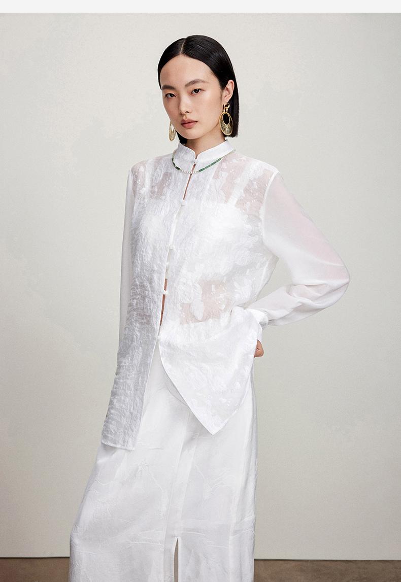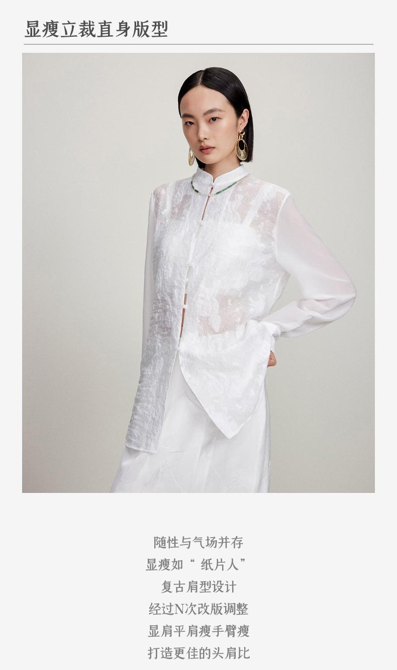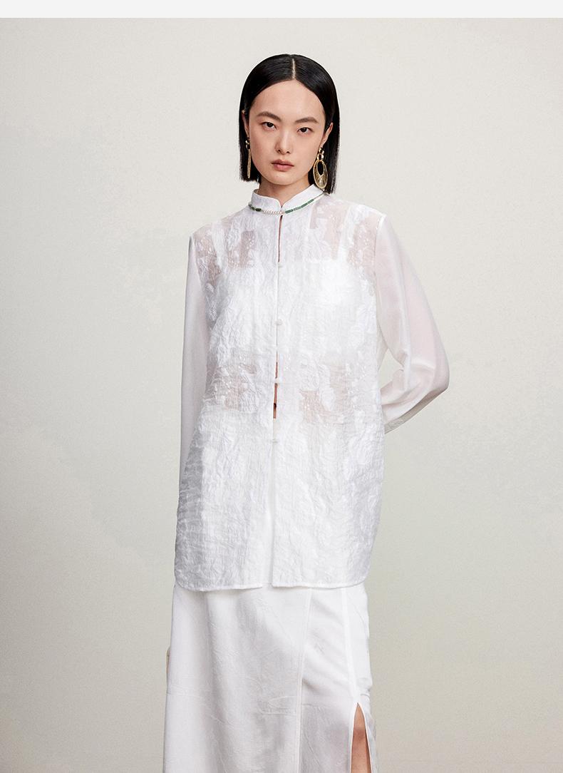 西嘉C+IMPRESS/西嘉清冷感新中式立领衬衫女薄款玫瑰提花醋酸拼接CS2402011