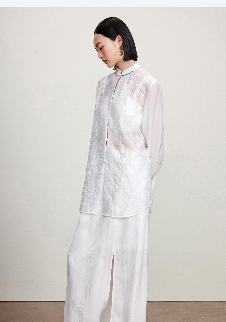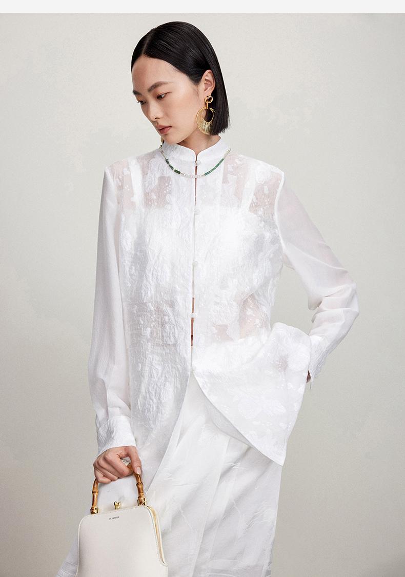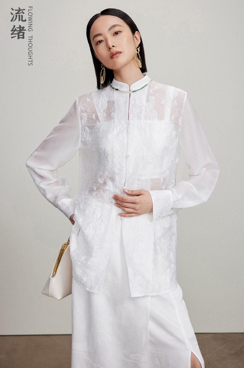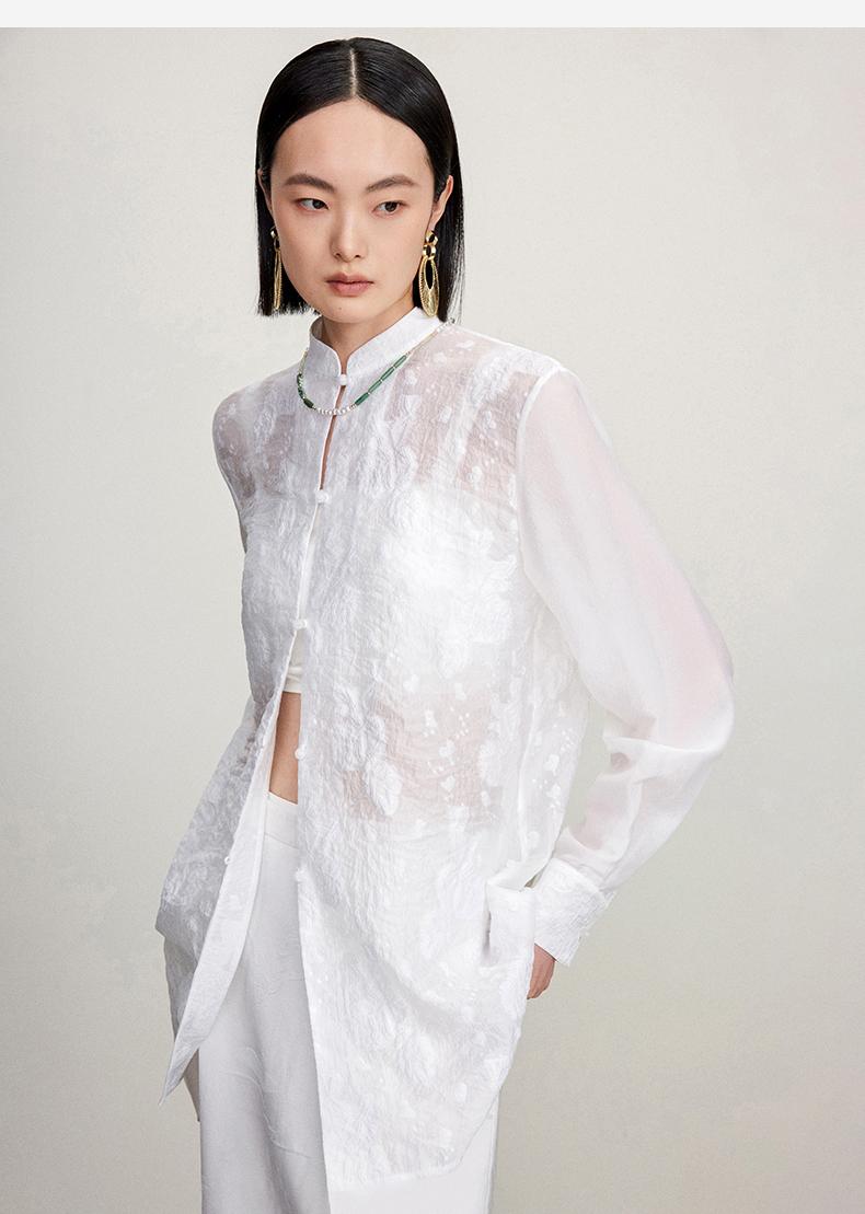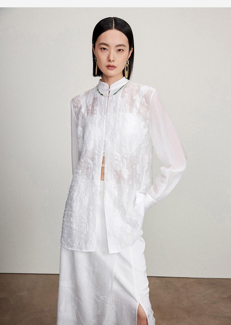 西嘉C+IMPRESS/西嘉清冷感新中式立领衬衫女薄款玫瑰提花醋酸拼接CS2402011