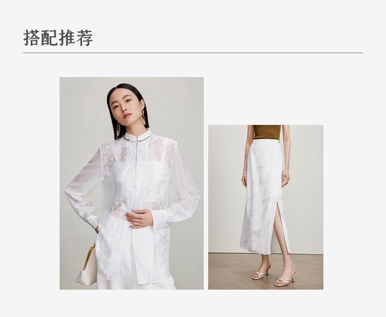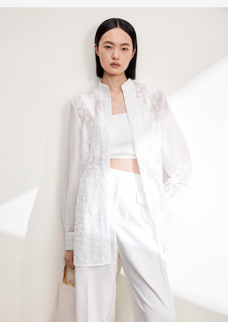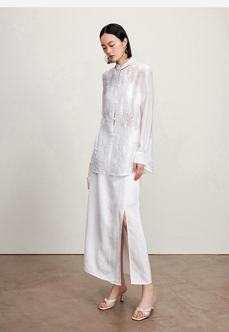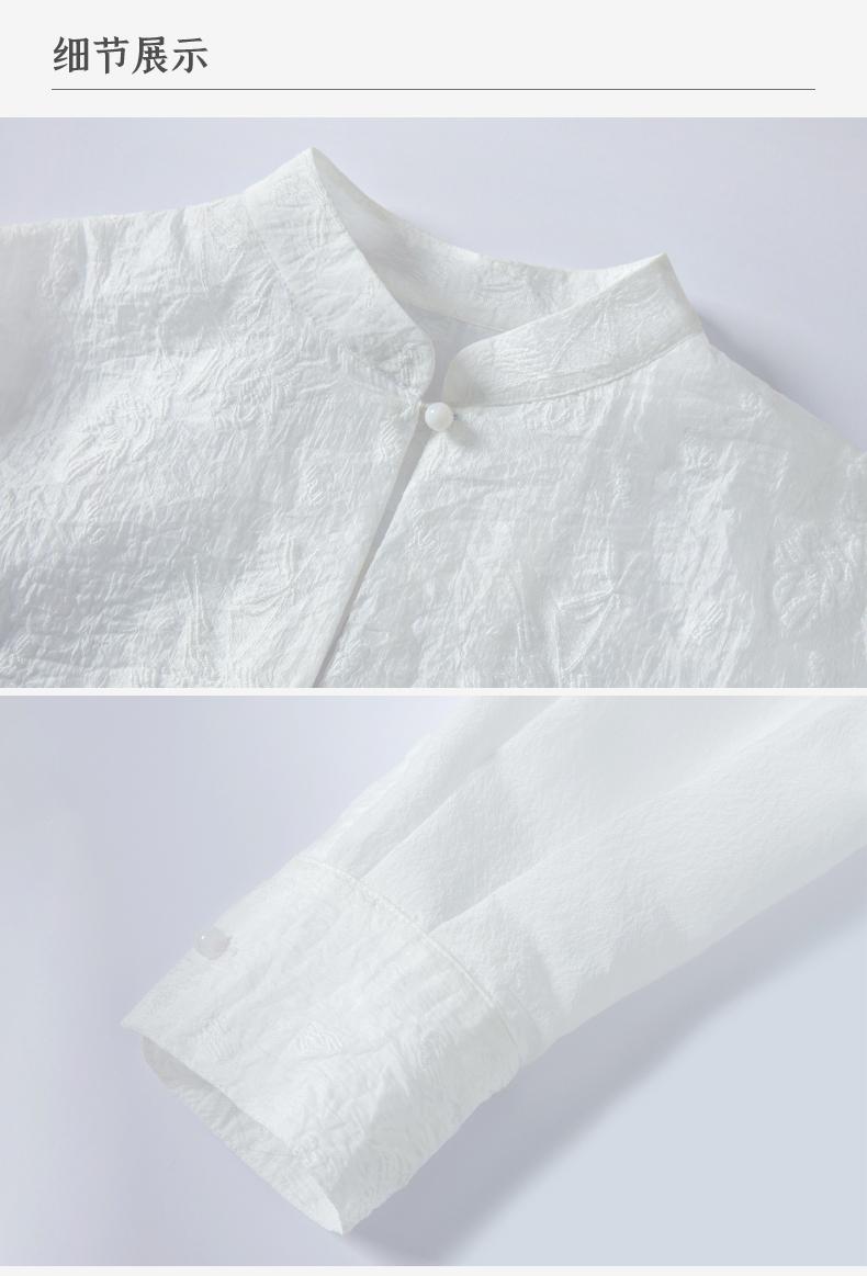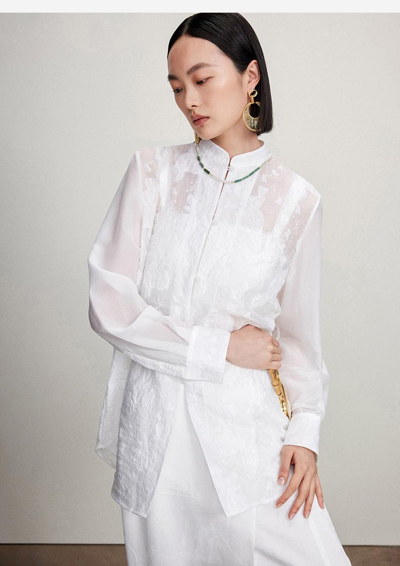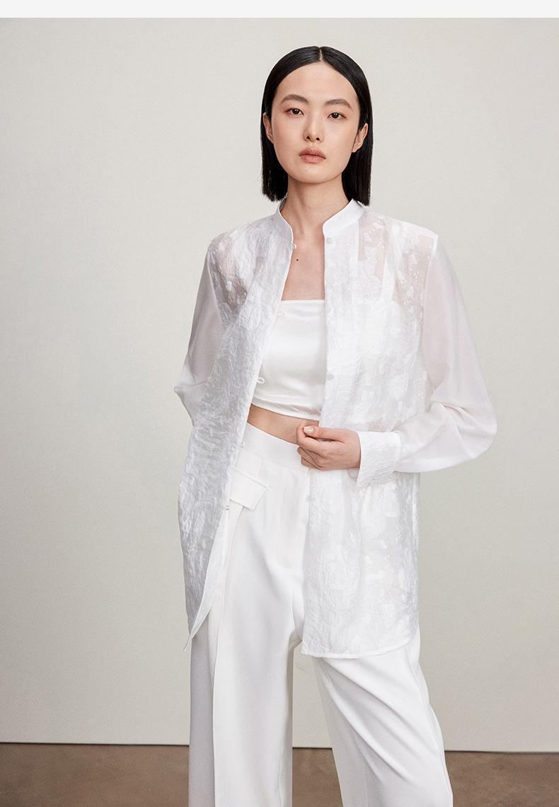 西嘉C+IMPRESS/西嘉清冷感新中式立领衬衫女薄款玫瑰提花醋酸拼接CS2402011