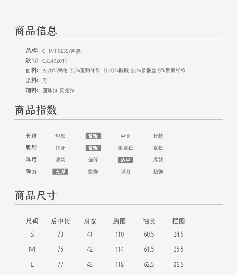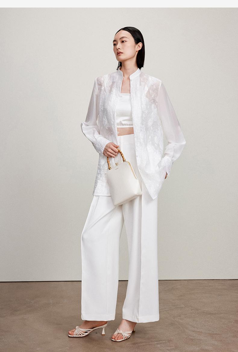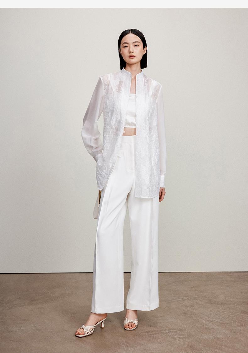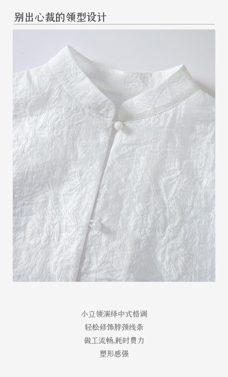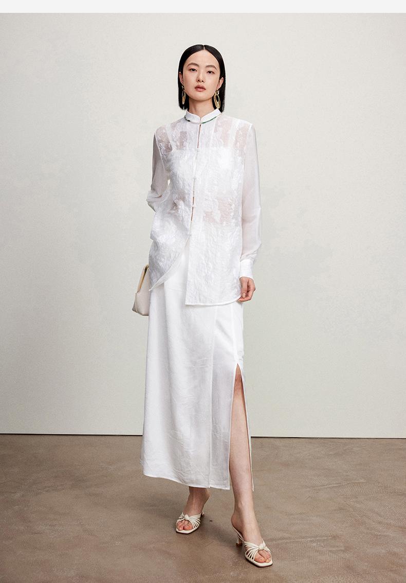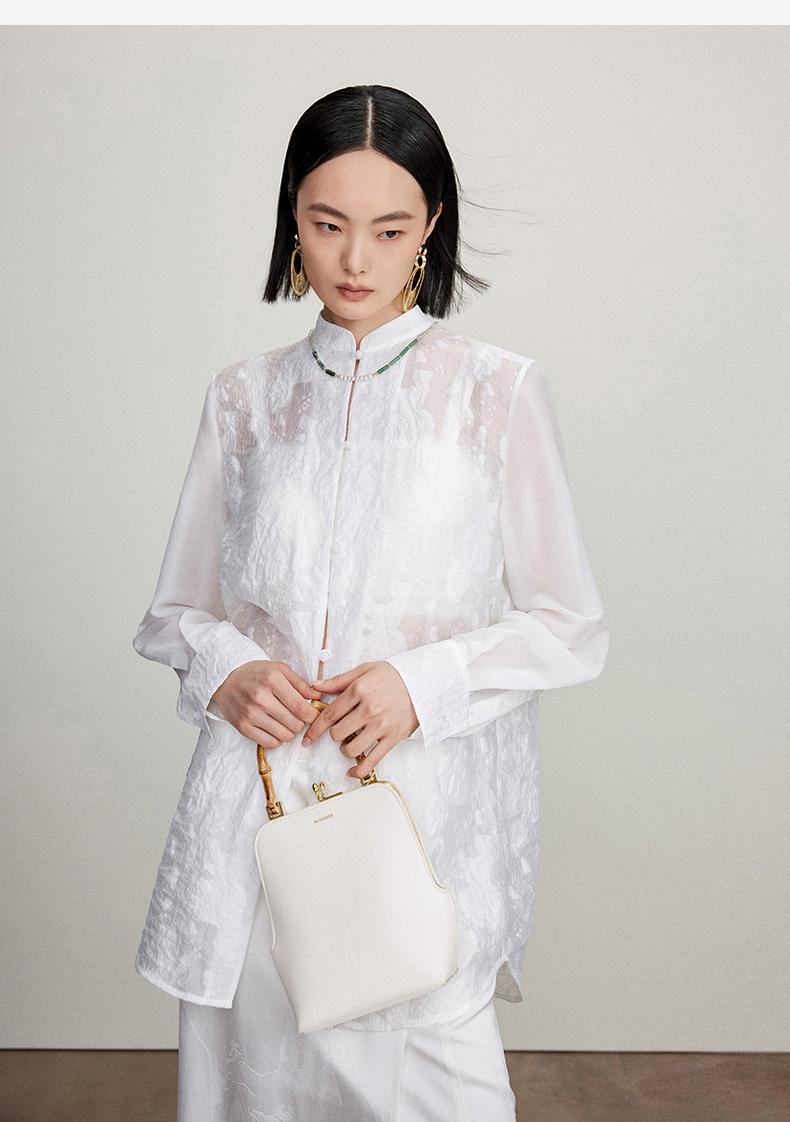 西嘉C+IMPRESS/西嘉清冷感新中式立领衬衫女薄款玫瑰提花醋酸拼接CS2402011