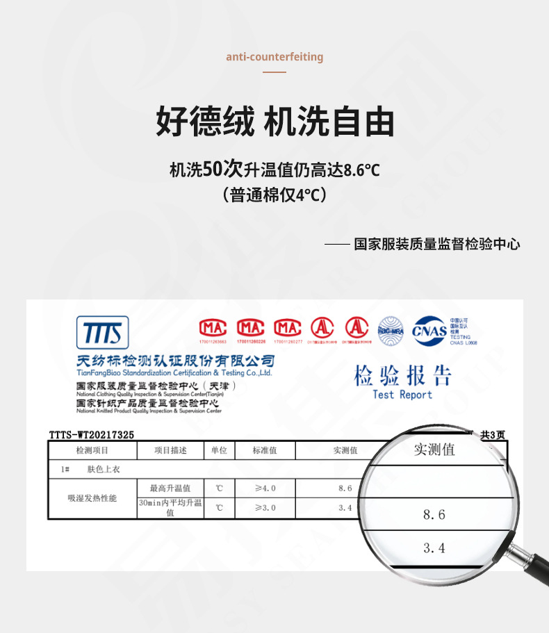 【真德绒超薄发热衣】男女款套装,含德绒专属吊牌,支持防伪查询!可以穿的“暖宝宝”,上身+8.6℃,高弹修身,服帖不臃肿,亲肤透气、不起球、不掉色、无静电,男女款多色可选