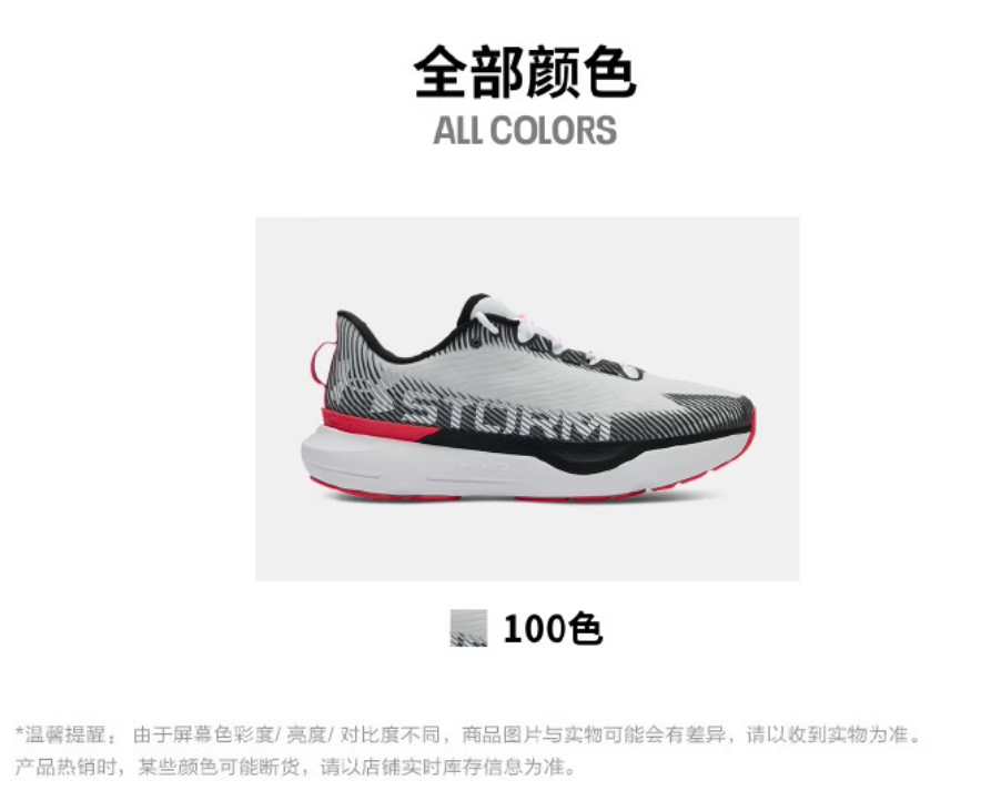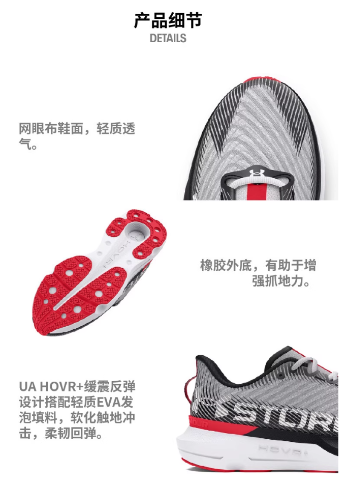 【12.13圣诞专享礼遇】 安德玛UA HOVR 男女同款透气减震耐磨健身训练运动跑步鞋3027588-100