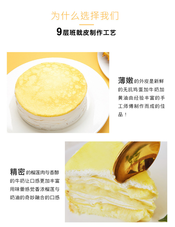 【常州馆】益叔榴莲千层蛋糕生日网红糕点手工鲜蛋糕