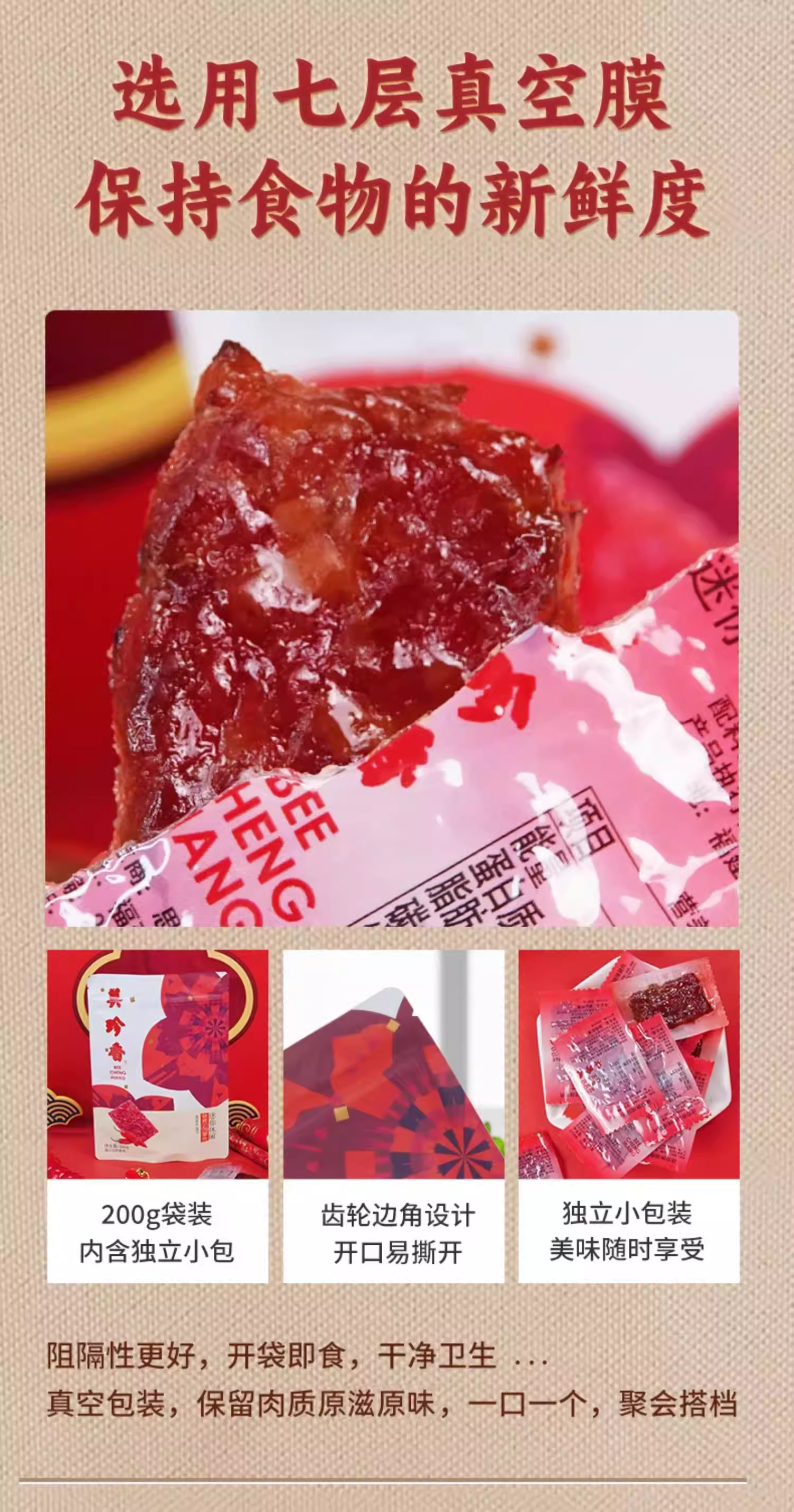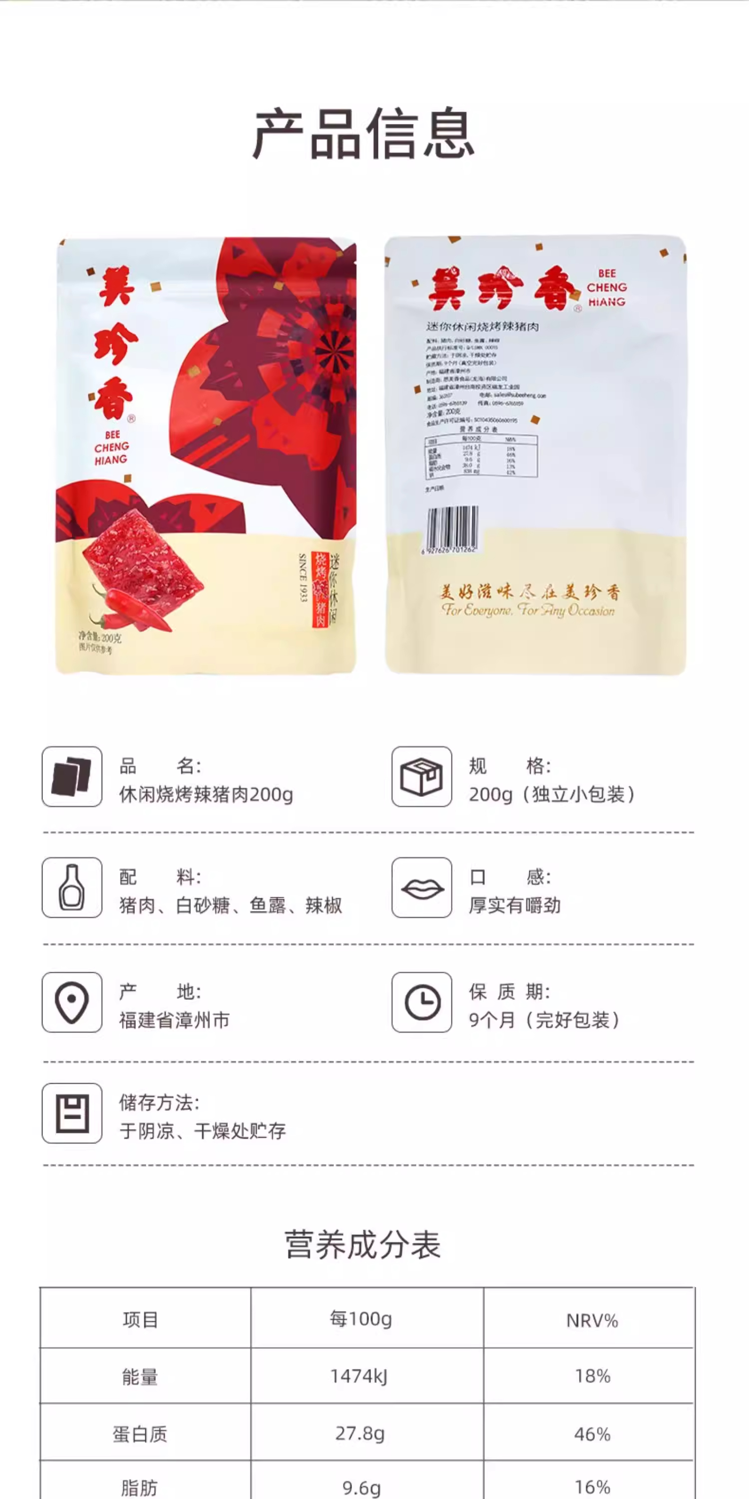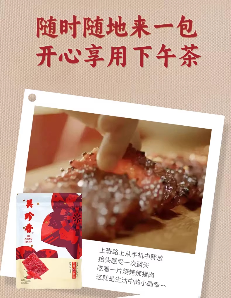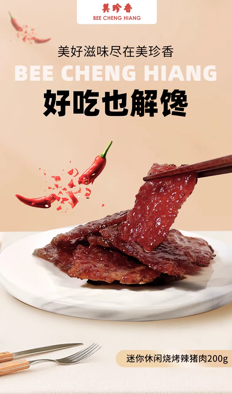 美珍香迷你休闲烧烤辣猪肉200g网红零食新加坡特产肉类小吃小包装