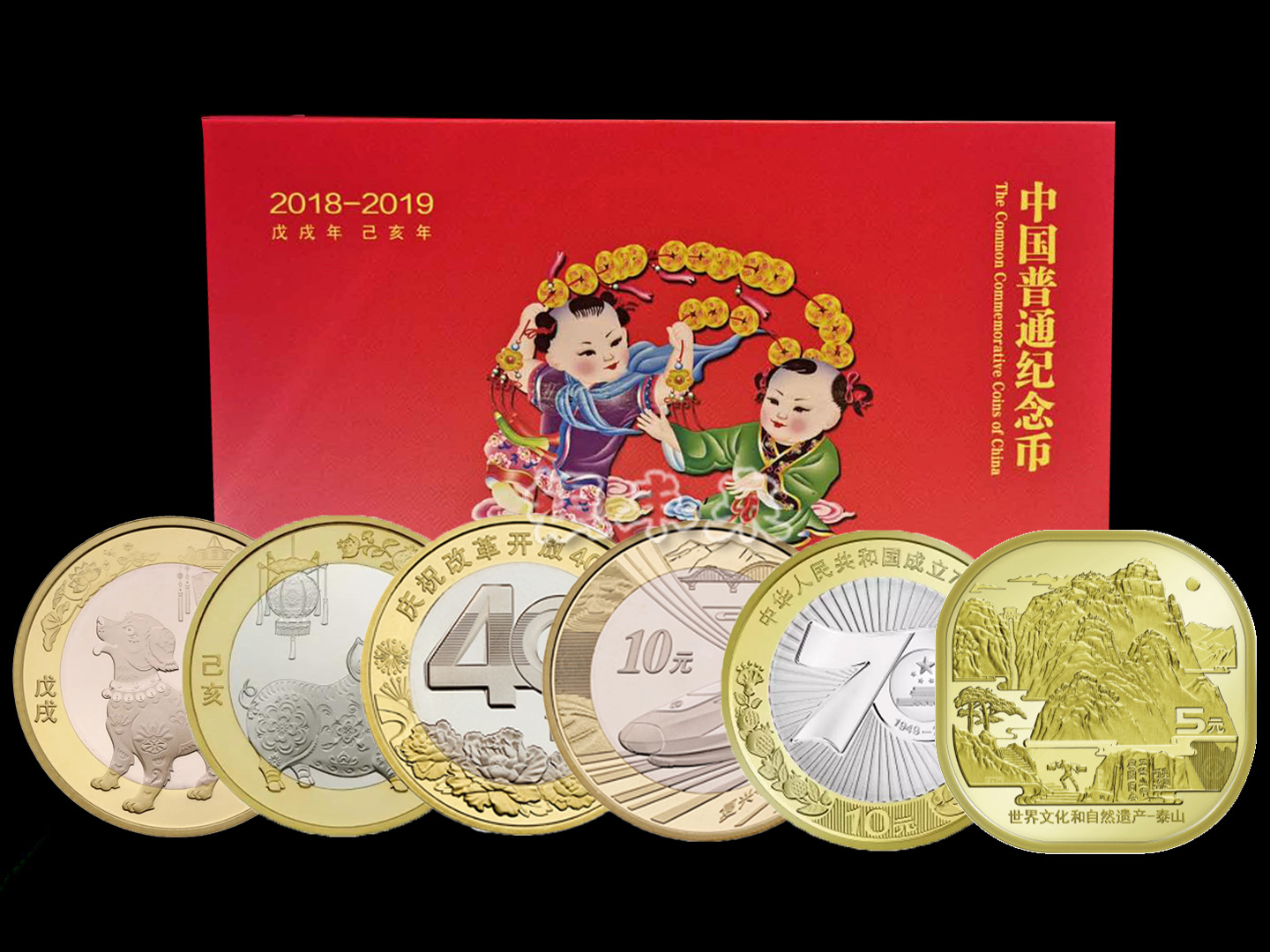 | 产品组成 | 2018年贺岁普通纪念币、中国高铁普通纪念币、庆祝改革开放40周年普通纪念币、2019贺岁普通纪念币、中华人民共和国成立70周年双色铜合金纪念币、世界文化和自然遗产——泰山普通纪念币 |