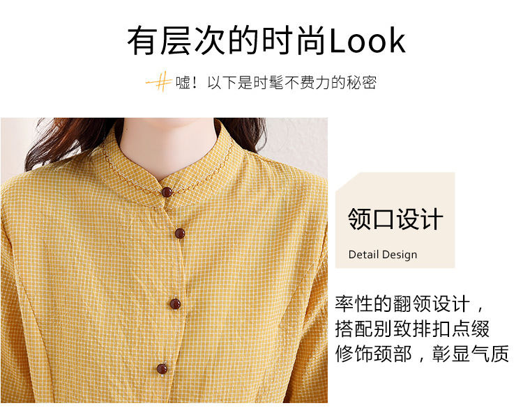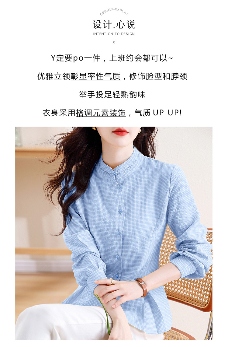 HT-5362秋季格子衬衫女长袖设计感小众显瘦上衣
