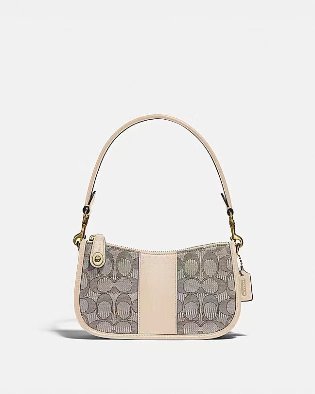 COACH 经典提花织物拼接迷你腋下包 象牙白