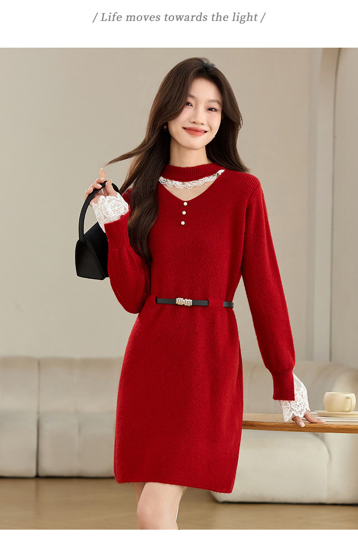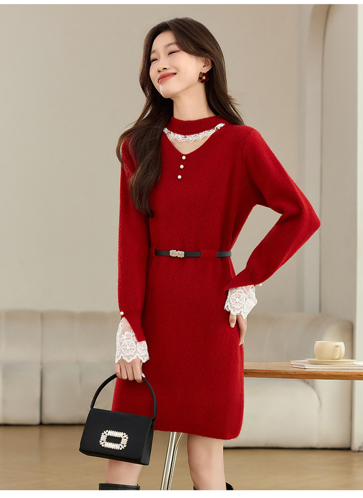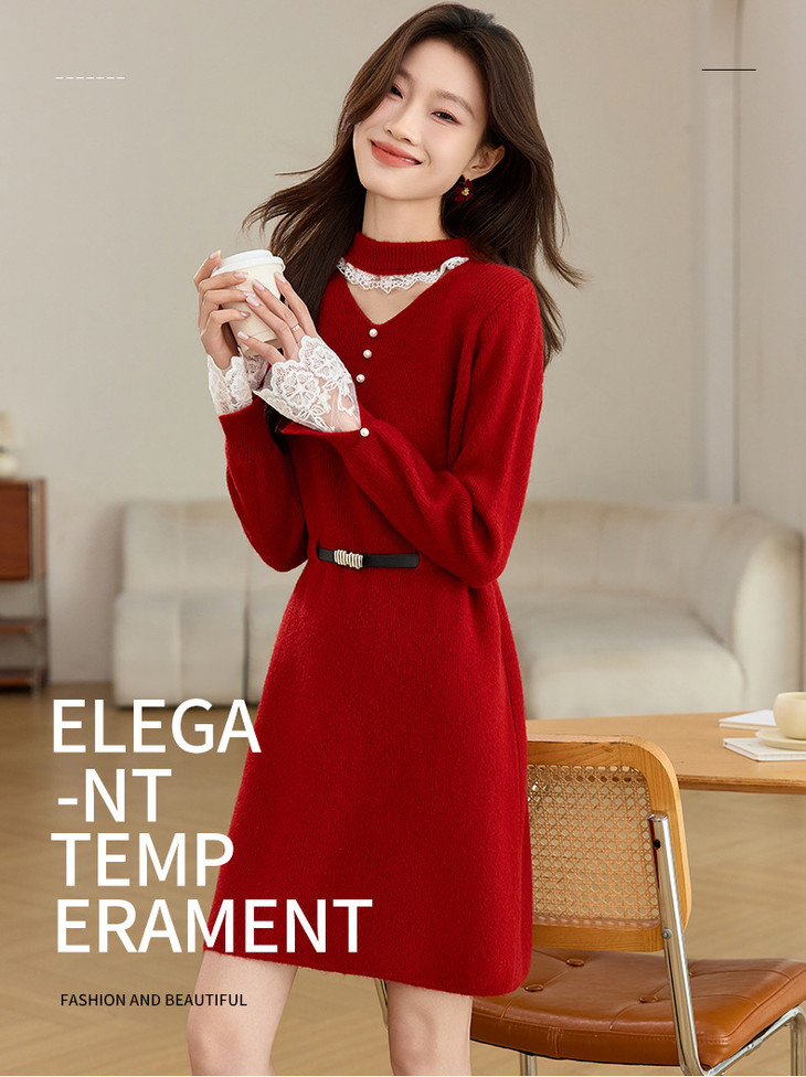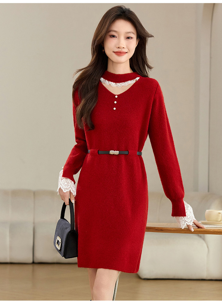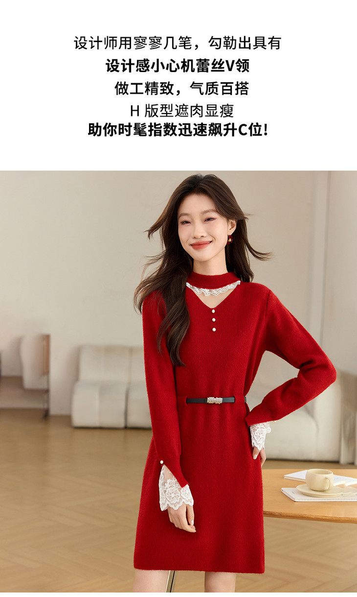 中长款毛衣秋冬2024新款宽松厚遮屁股内搭慵懒风新年针织连衣裙xfy-2351