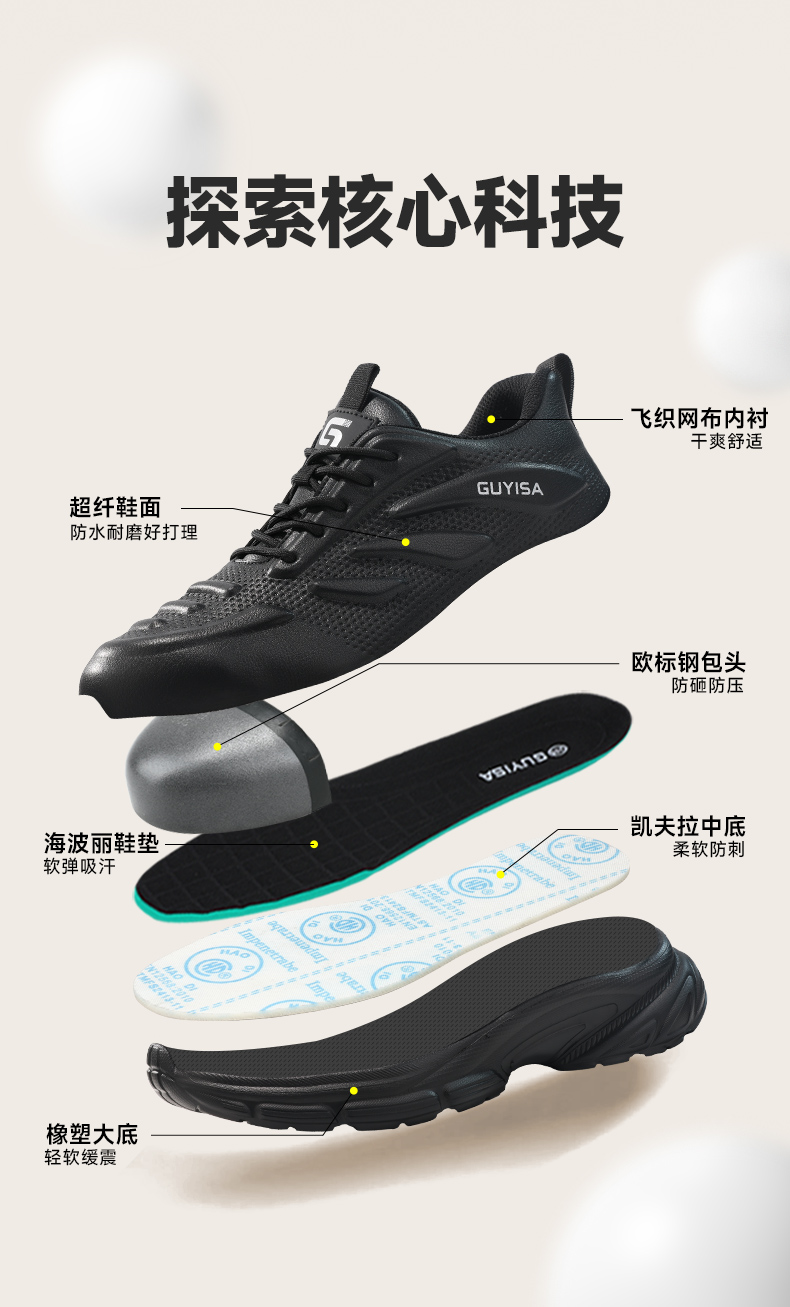 劳保鞋防砸防刺穿欧标钢包头凯夫拉底橡塑底舒适轻便