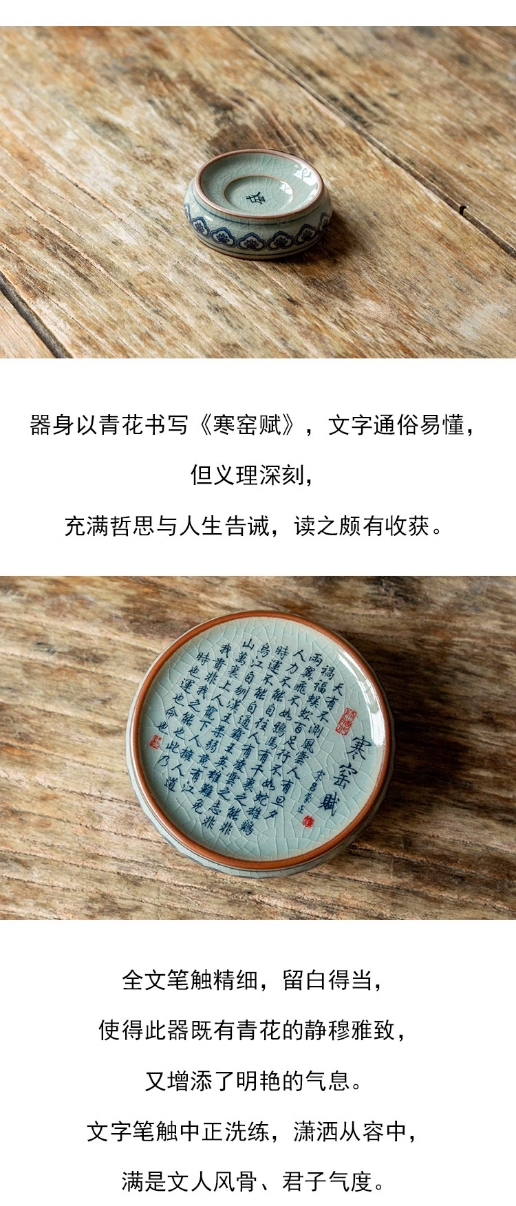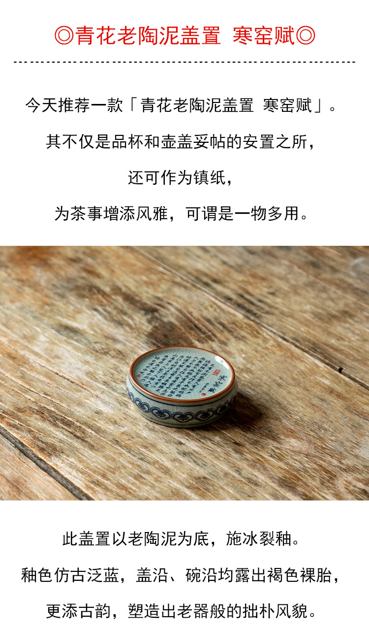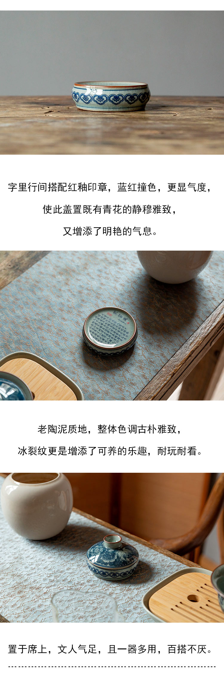 茶香记 青花老陶泥盖置 寒窑赋 冰裂纹 古朴雅致 茶道零配