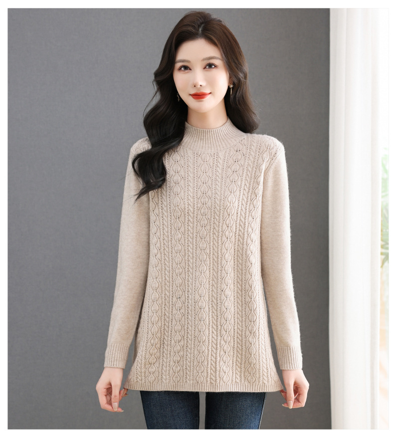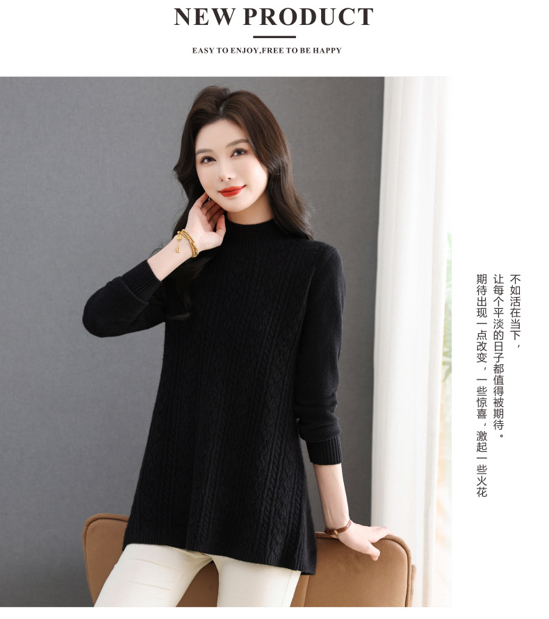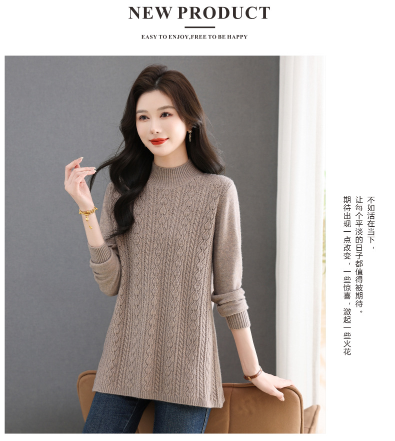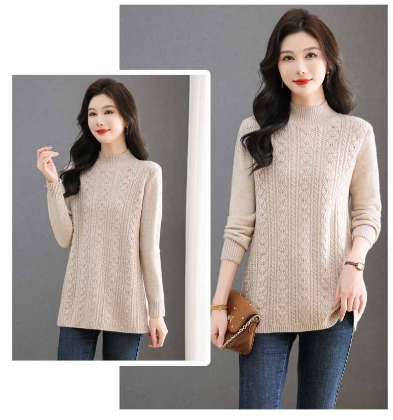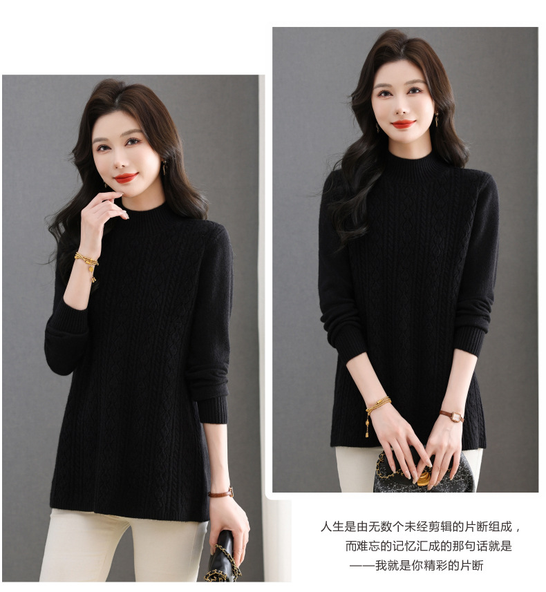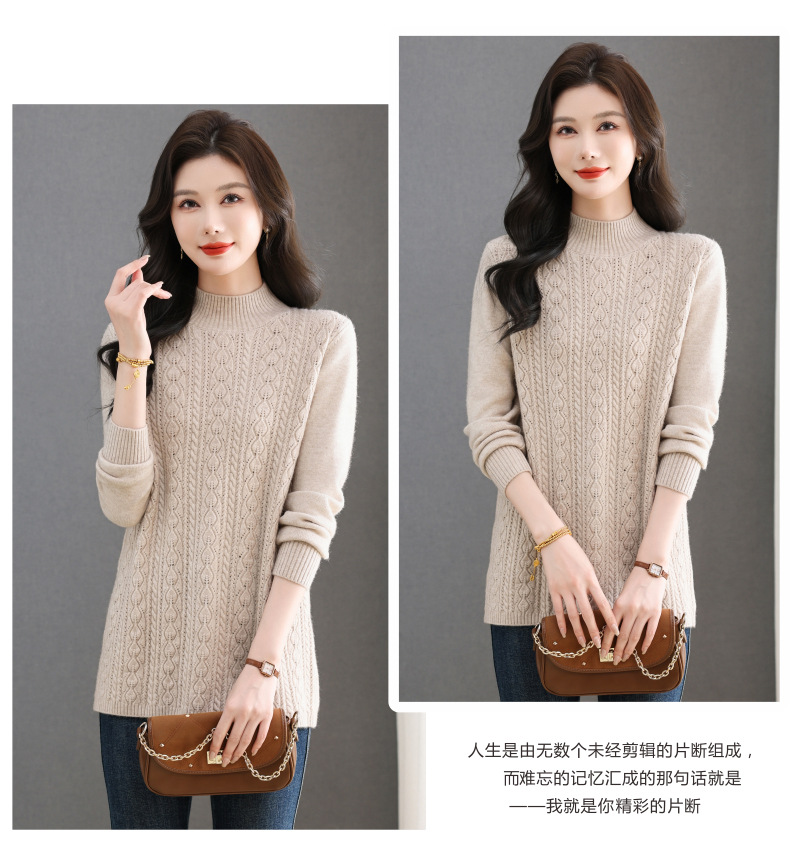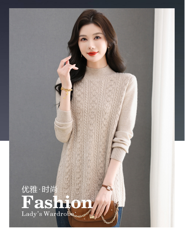CC半高领毛衣女秋冬2025年米白色提花中长款针织衫优雅显瘦打底毛衣