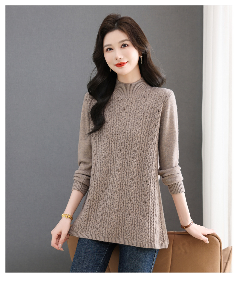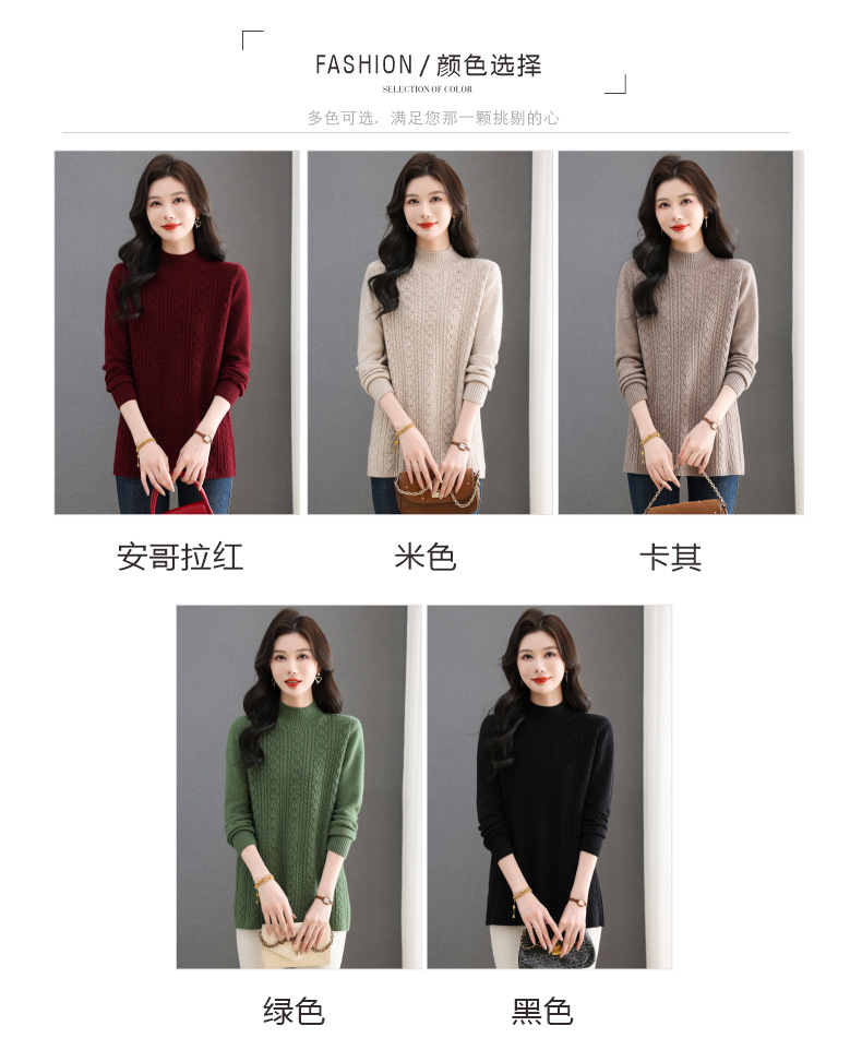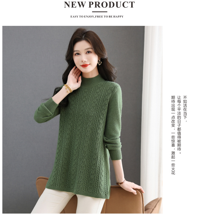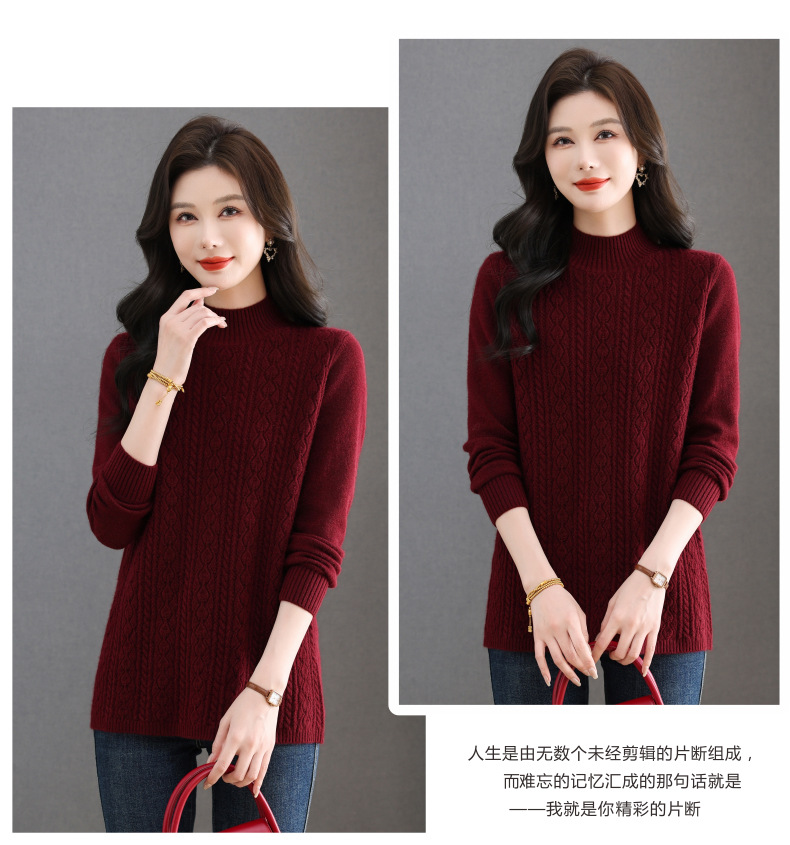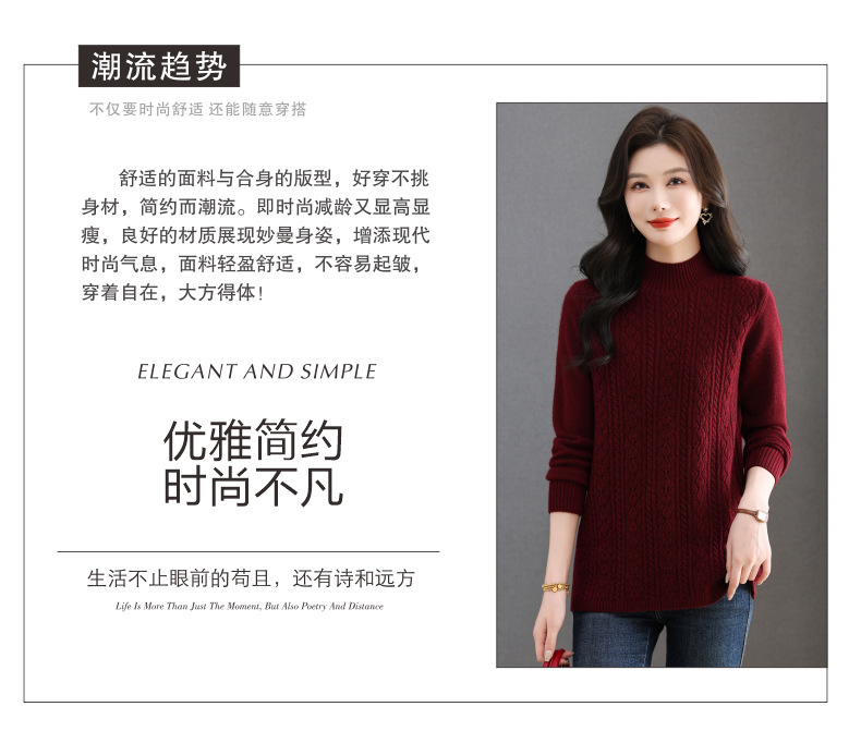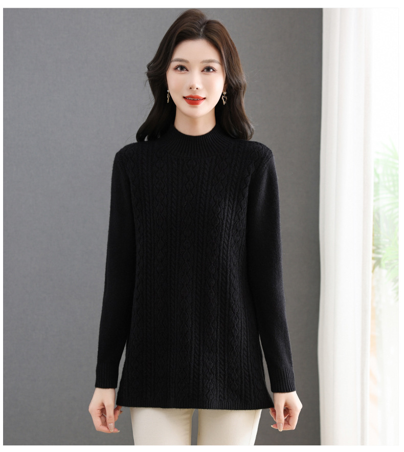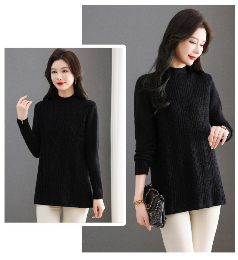 CC半高领毛衣女秋冬2025年米白色提花中长款针织衫优雅显瘦打底毛衣