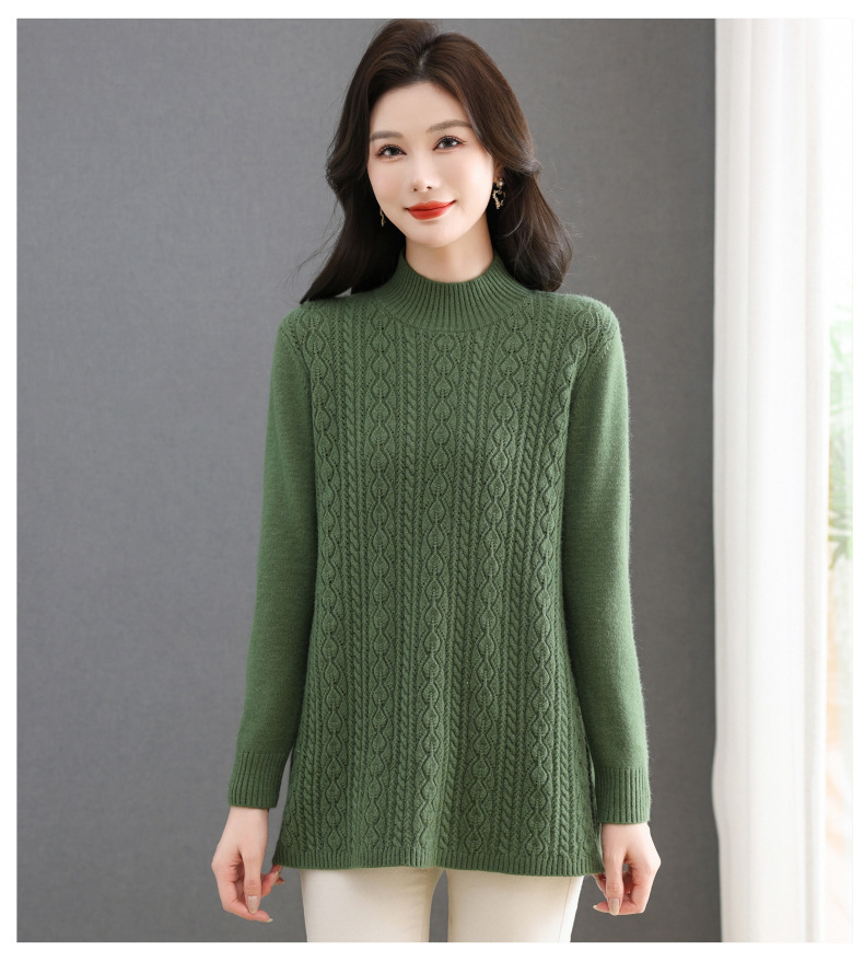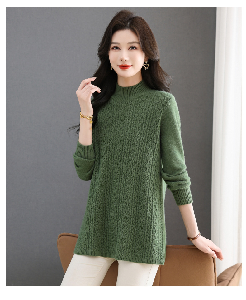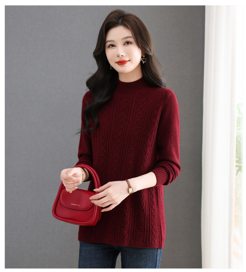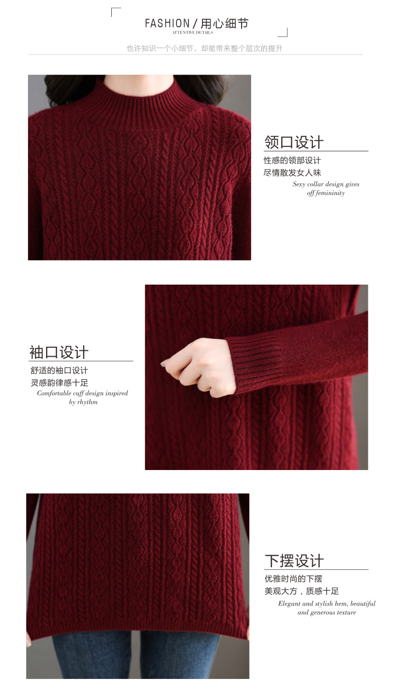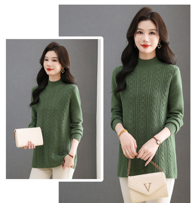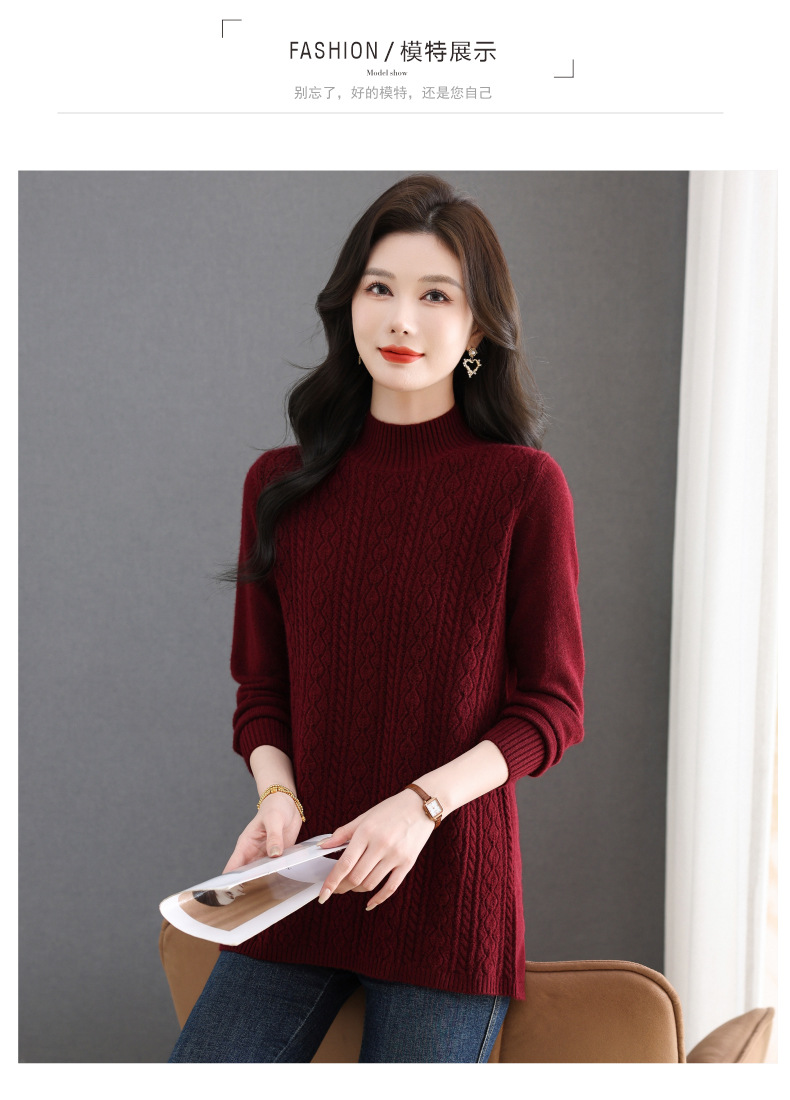 CC半高领毛衣女秋冬2025年米白色提花中长款针织衫优雅显瘦打底毛衣
