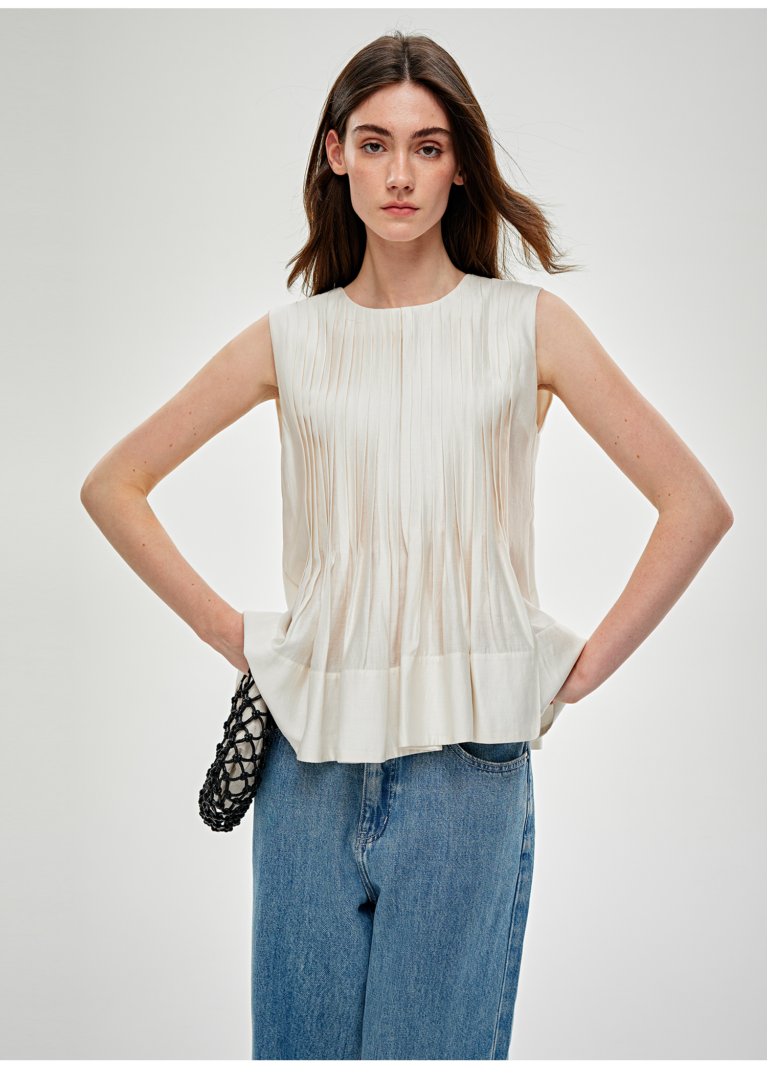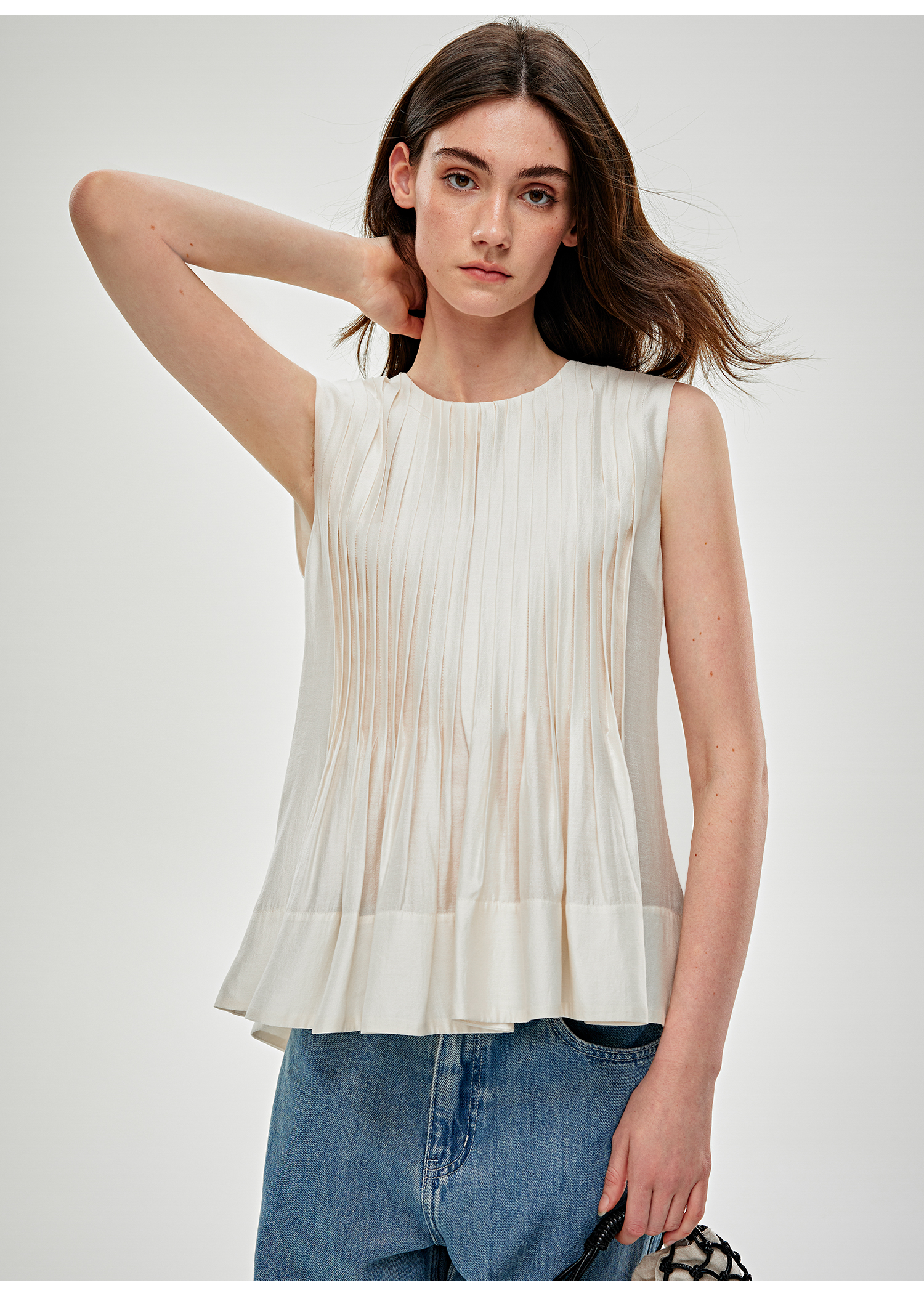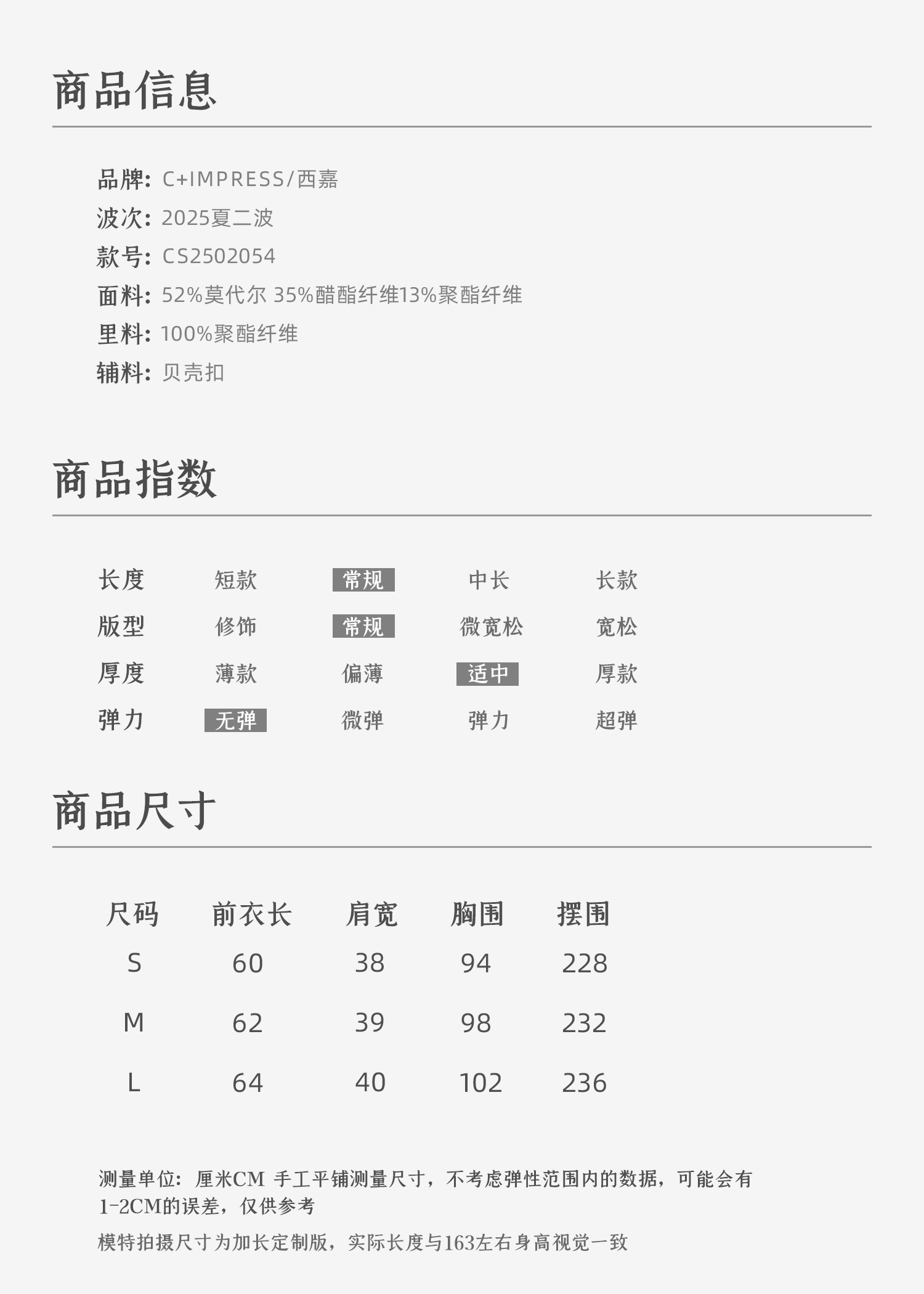 C+IMPRESS/西嘉 醋酸莫代尔 法式小衫女宽松廓形无袖背心衬衫上衣CS2502054