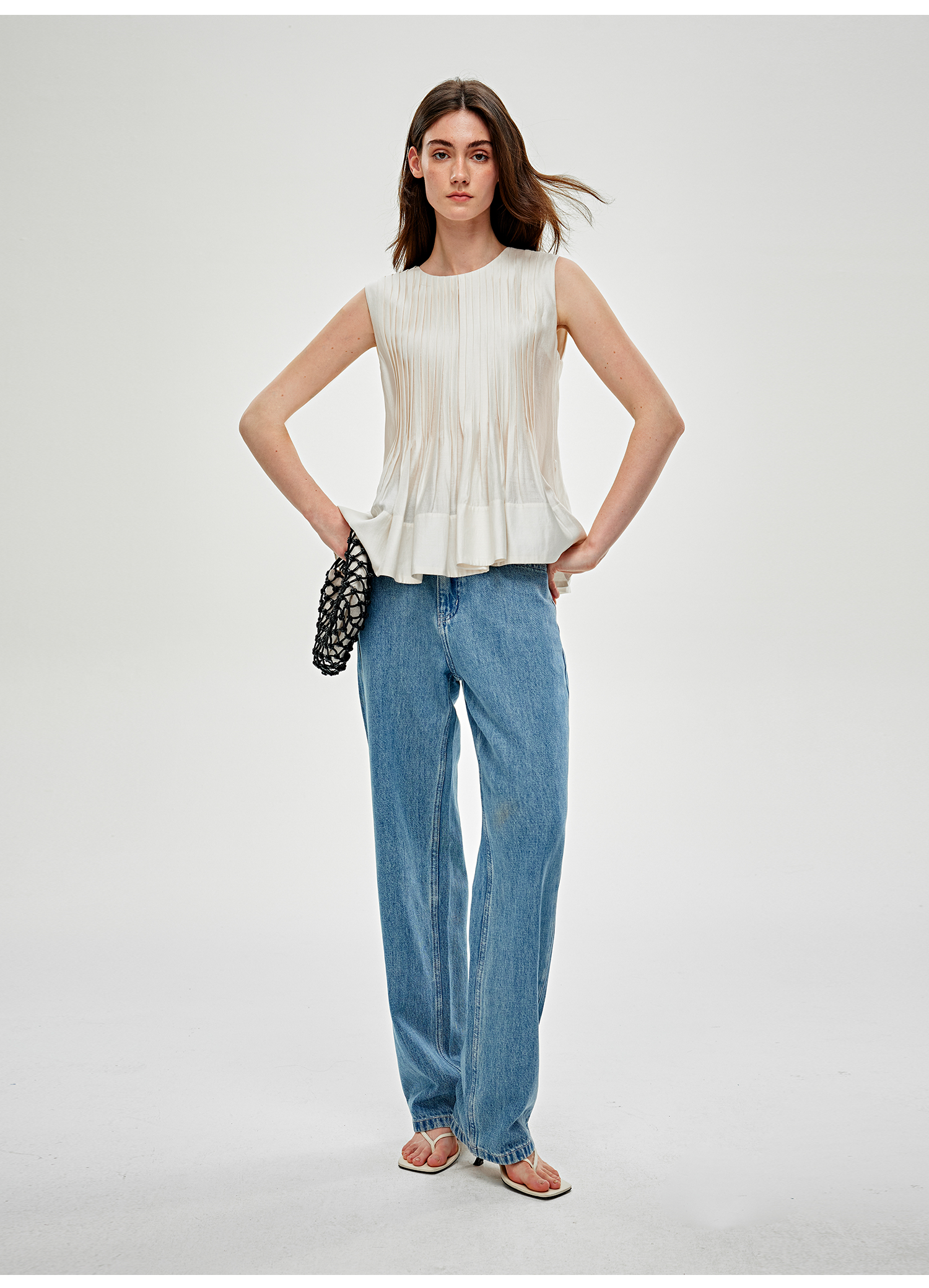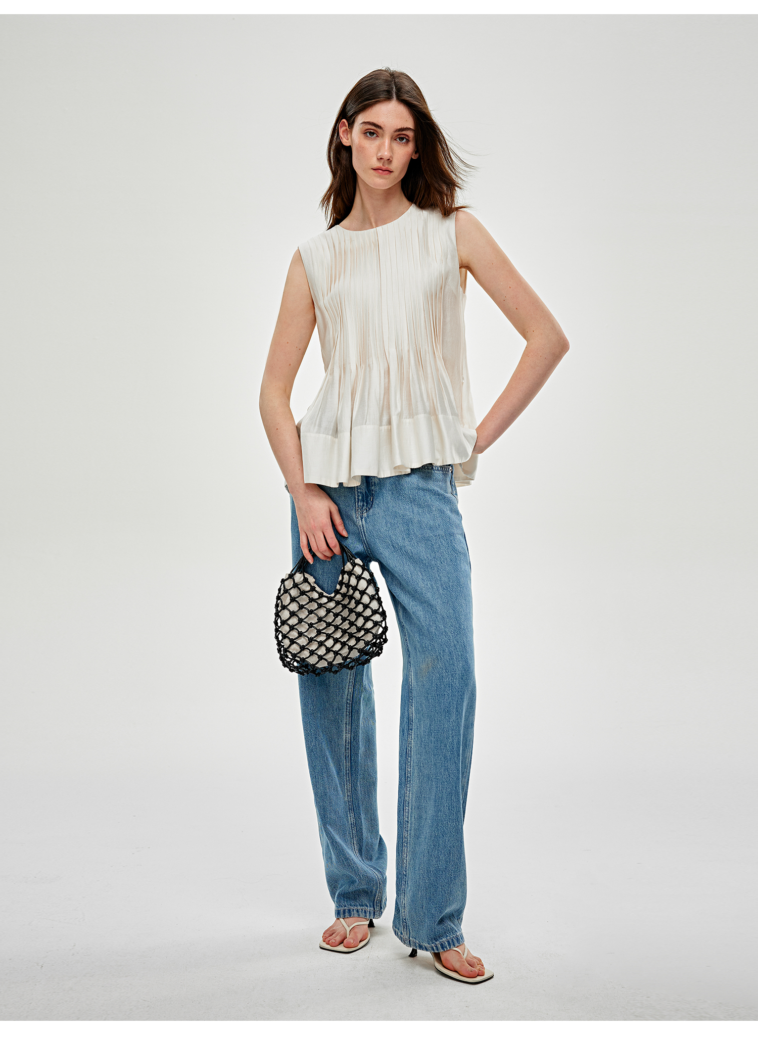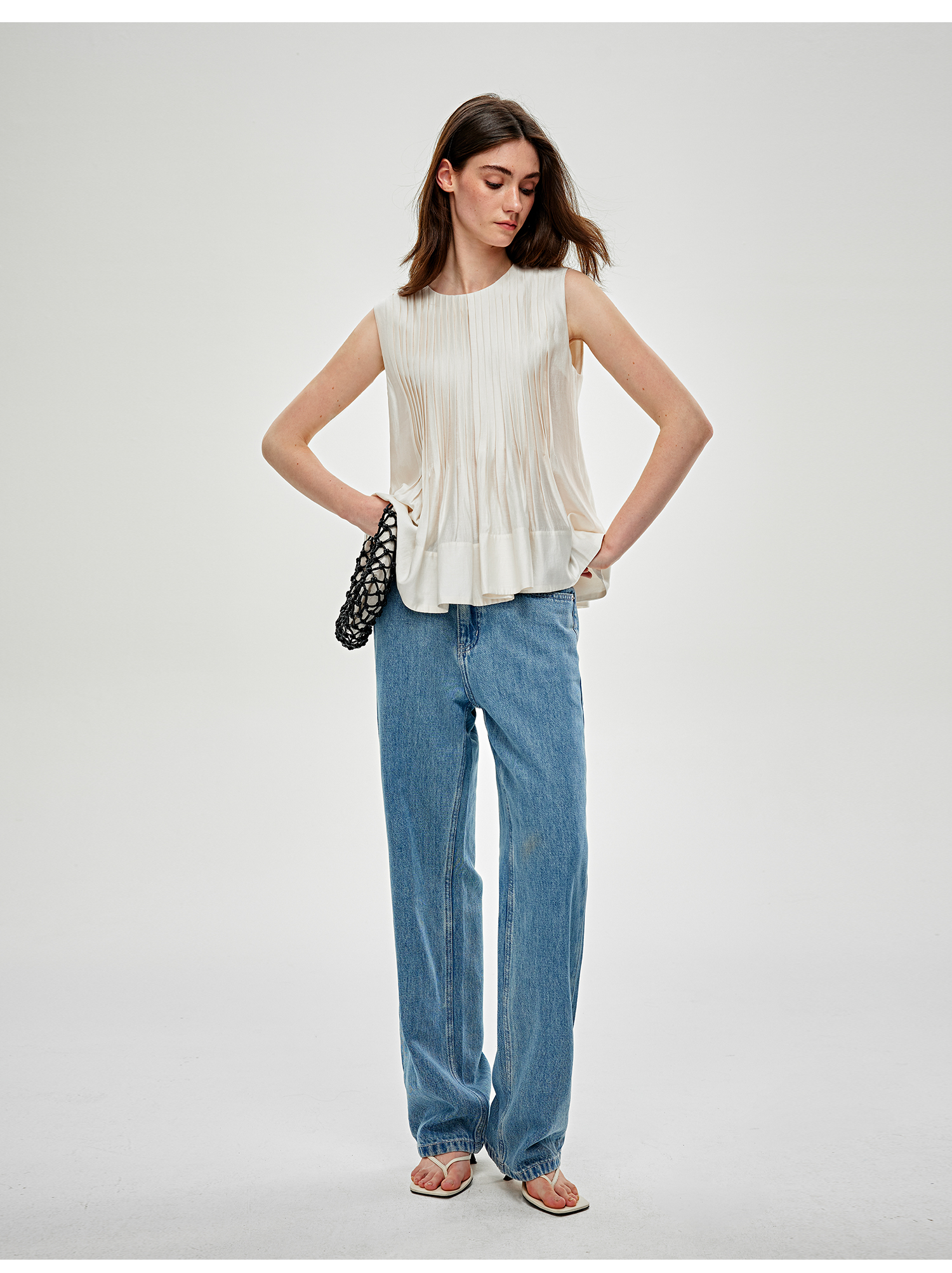 C+IMPRESS/西嘉 醋酸莫代尔 法式小衫女宽松廓形无袖背心衬衫上衣CS2502054