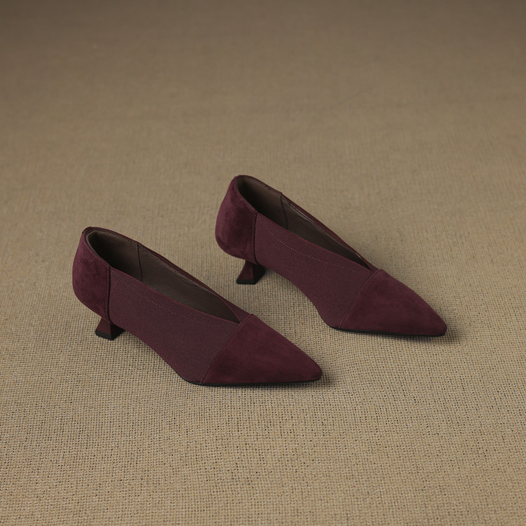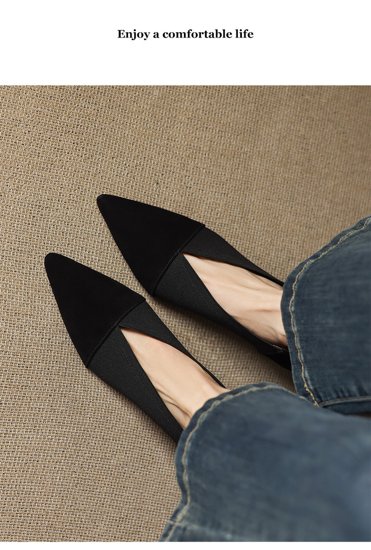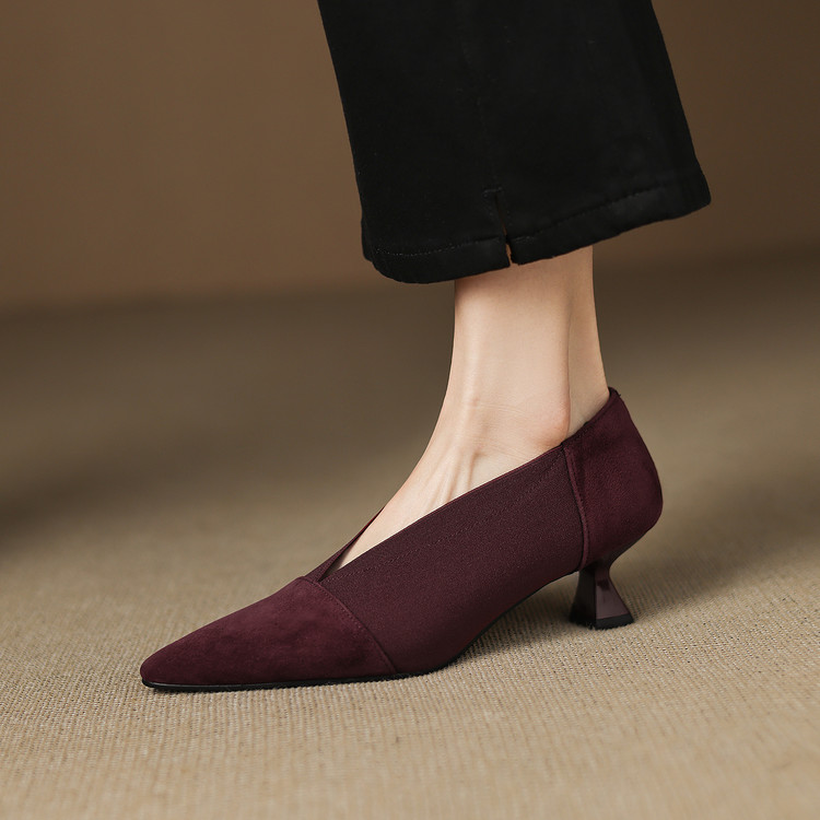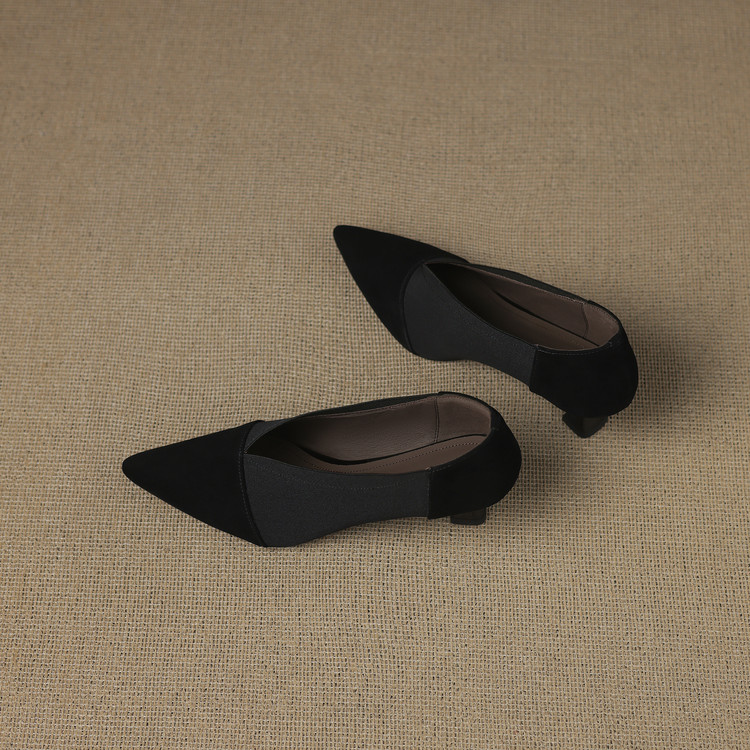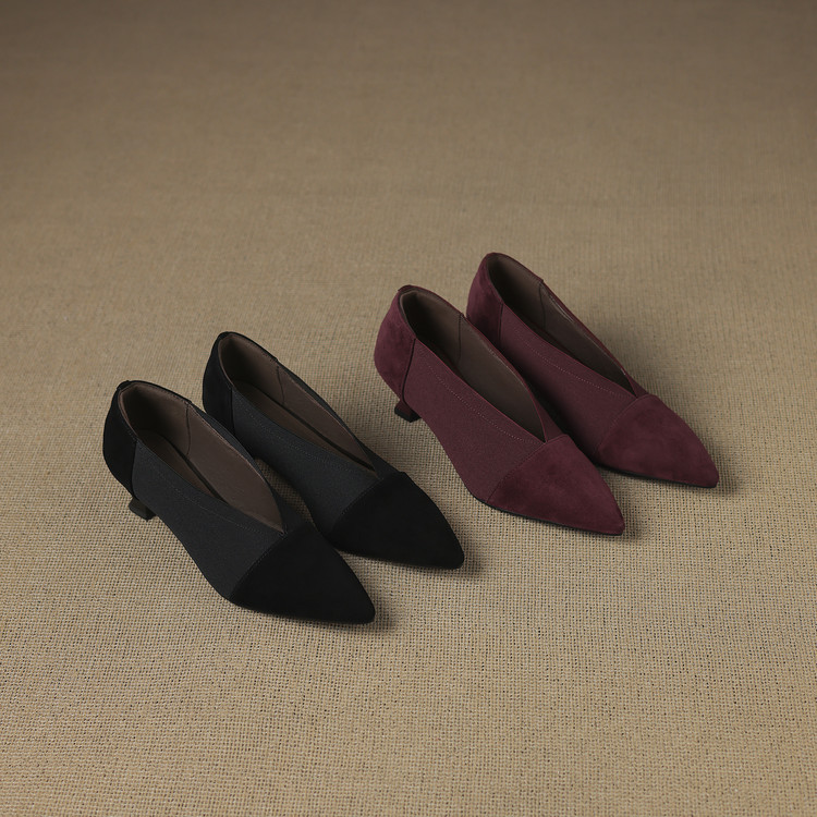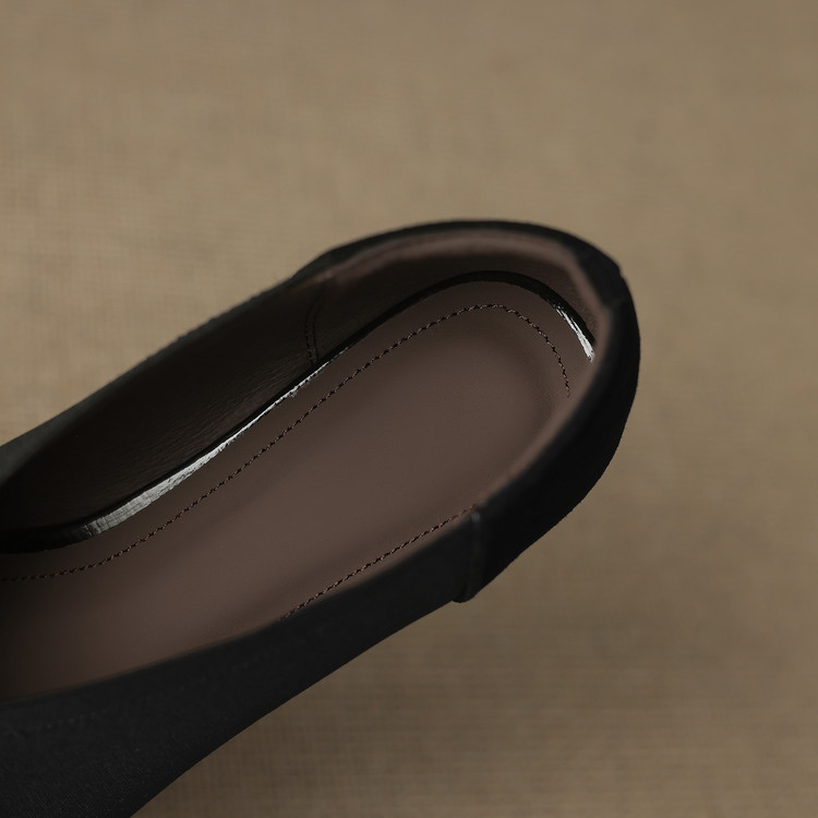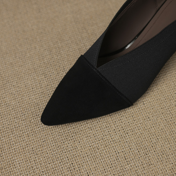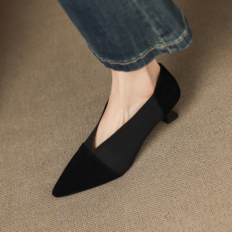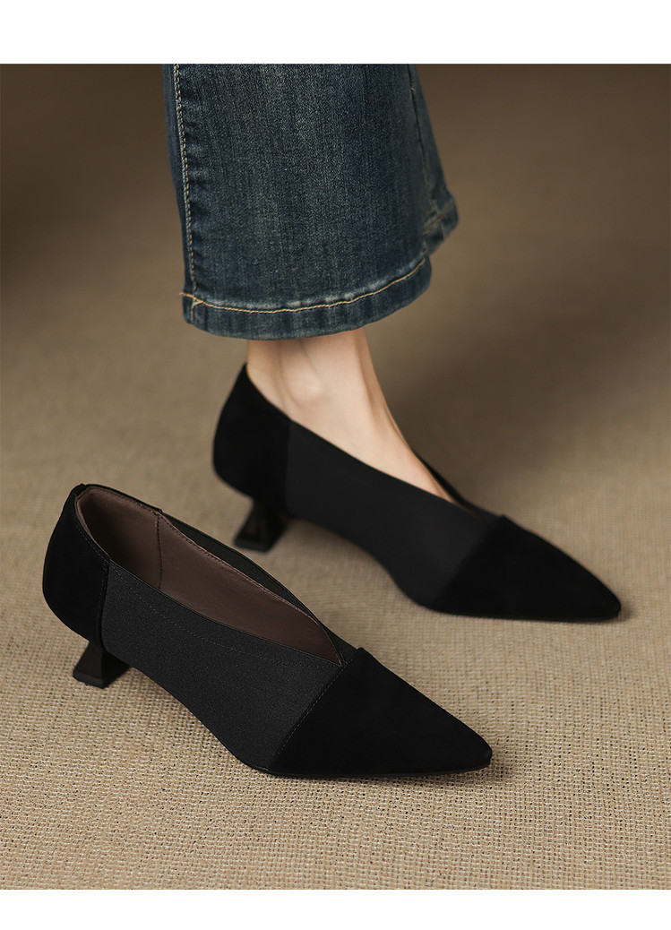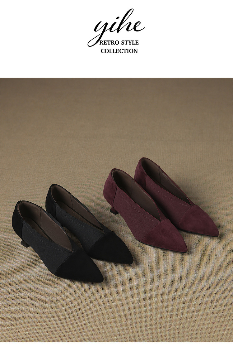 【预售5天】秋季新款5cm复古优雅尖头拼接松紧V口一脚蹬粗跟气质通勤高跟单鞋JLY&18-751