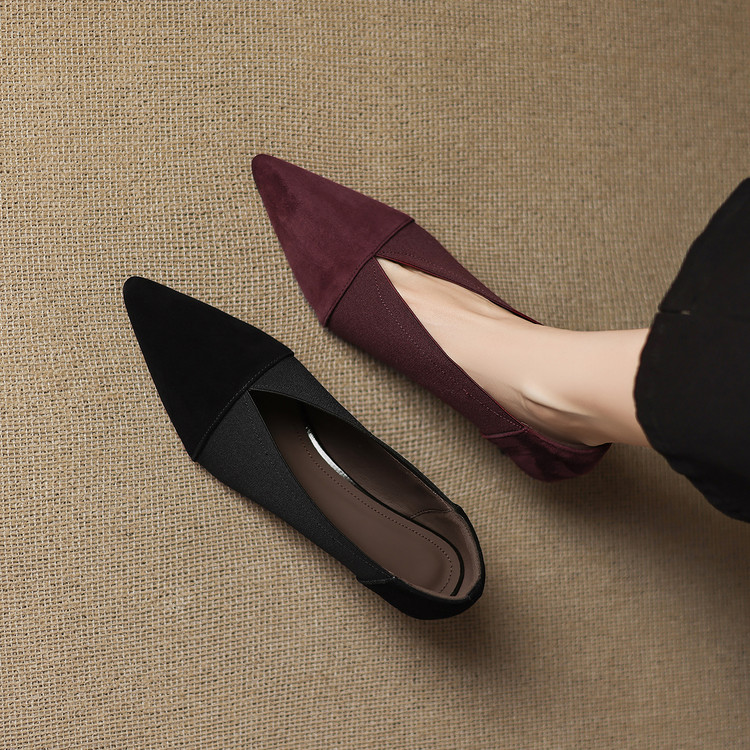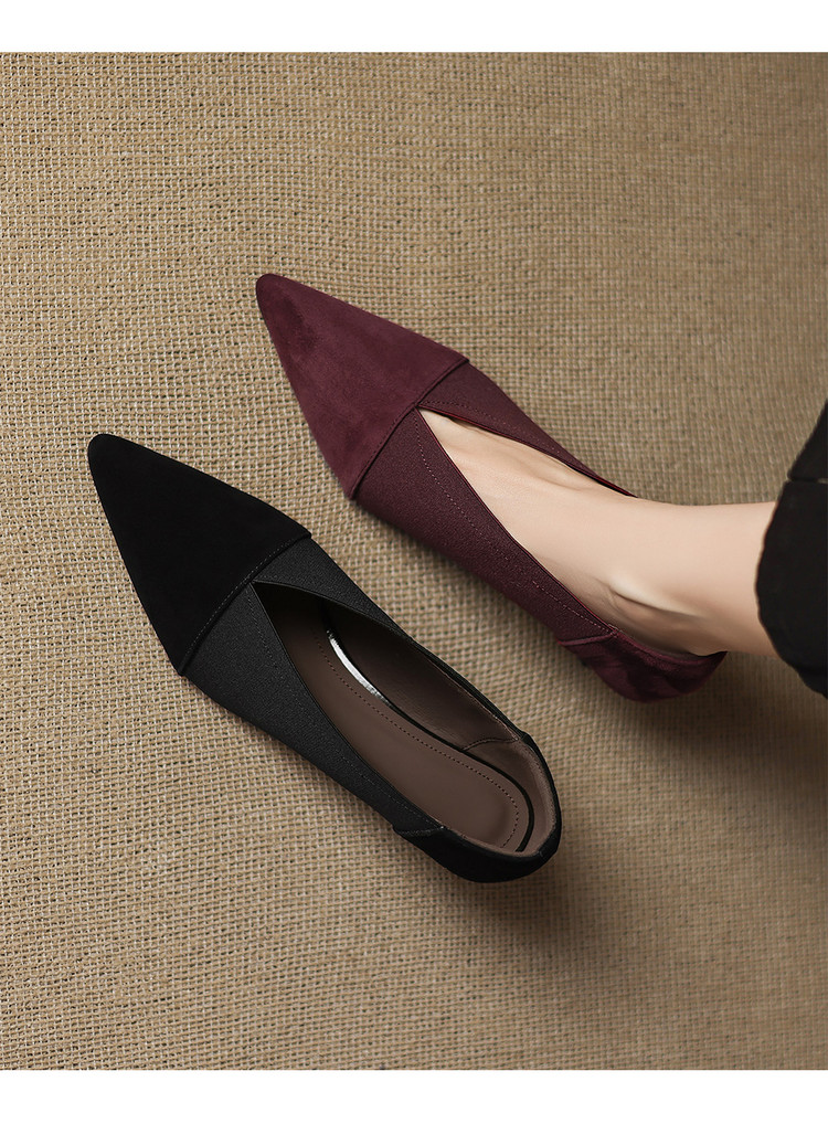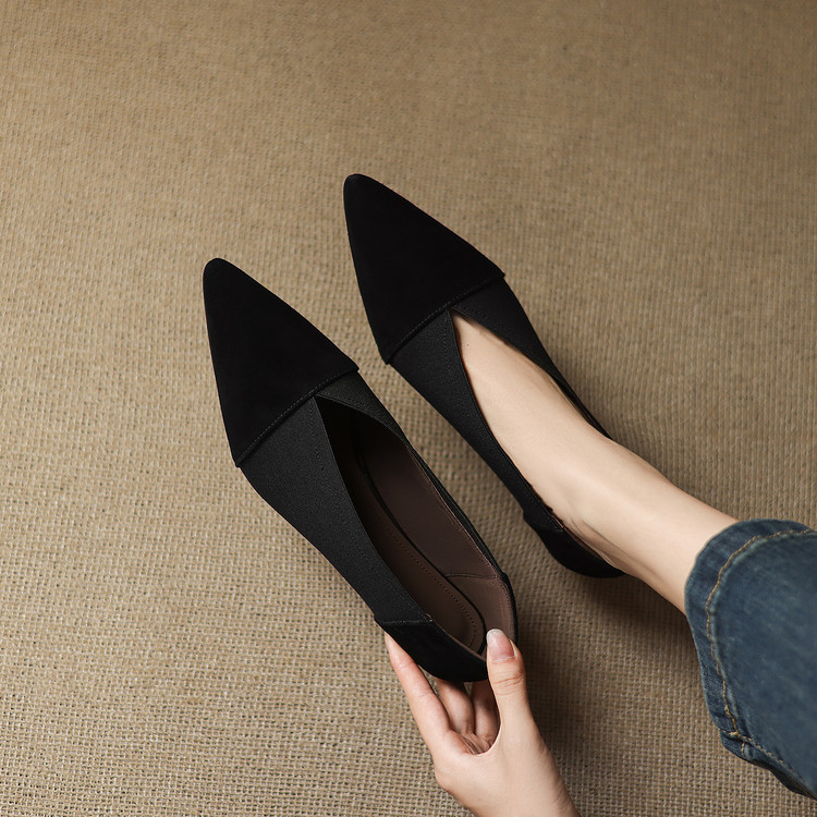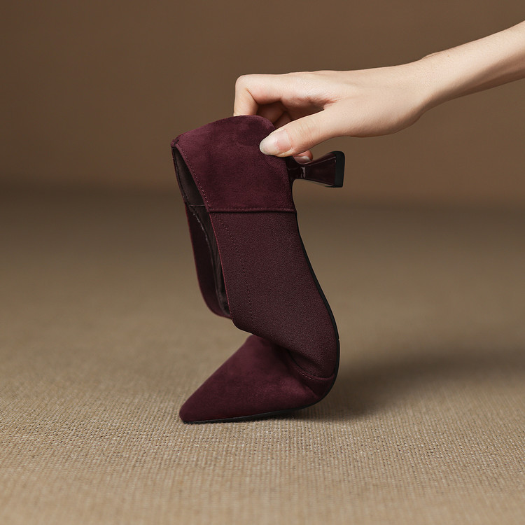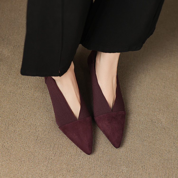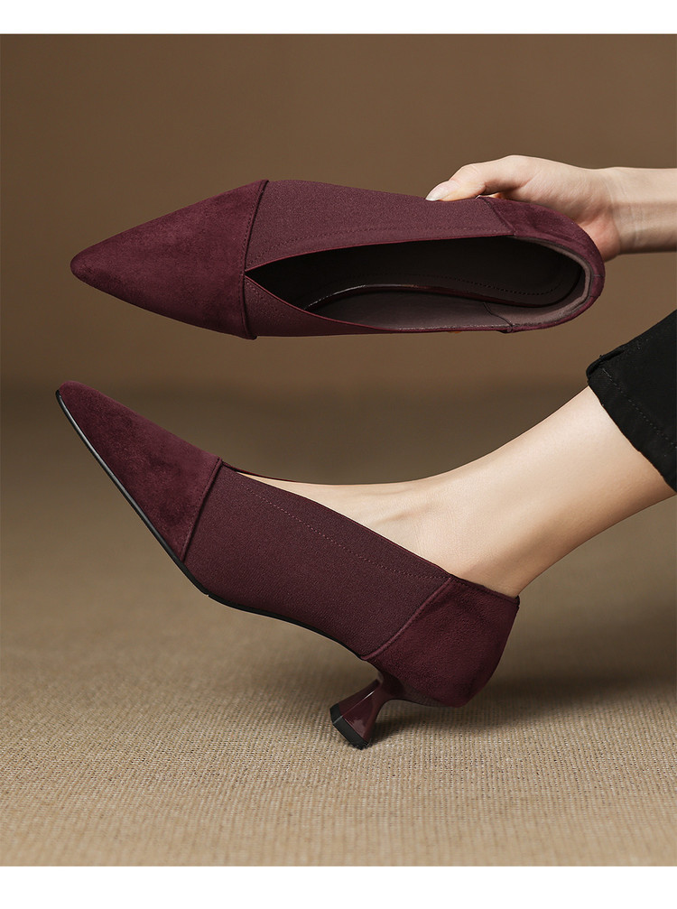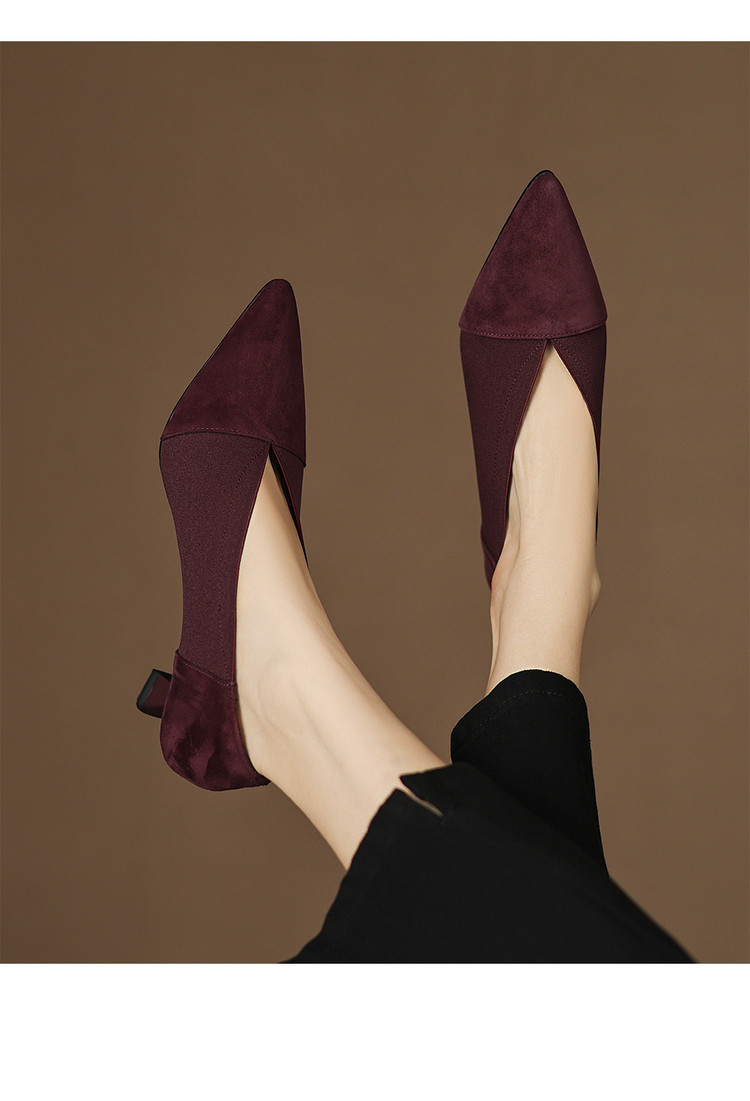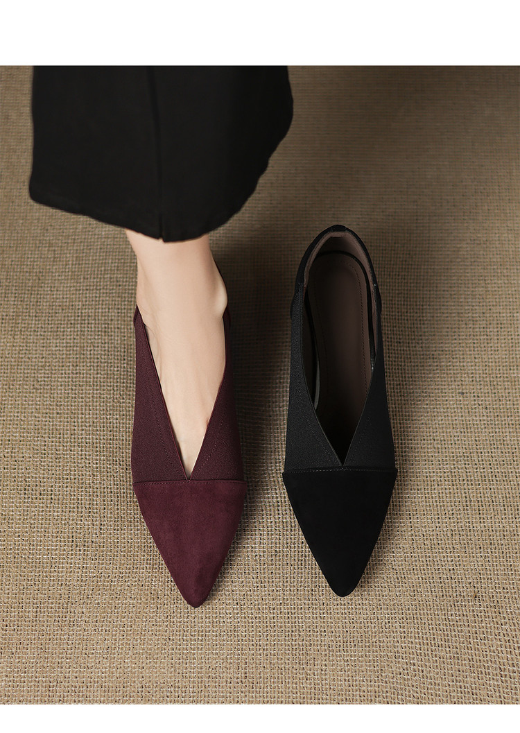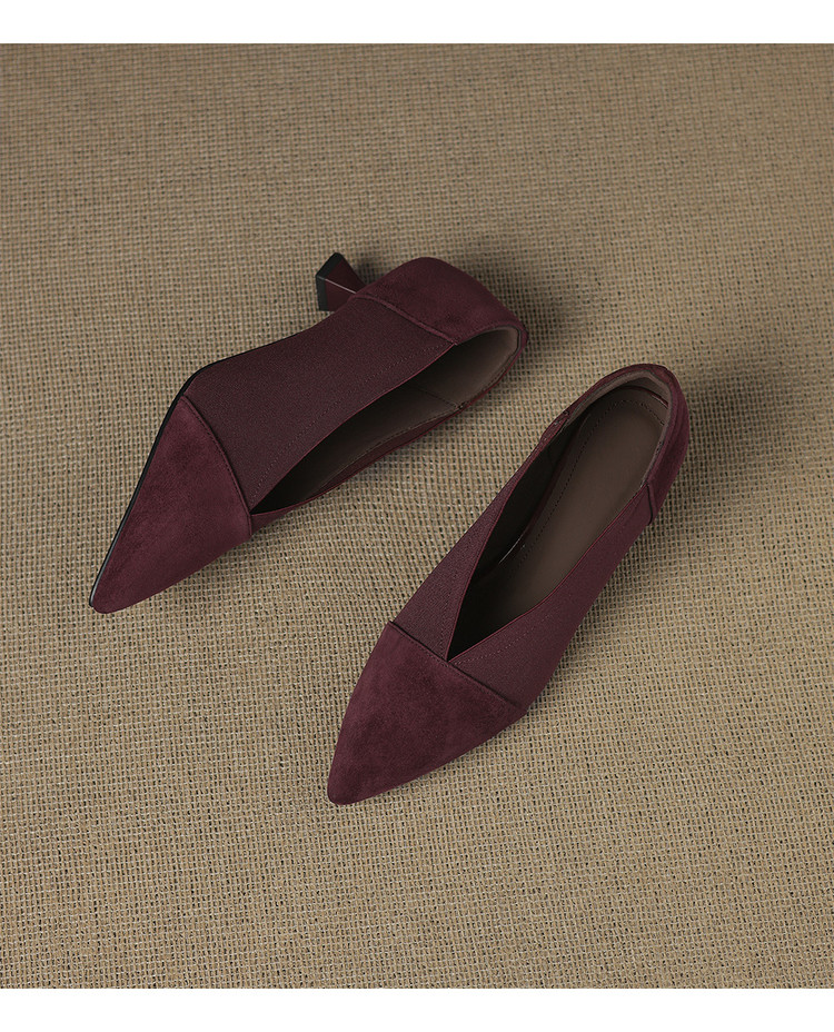 【预售5天】秋季新款5cm复古优雅尖头拼接松紧V口一脚蹬粗跟气质通勤高跟单鞋JLY&18-751