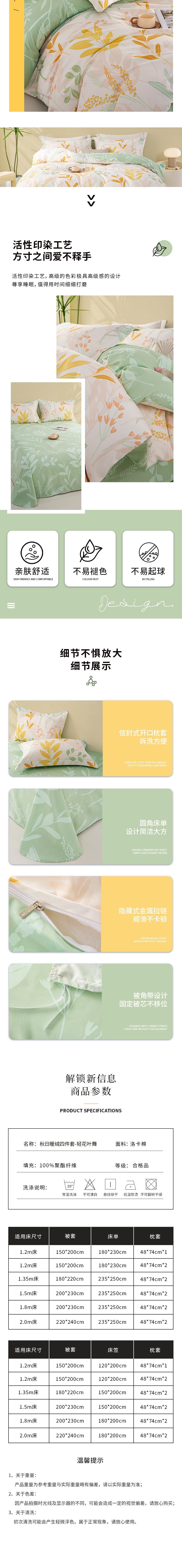 晚安家纺 秋日暖绒四件套轻花叶舞200*230cm WA002