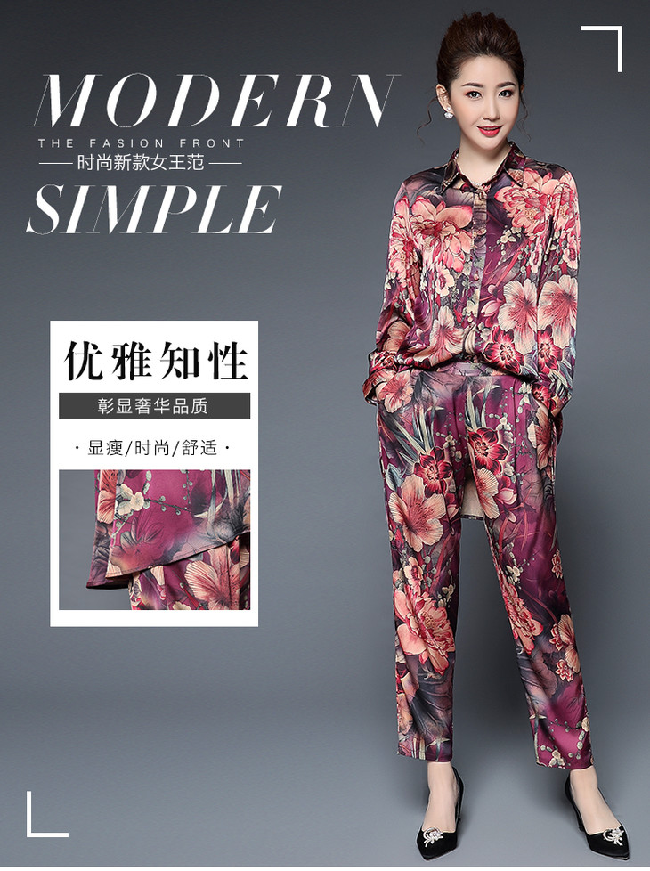 CQ-HXGLR9817秋季潮流显瘦修身印花套装