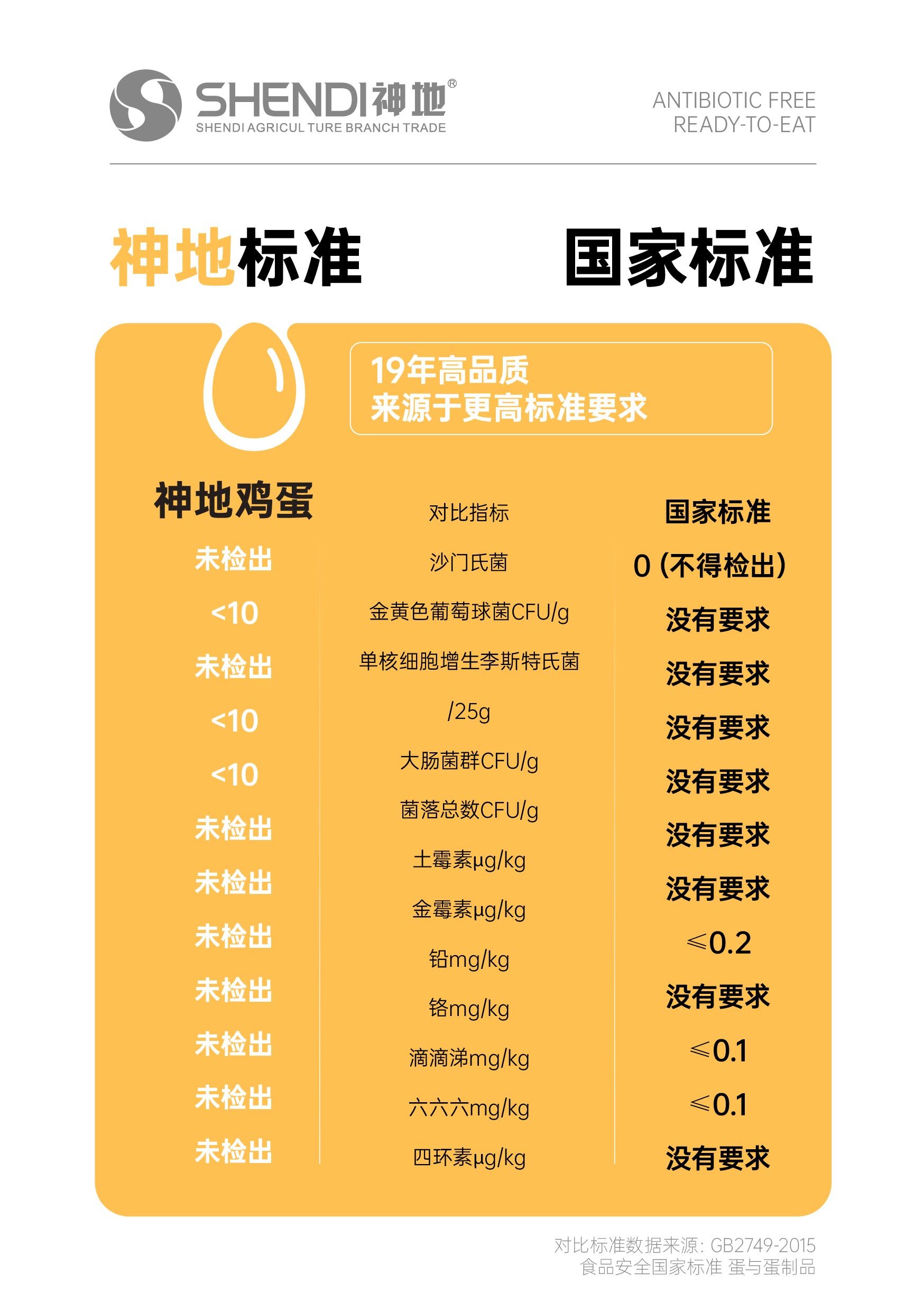 为了让神地奇蛋的安全与质量全程有标准、可控制,研发团队对标了国际、国内标准,累计做了数百次多场实验,检测了30万余枚鸡蛋,用标准为产品的安全性和品质背书。确保”更新鲜更营养”“可生食鸡蛋”“无抗生素“产品双认证!