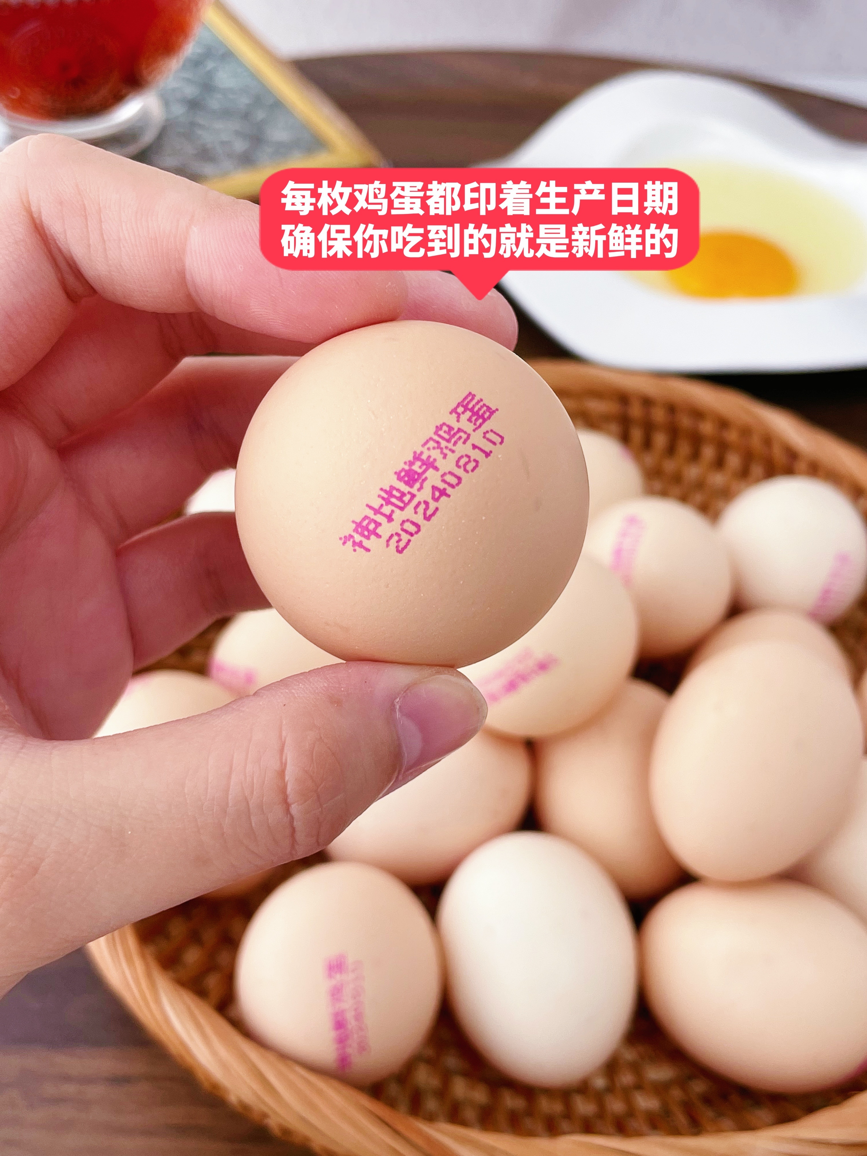是温泉蛋、溏心蛋首选,每枚鸡蛋都印着生产日期,确保你吃到的就是新鲜的