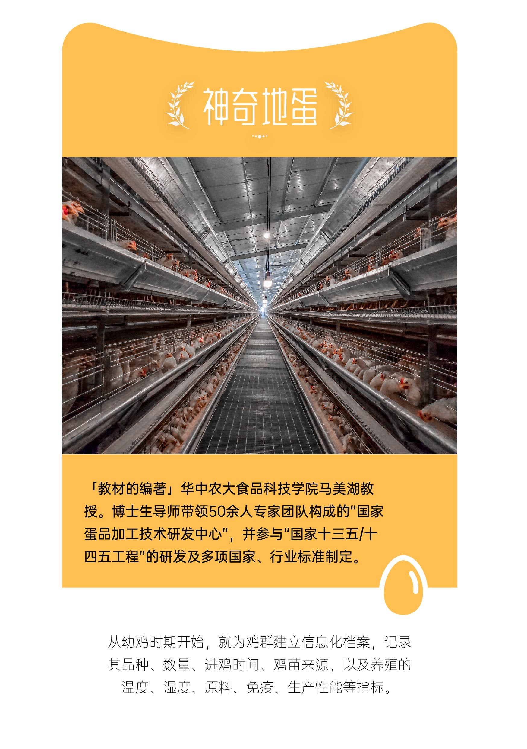 🟡每一只母鸡都有来自营养师、喂养师、环境师、防疫师、工程师、医师6个团队的专业人员照看,确保其身体健康。