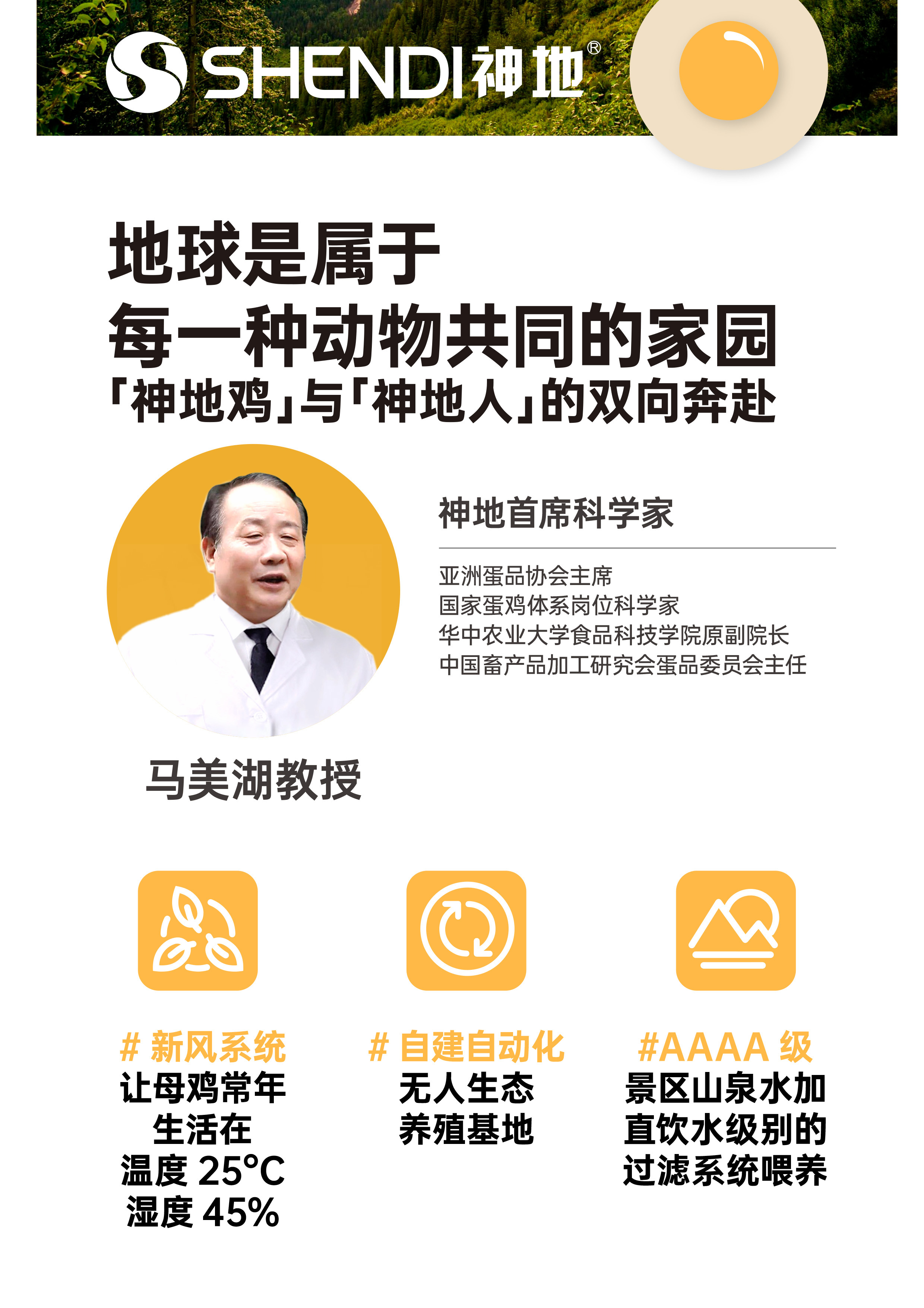 每一只母鸡都有来自营养师、喂养师、环境师、防疫师、工程师、医师6个团队的专业人员照看,确保其身体健康。🟡自建自动化无人生态养殖基地,为基地配备了完善的进口通风设备、新风系统,让母鸡常年生活在温度25°C、湿度45%的环境中,还为母鸡准备了饮用水级别的过滤水。🟡为了让神地奇蛋的安全与质量全程有标准、可控制,研发团队对标了国际、国内标准,累计做了数百次多场实验,检测了30万余枚鸡蛋,用标准为产品的安全性和品质背书。确保”更新鲜更营养”“可生食鸡蛋”“无抗生素产品”
