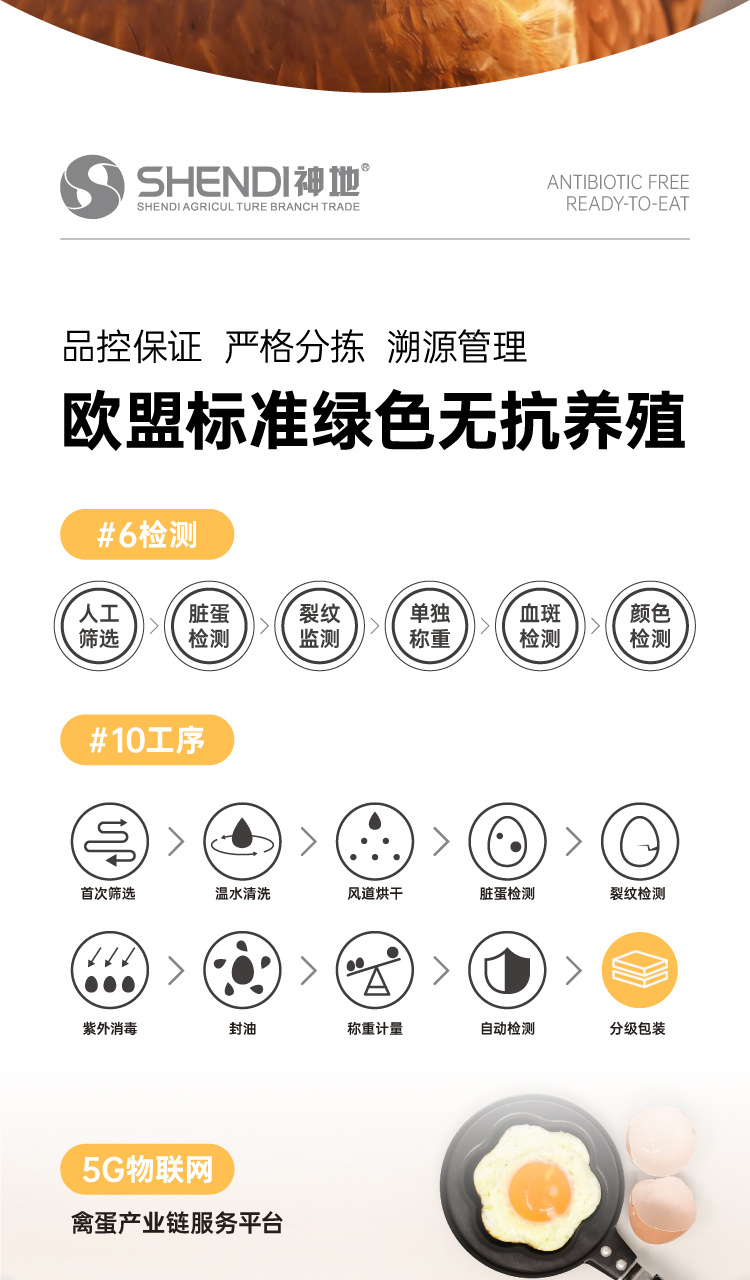 无农残、无抗生素、无重金属、无沙门氏菌 欧盟标准绿色无抗养殖,6道检测、10道工序,从源头到餐桌,真正放心